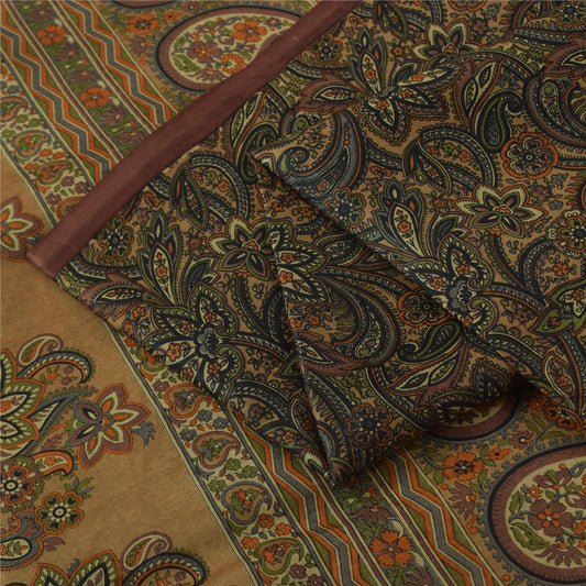 Sanskriti Vintage Brown Sarees Pure Georgette Silk Printed Sari 5yd Craft Sustainable Fabric