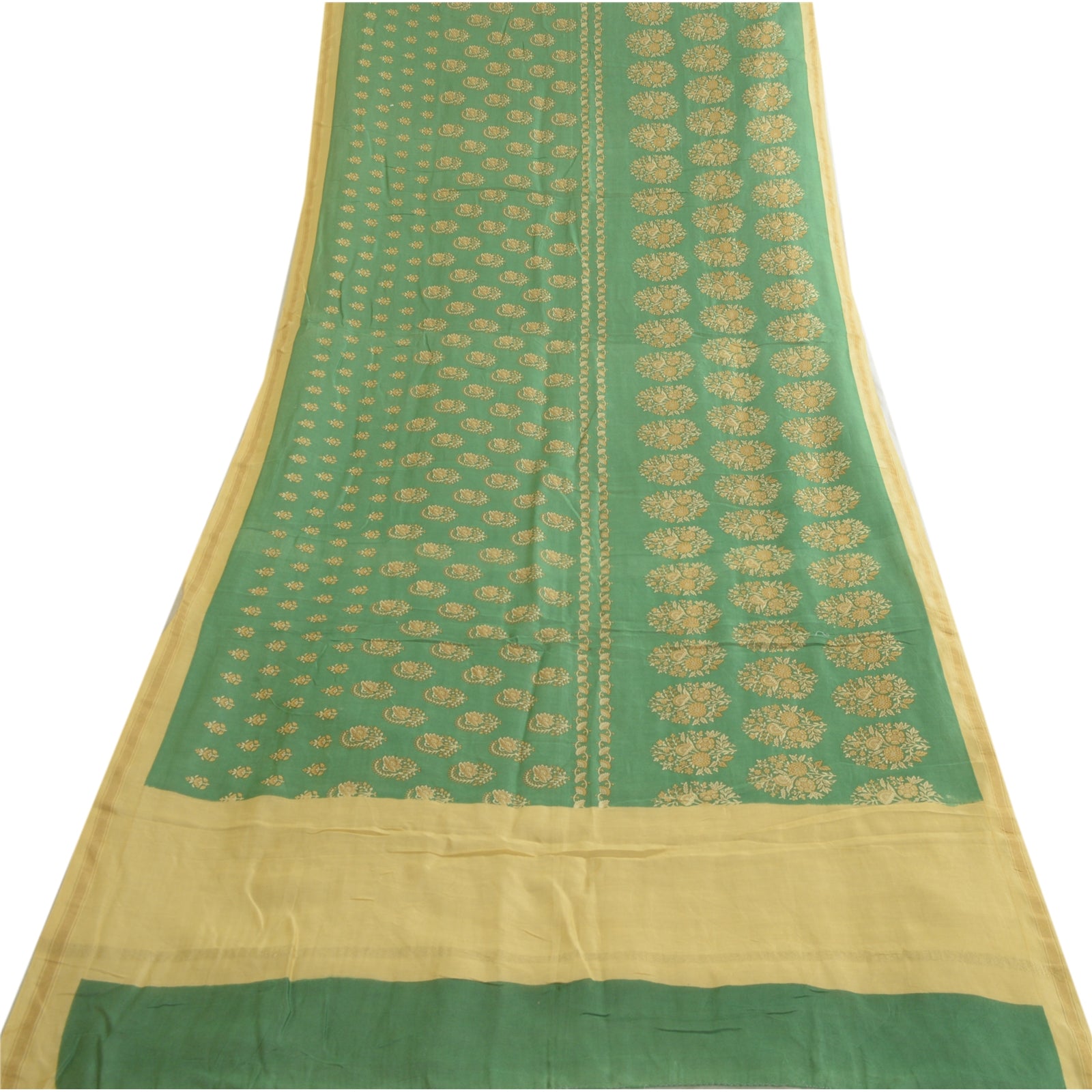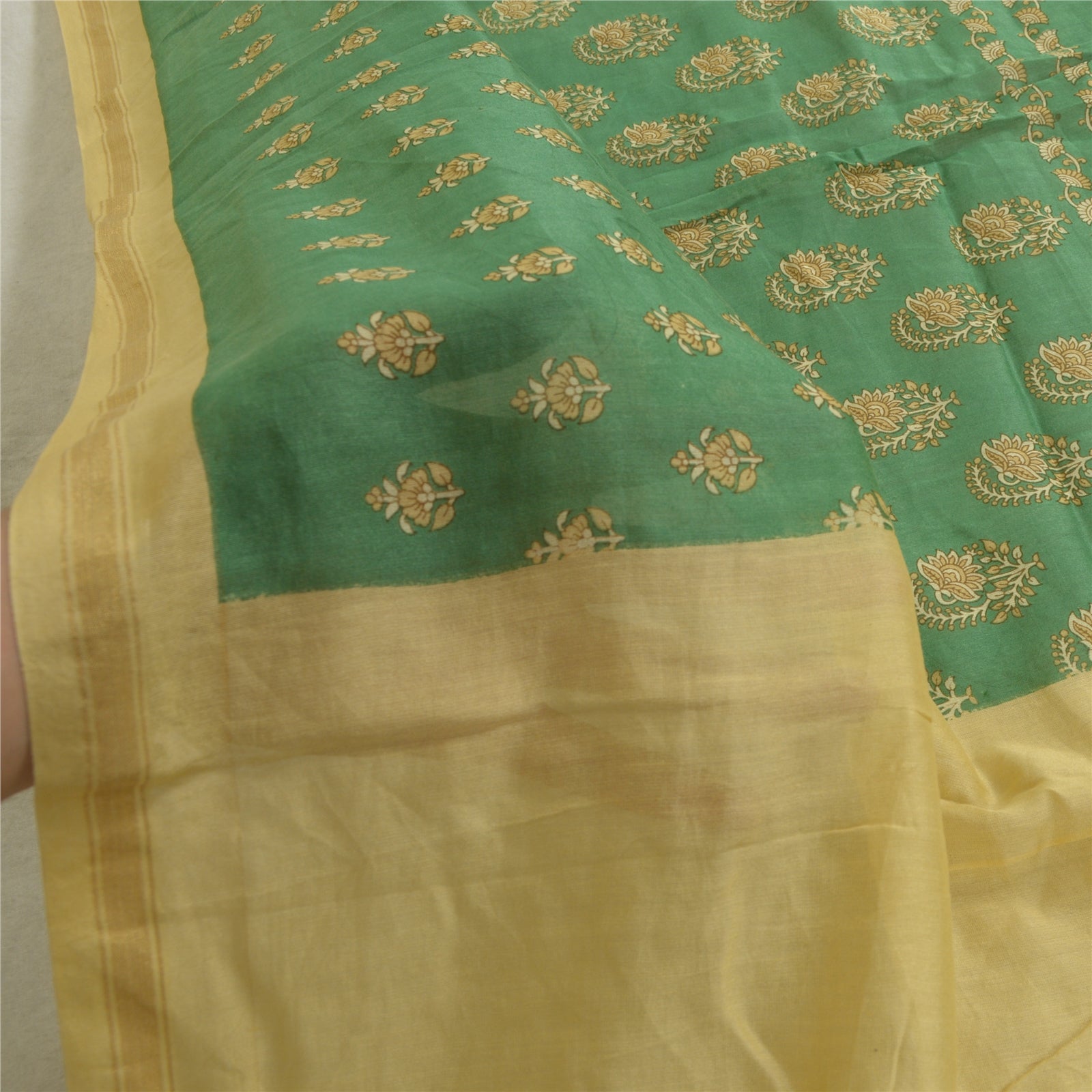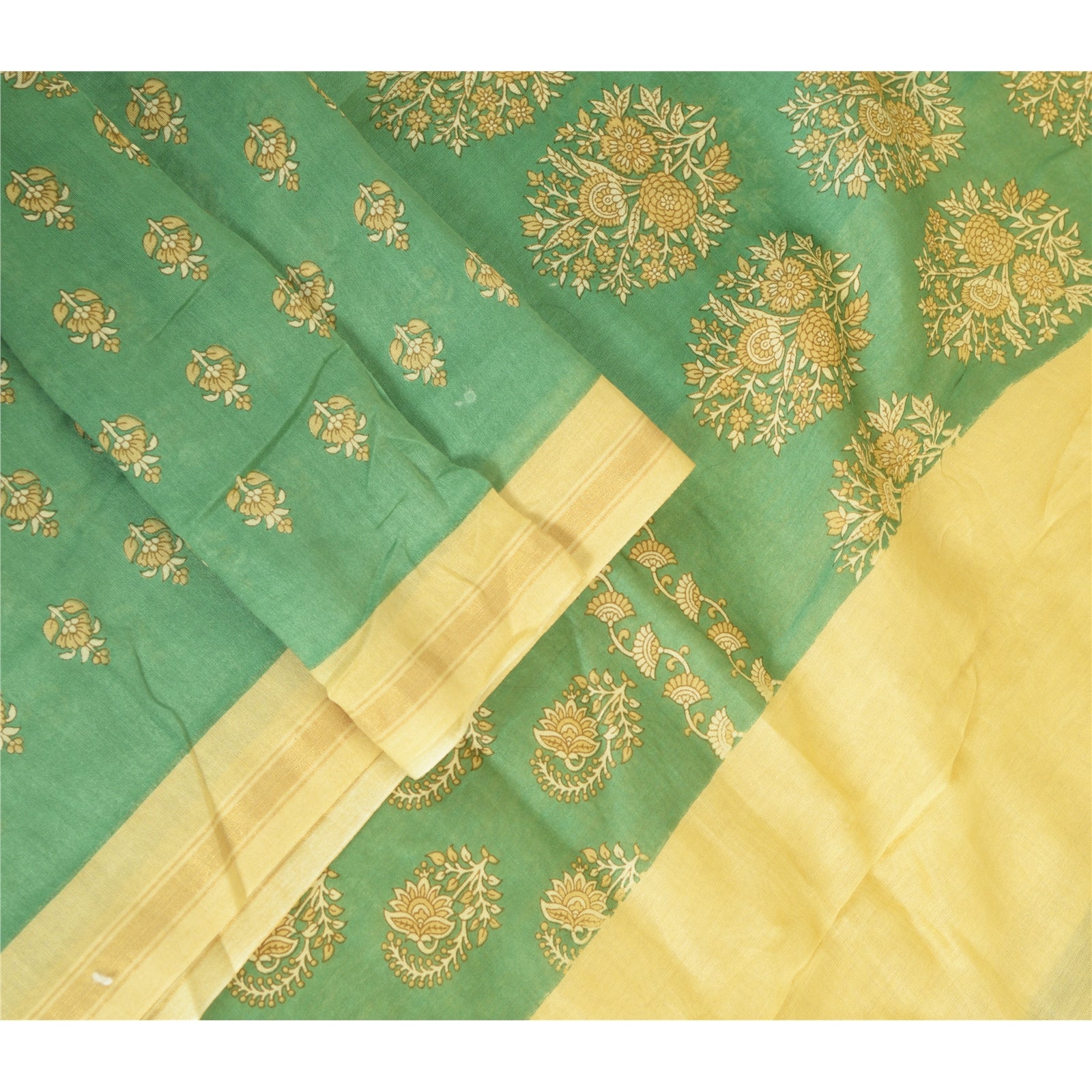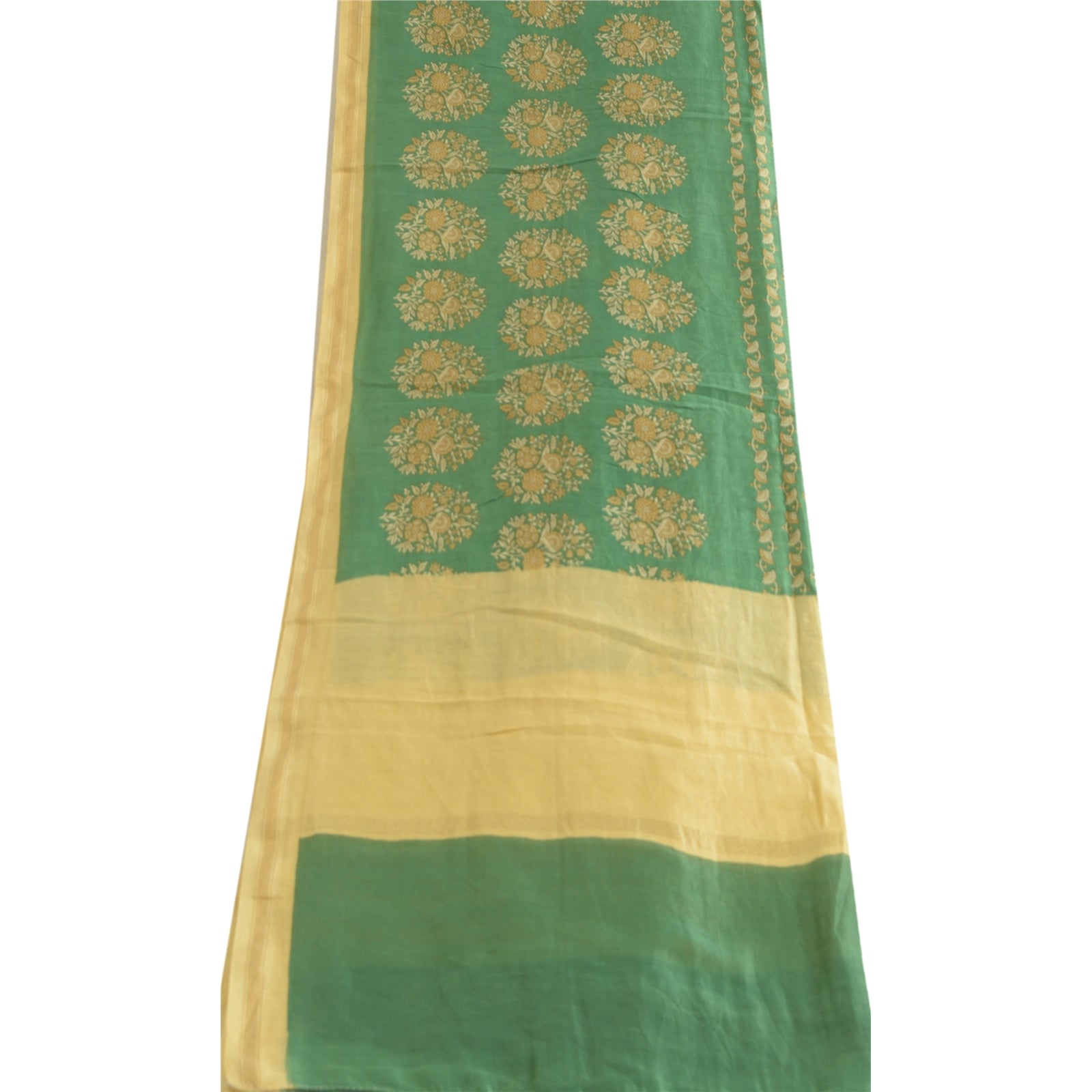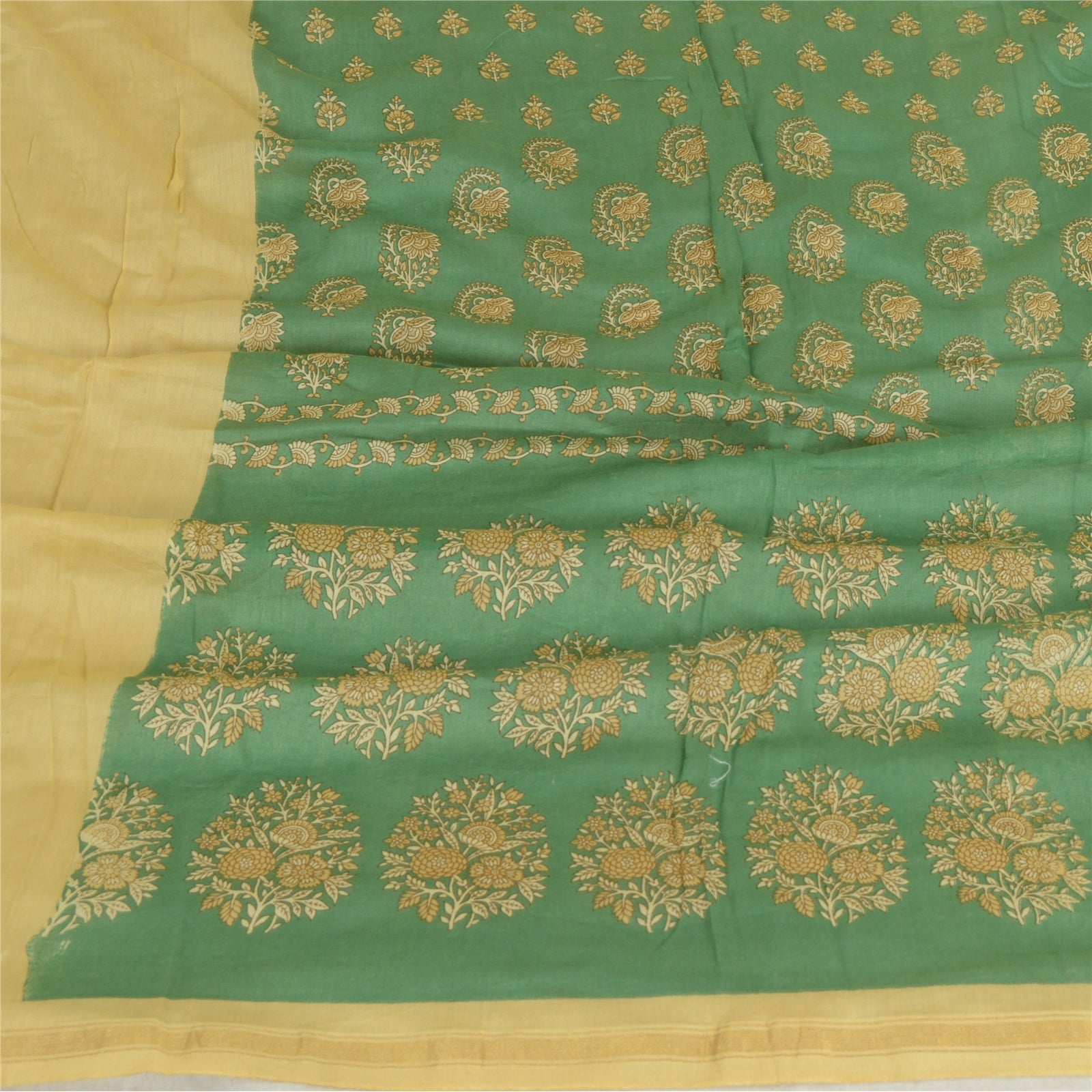 sanskriti Vintage Green/Cream Cotton Silk Dupatta Long Stole Printed Wrap Scarves