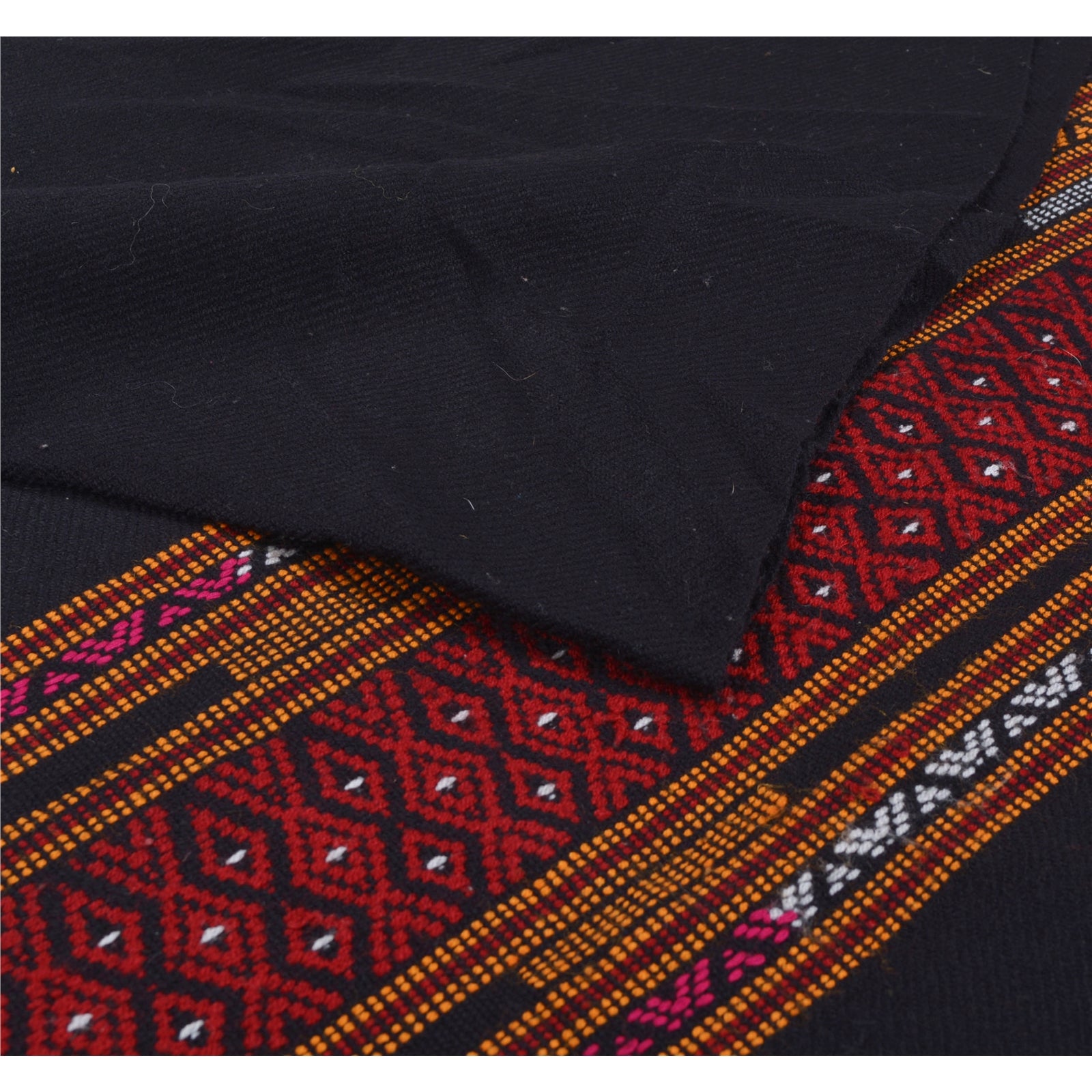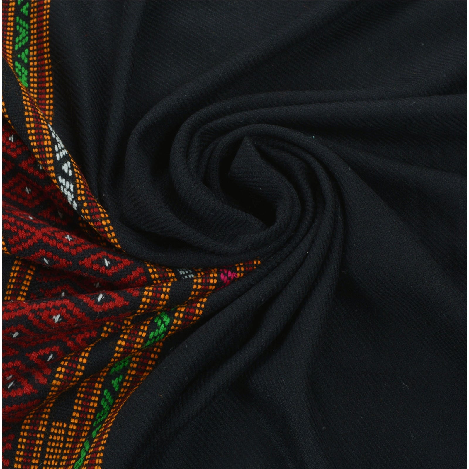 Sanskriti Vintage Black Woolen Shawl Hand Embroidered Kantha Work Stole Scarf