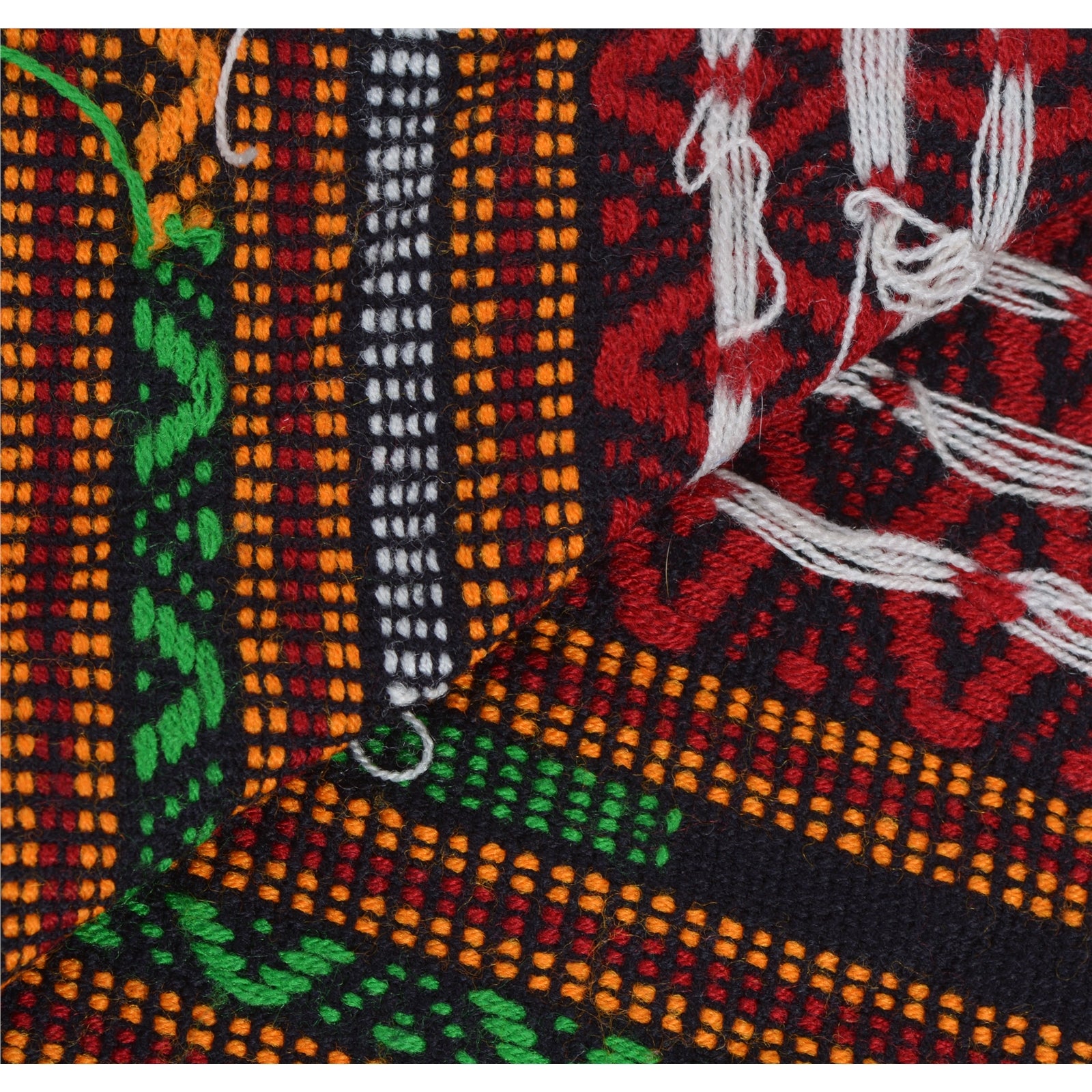 We are offering you a vintage black woolen stole which adorns hand embroidered Kantha work. Kantha is a type of embroidery typically found in South--Eastern Asia where it is practiced by rural women. The traditional form of Kantha was done on soft sarees with a simple running stitch along the edges. The shawl or stole features floral design with multicolor threads. This cozy, warm and fuzzy stole is soft against skin due to the mellow woolen Sustainable Fabric. A truly gorgeous piece which will also make an admirable gift.