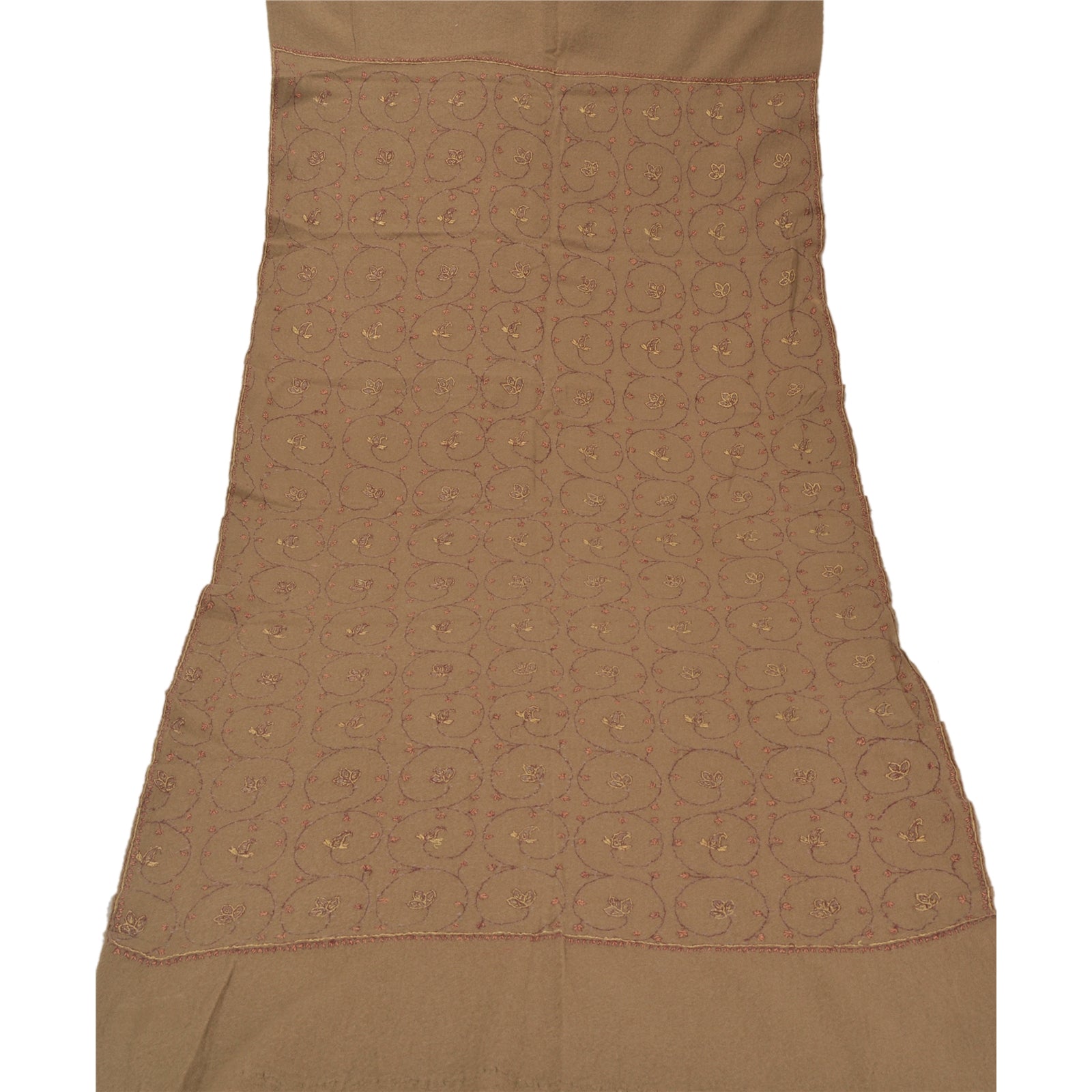 Sanskriti Vintage Brown Woolen Shawl Hand Embroidered Suzani Work Stole Scarf