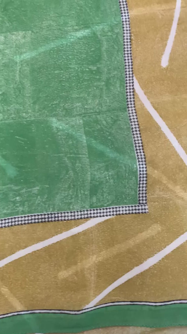 • Beautiful shades of green colored printed pure georgette silk saree . • Pallu & Border has printed abstract design . • Abstract design in center part of sari . This unique vintage saree can be used for various crafting ideas even if you don't want to use it as a sari. Design a dress, use it as a throw, as window dressing, beachwear, sarongs, table linen and much more. Let your creative juices flow and use this decorated Sustainable Fabric in multiple fashion.