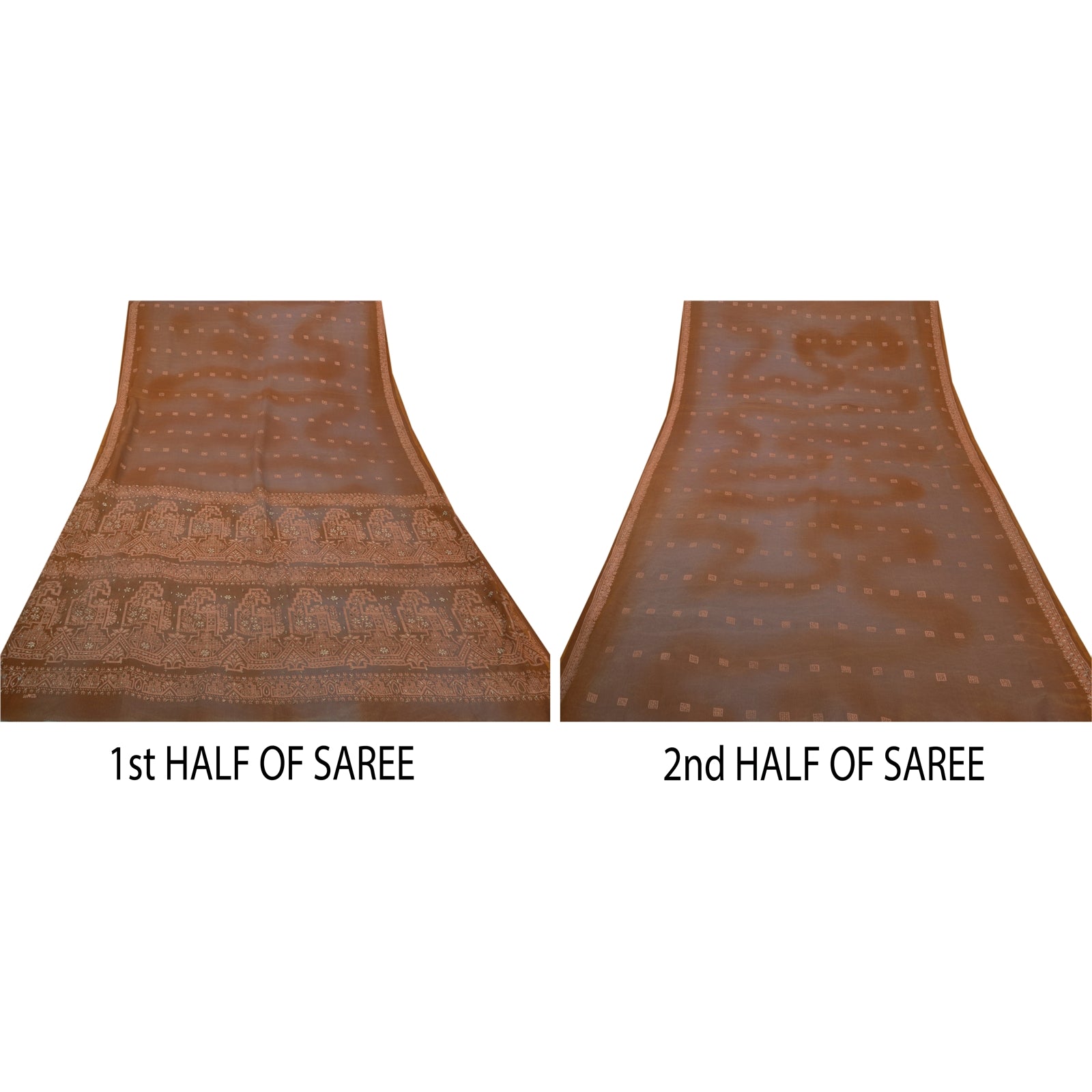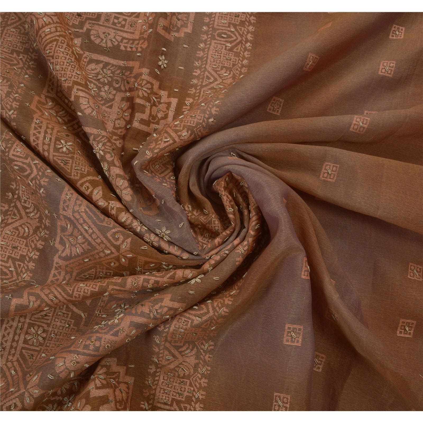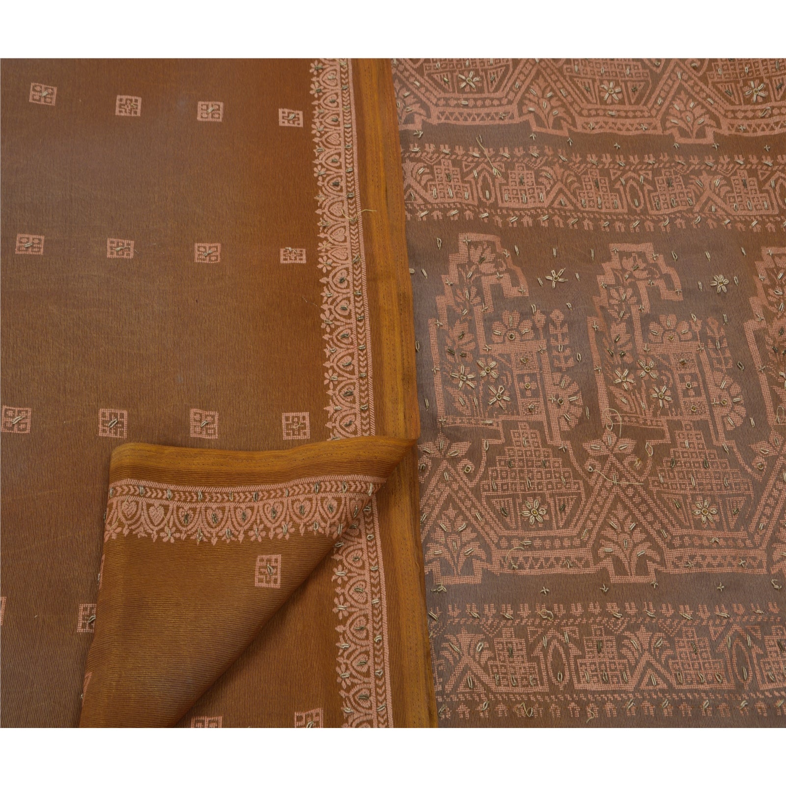 ? Beautiful brown colored hand embroidered painted cotton sari ? Pallu & Border features floral & paisley design embellished with golden zardozi work and yellow glass beads work. ? There are floral motifs with similar work in center part of sari. What is special about this saree? Antique look zardozi thread work with painted floral design on brown color base Sustainable Fabric is really enhancing the beauty of the saree. This unique vintage saree can be used for various crafting ideas even if you don't want to use it as a sari. Design a dress, use it as a throw, as window dressing, upholstery, sarongs, table linen and much more. Let your creative juices flow and use this decorated Sustainable Fabric in multiple fashion.