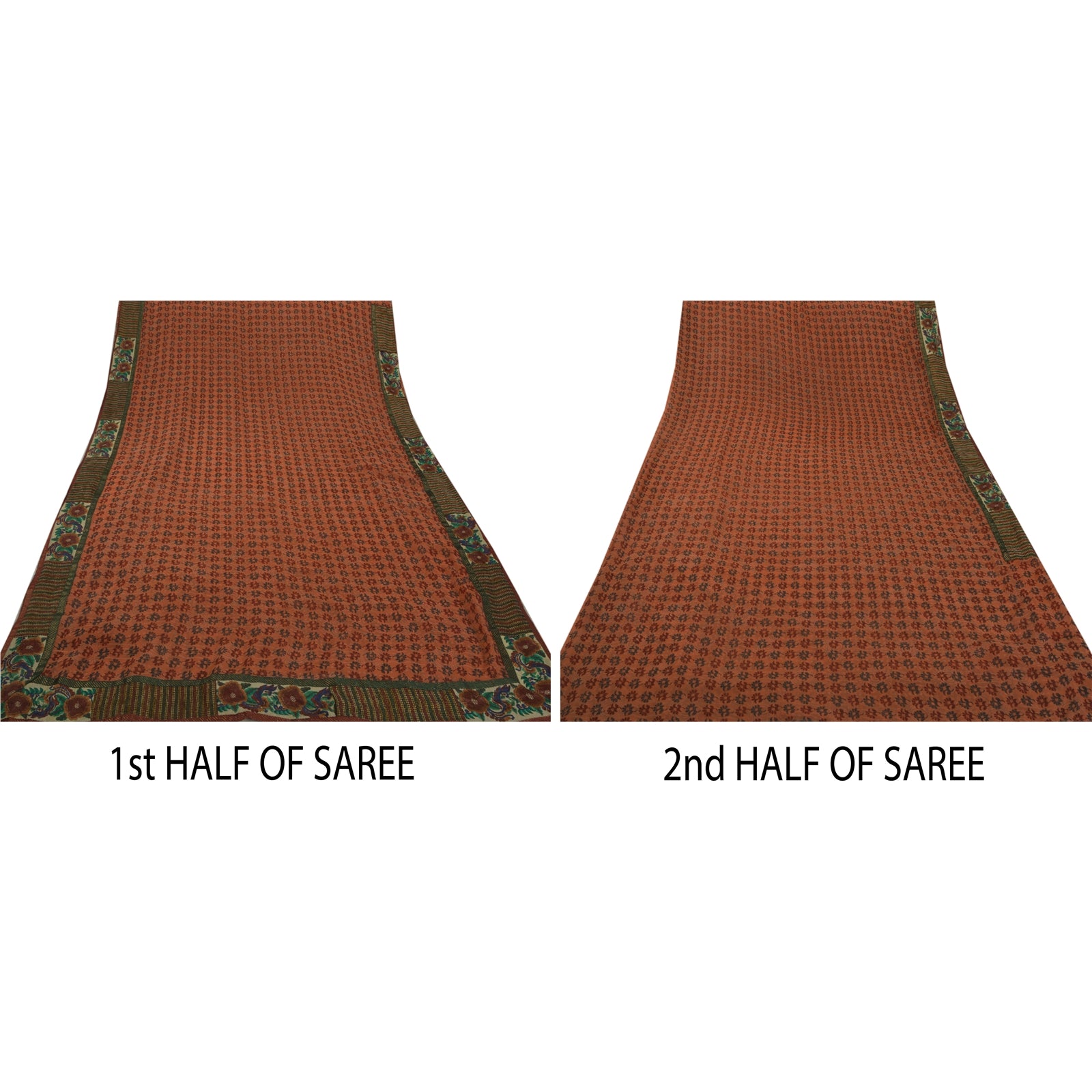 Sanskriti Vintage Indian Saree Georgette Embroidered Orange Sustainable Fabric Premium Sari