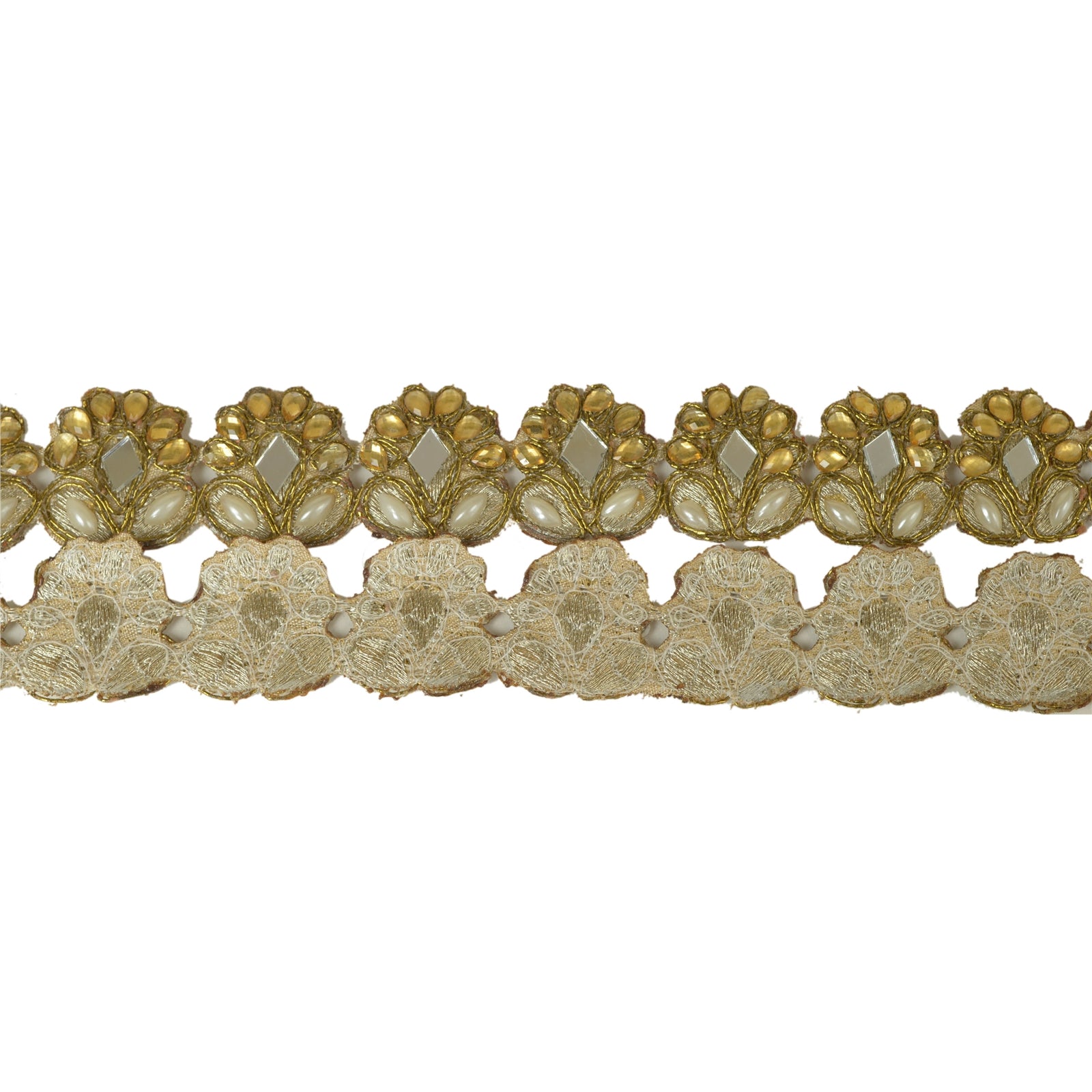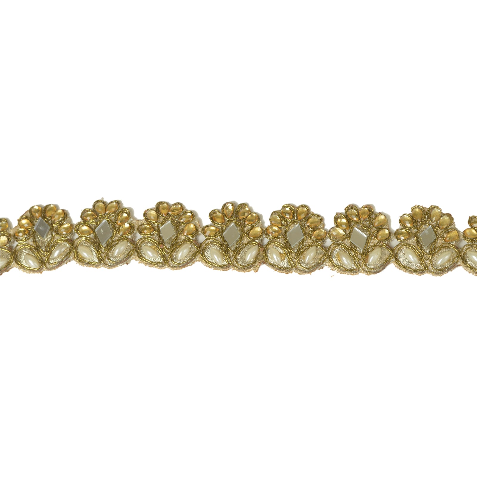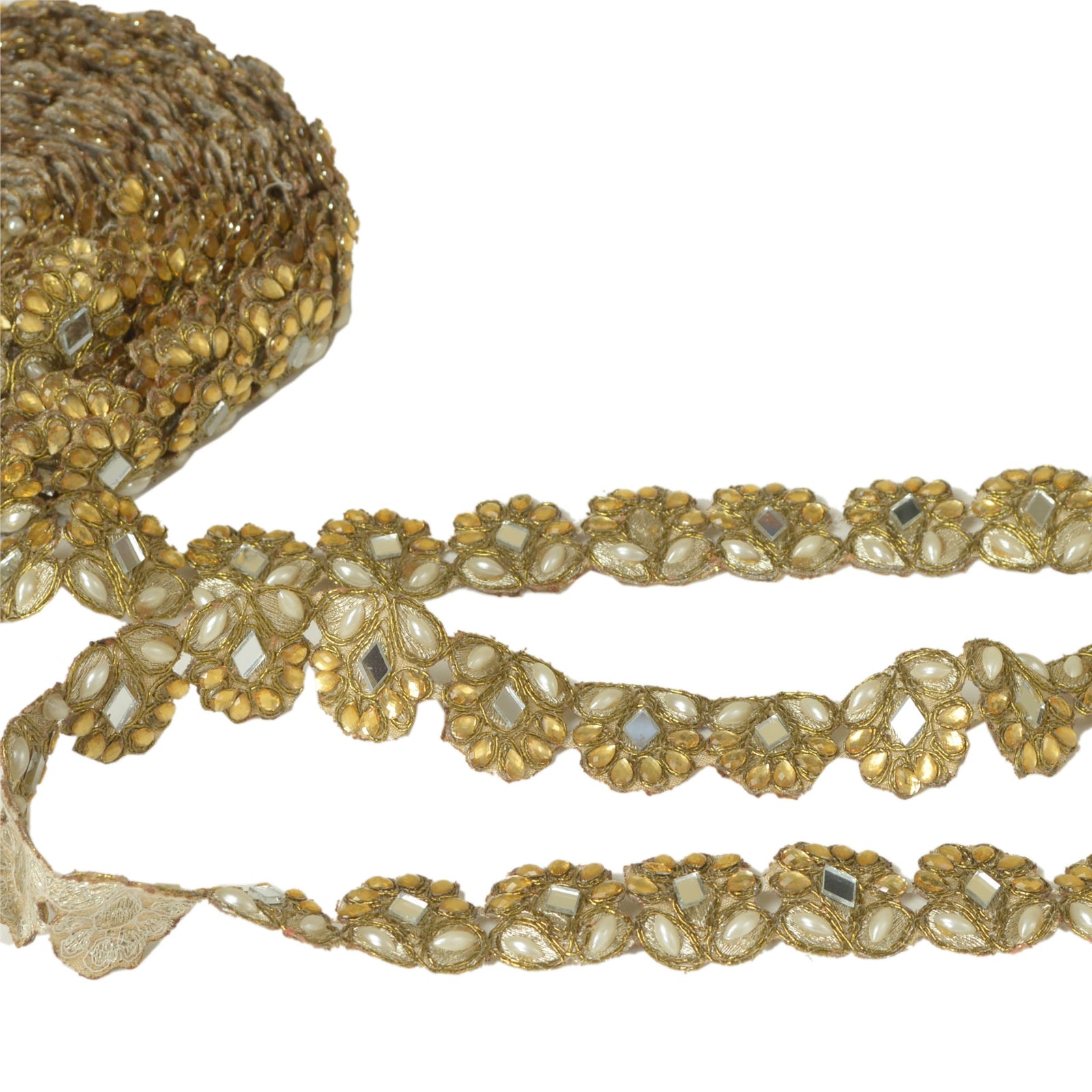 Sanskriti Hand Beaded Bridal Dress Border 1 YD Trim Ribbon Golden Sewing Lace