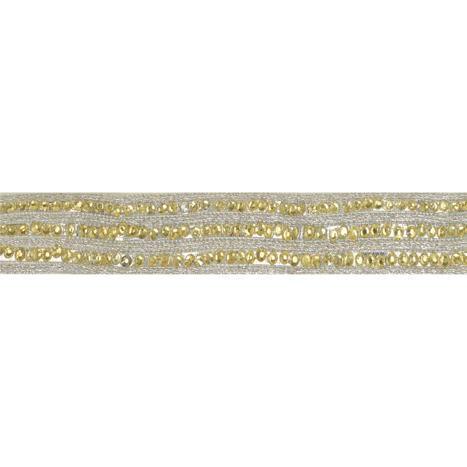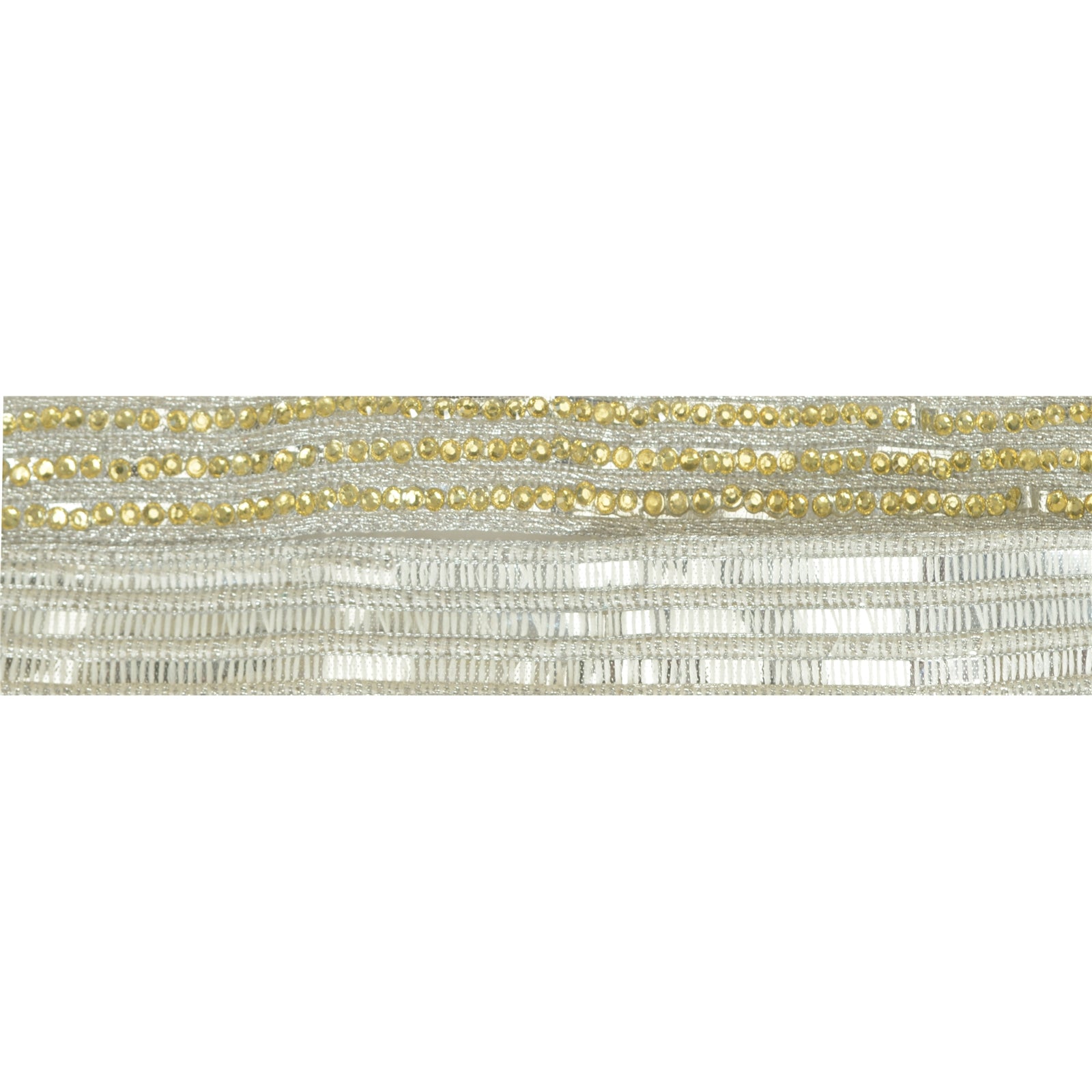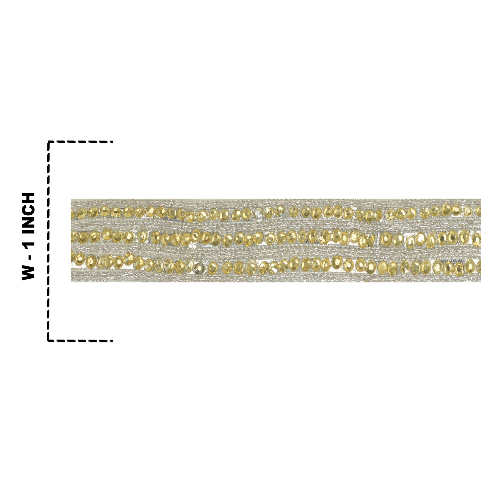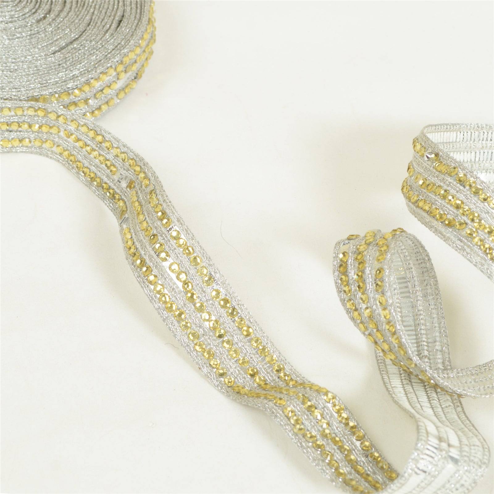 Sanskriti Hand Beaded Dress Border 1YD Trim Silver Craft Lace Sewing Rhinestones