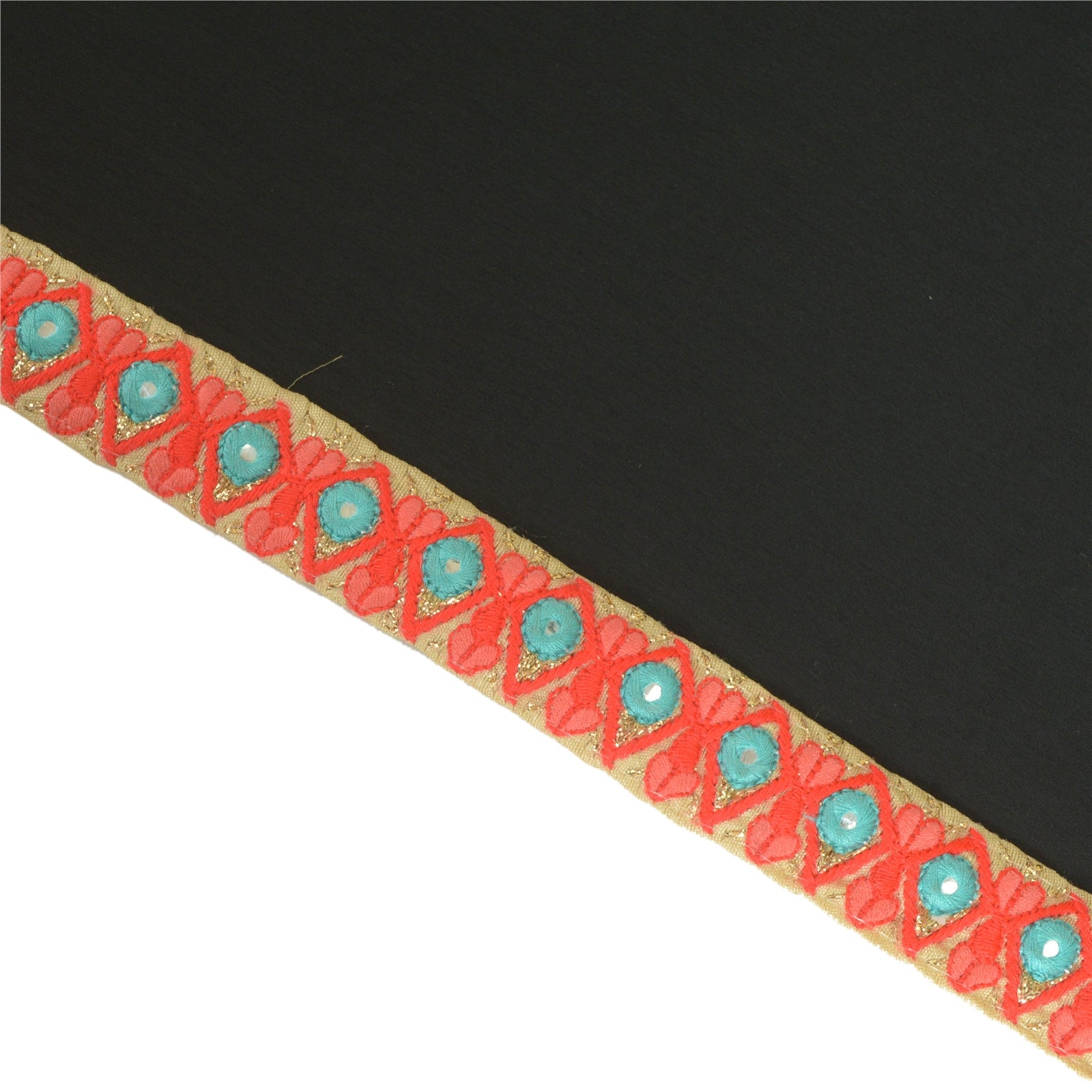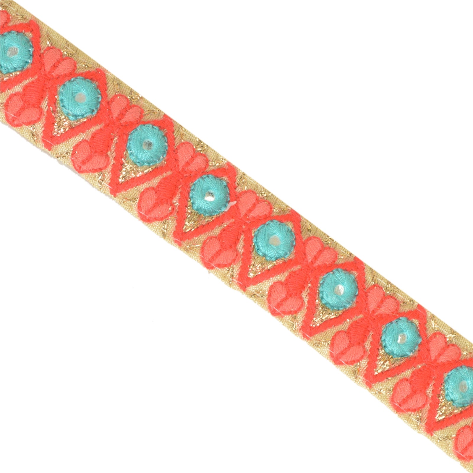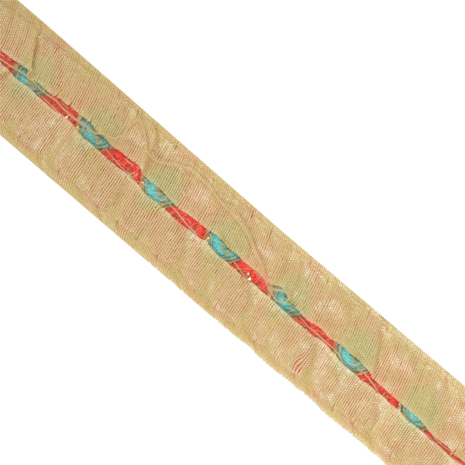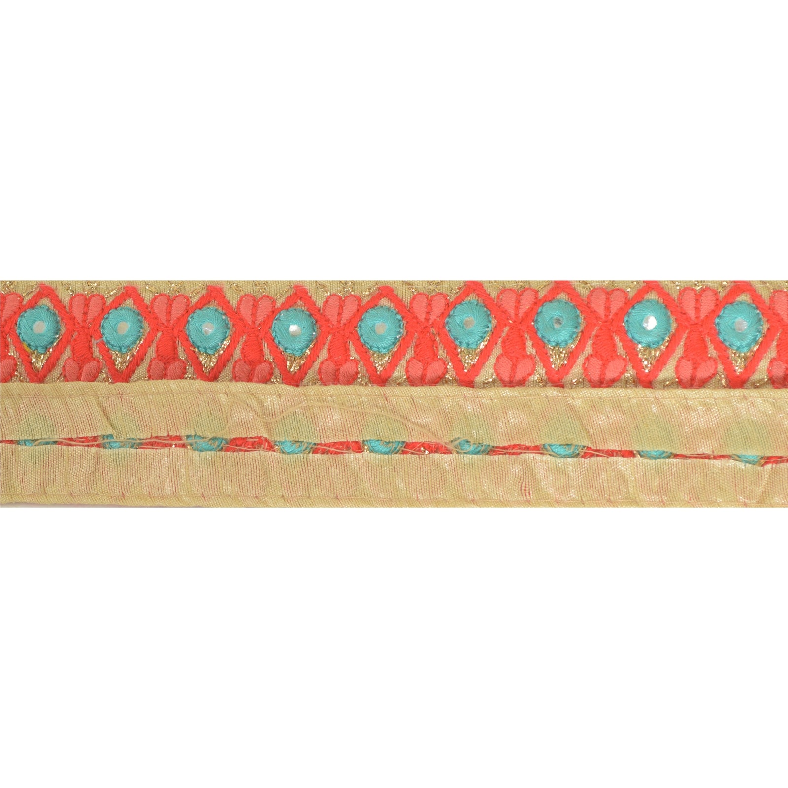 Sanskriti introduces beautiful trims for designing prom dresses, party wear dresses and much more. Visit our store to view our collection of new trims. Awesome designer cream colored hand beaded trim with floral design with red, green and golden thread work. Sparkling mirror work gives an amazing look to the border. This is a unique handmade one of a kind item and definitely among one of the best that has graced our store. Perfect for dress designing, crafting projects & decor. 1 Quantity = 1 yards