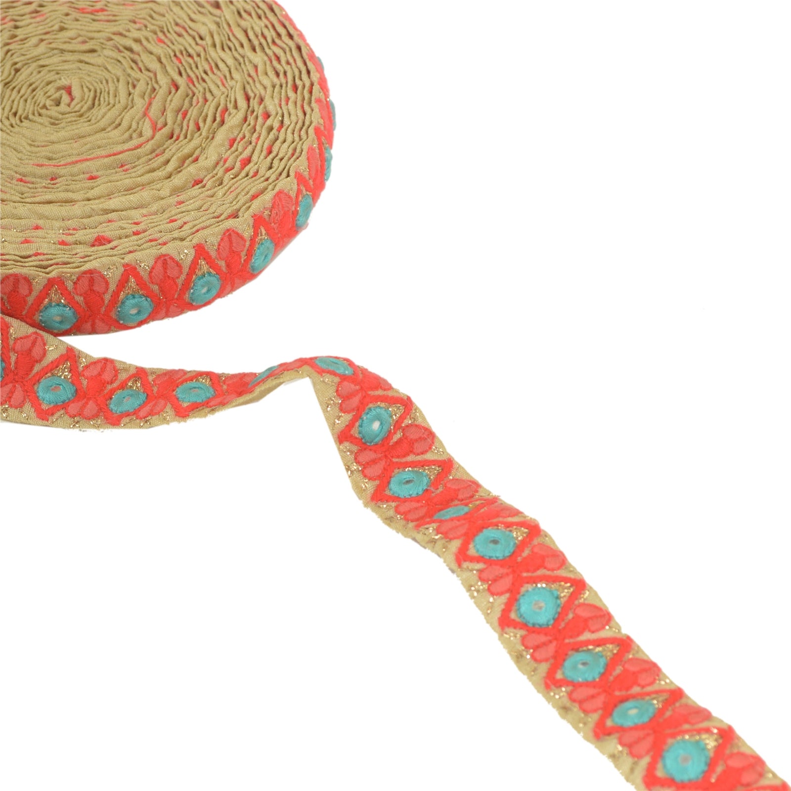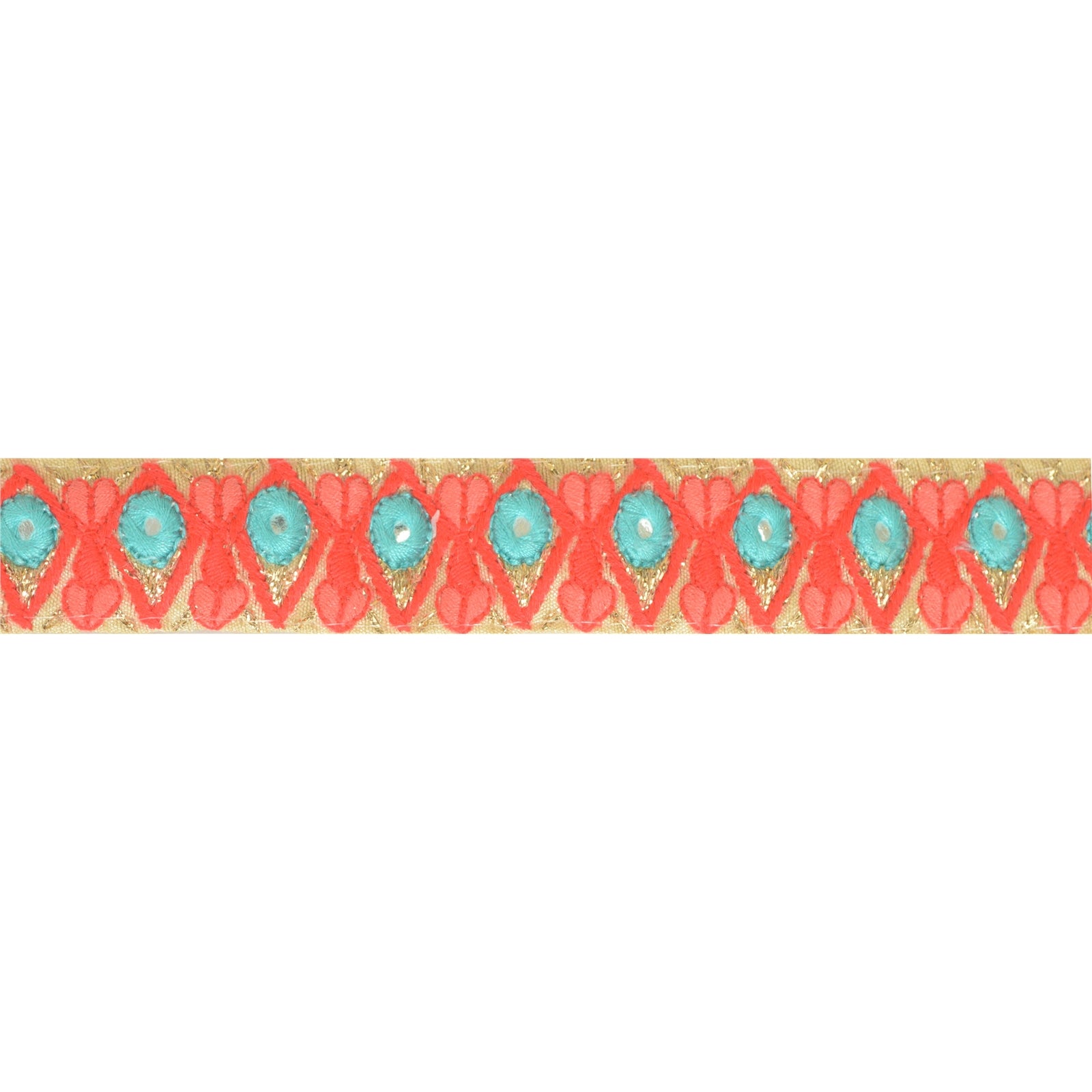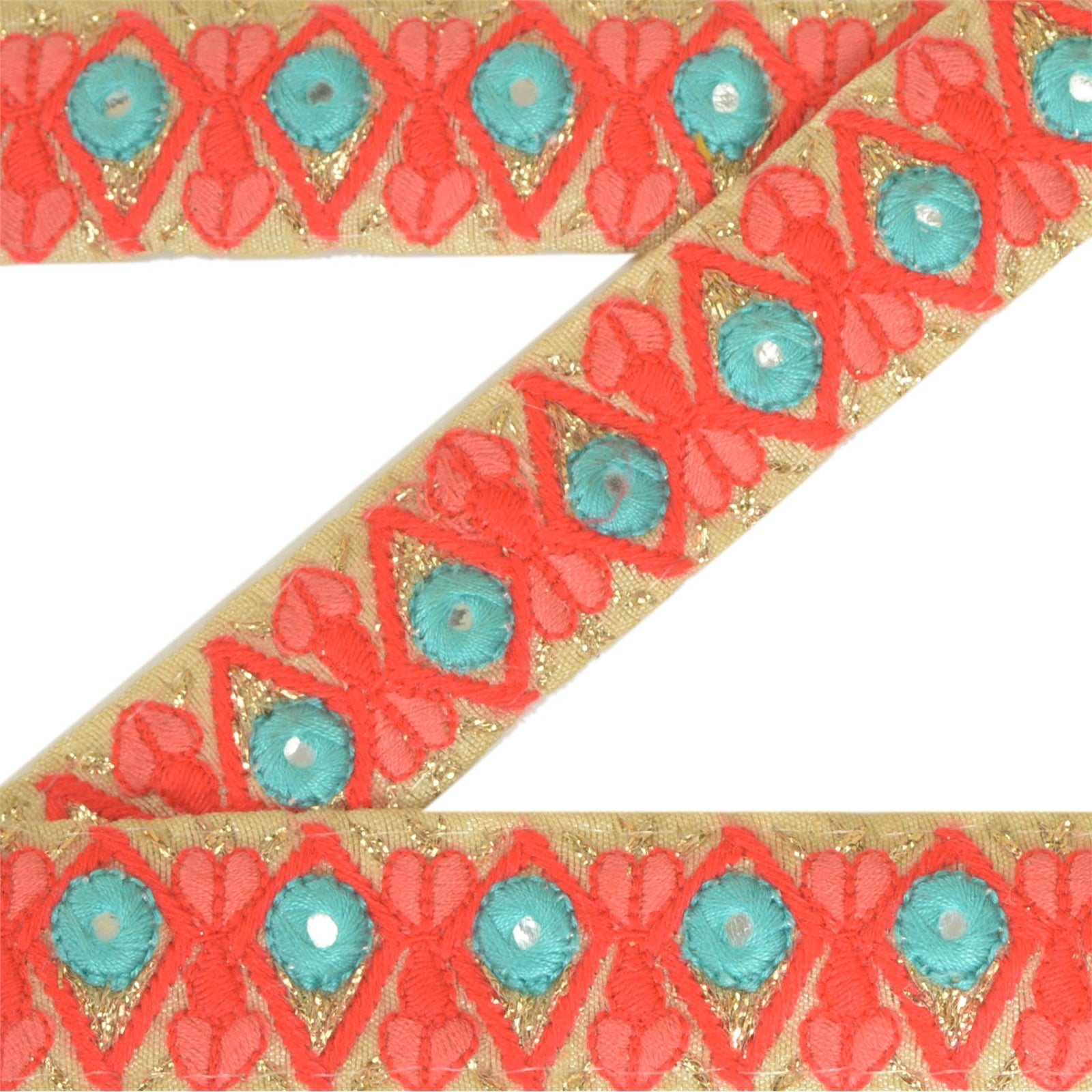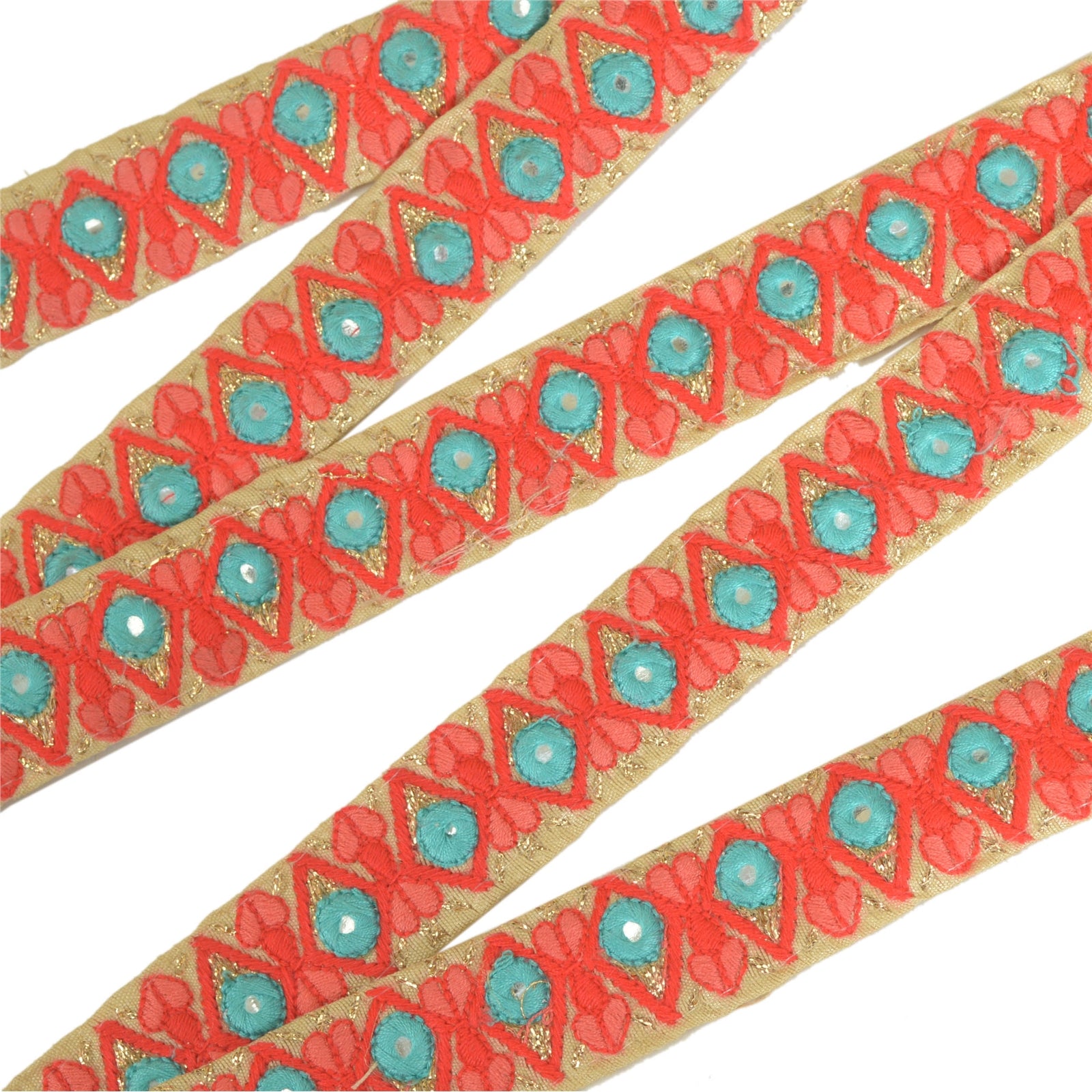 Sanskriti introduces beautiful trims for designing prom dresses, party wear dresses and much more. Visit our store to view our collection of new trims. Awesome designer cream colored hand beaded trim with floral design with red, green and golden thread work. Sparkling mirror work gives an amazing look to the border. This is a unique handmade one of a kind item and definitely among one of the best that has graced our store. Perfect for dress designing, crafting projects & decor. 1 Quantity = 1 yards