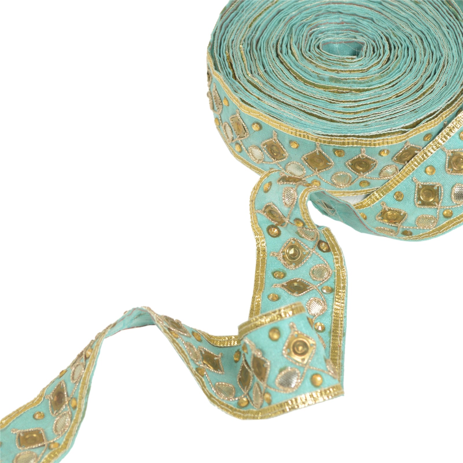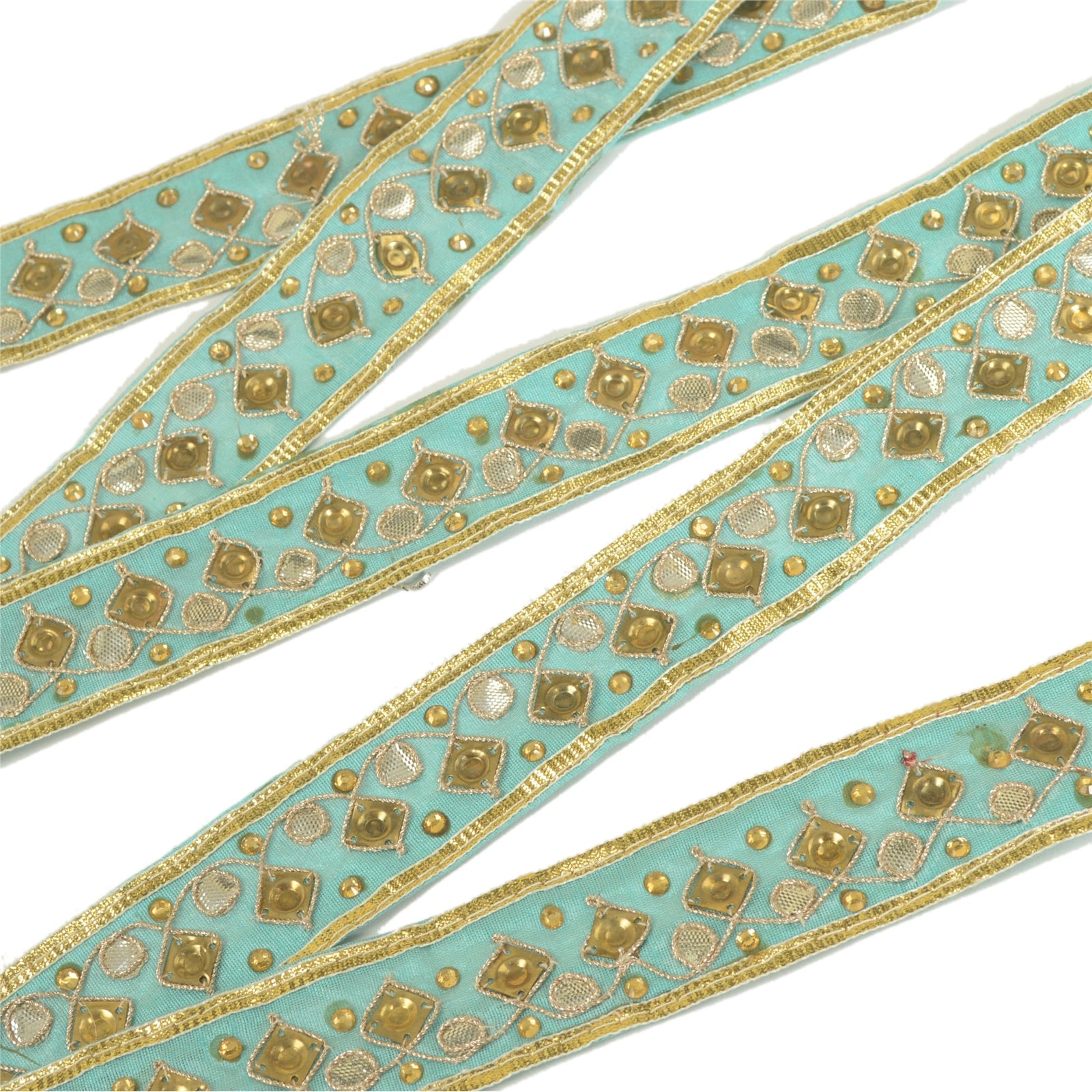 Sanskriti Indian Embroidered Prom Dress Border 1 YD Trim Blue Craft Lace
