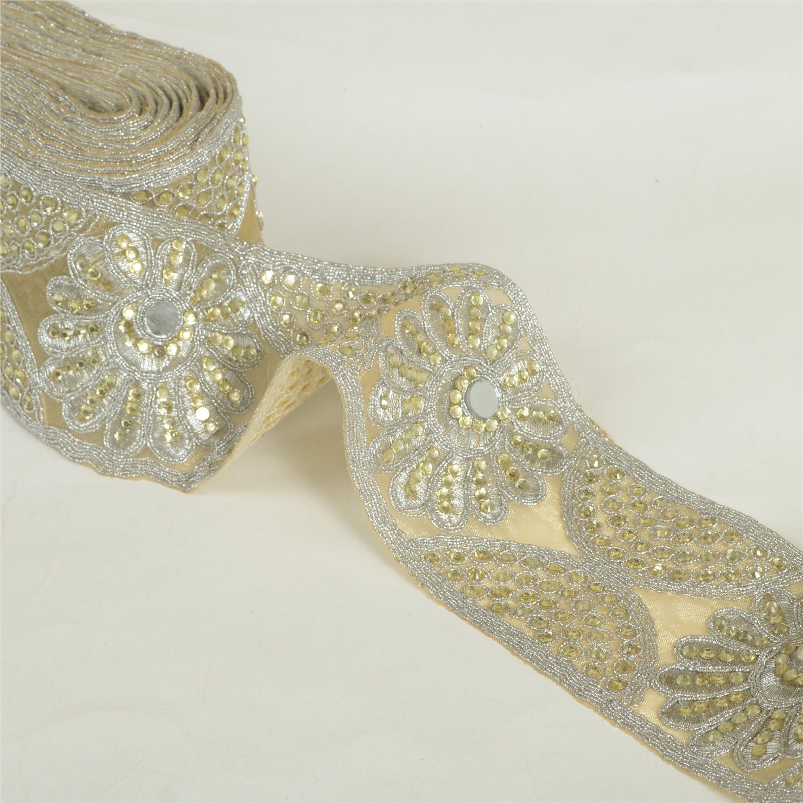 Sanskriti Indian Hand Beaded Dress Border 1 YD Trim Ribbon Golden Craft Lace