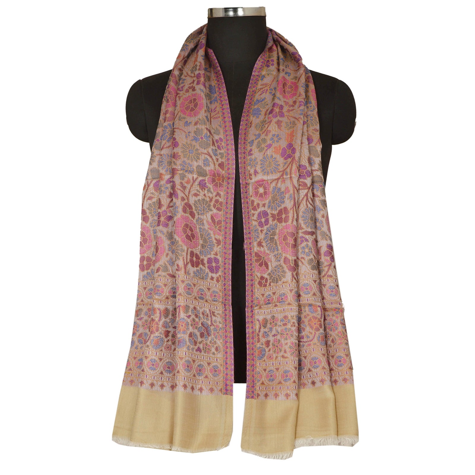 We are offering you a new cream colored viscose fulkari stole which adorns with woven work. The shawl or stole features floral design with multicolor threads. This cozy, warm and fuzzy stole is soft against skin due to the mellow woolen Sustainable Fabric. A truly gorgeous piece which will also make an admirable gift.