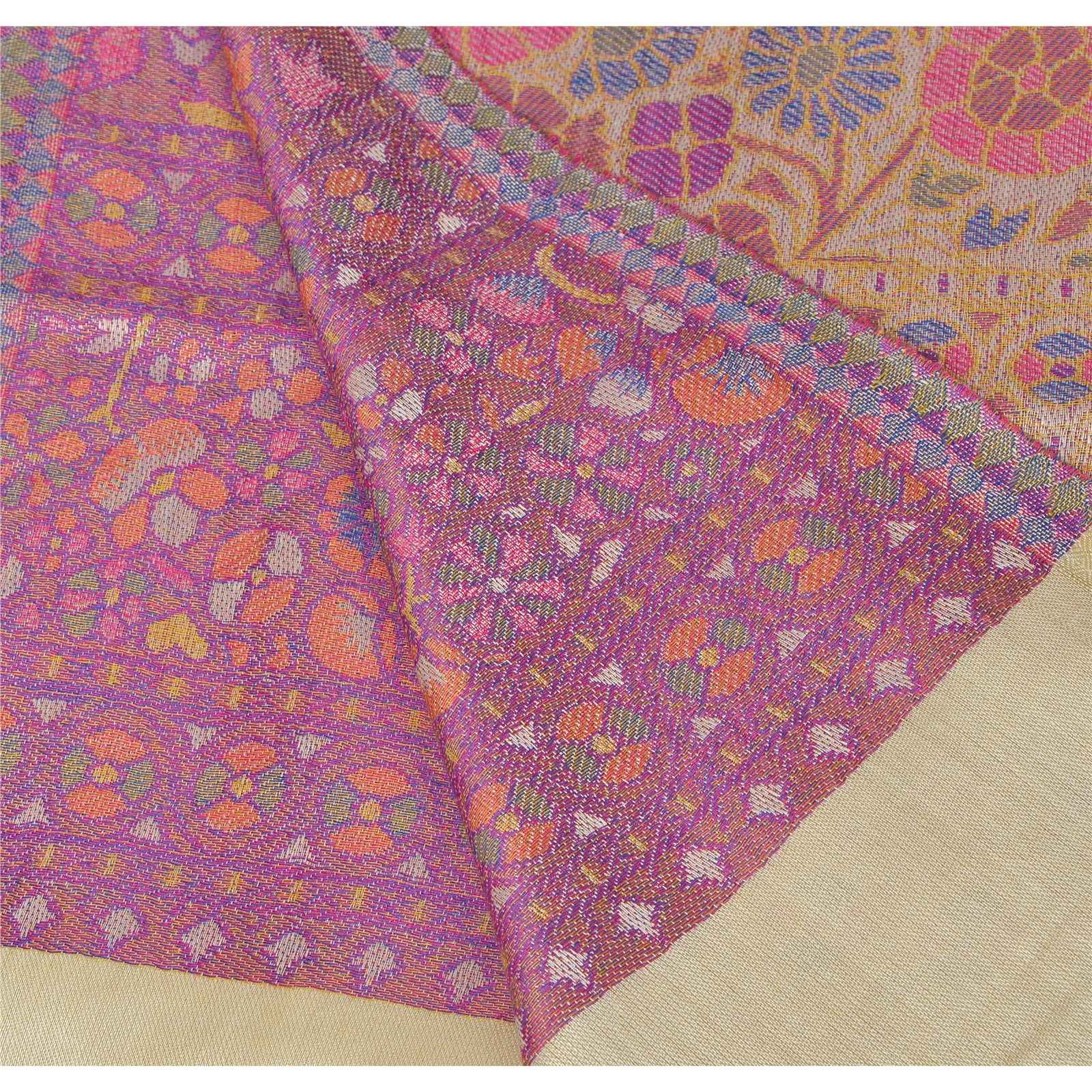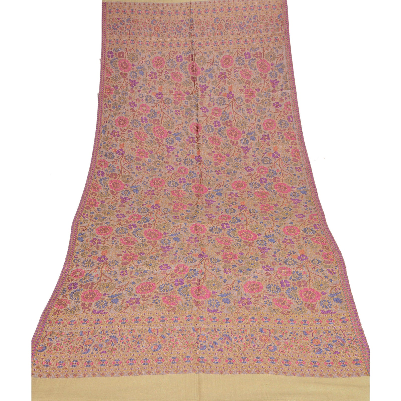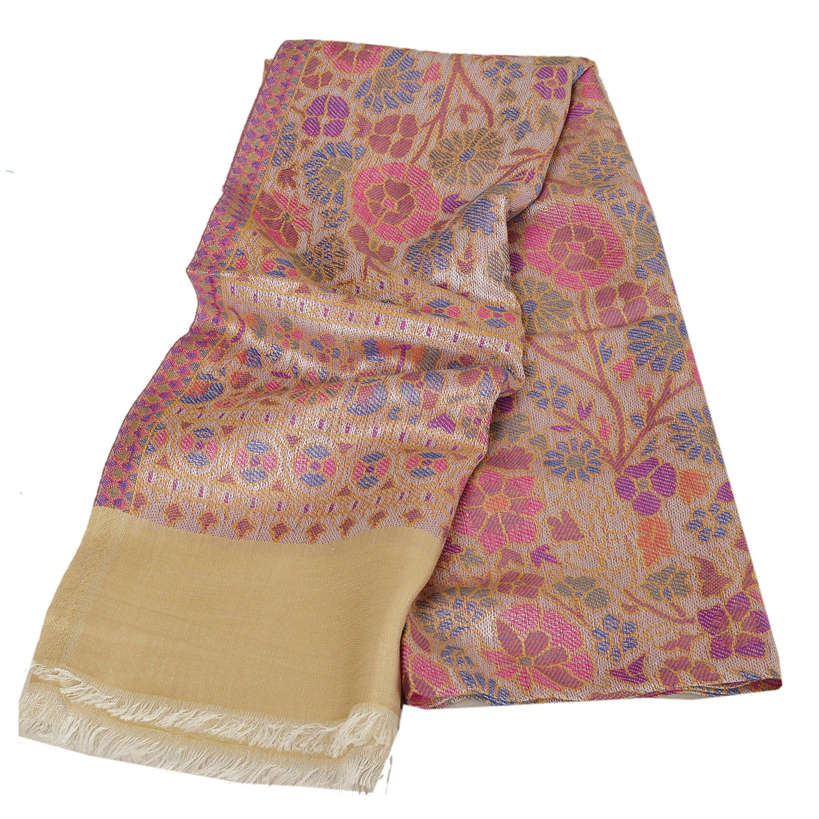 Sanskriti New Cream Shawl Viscose Fulkari Woven Long Stole Soft Scarf Floral