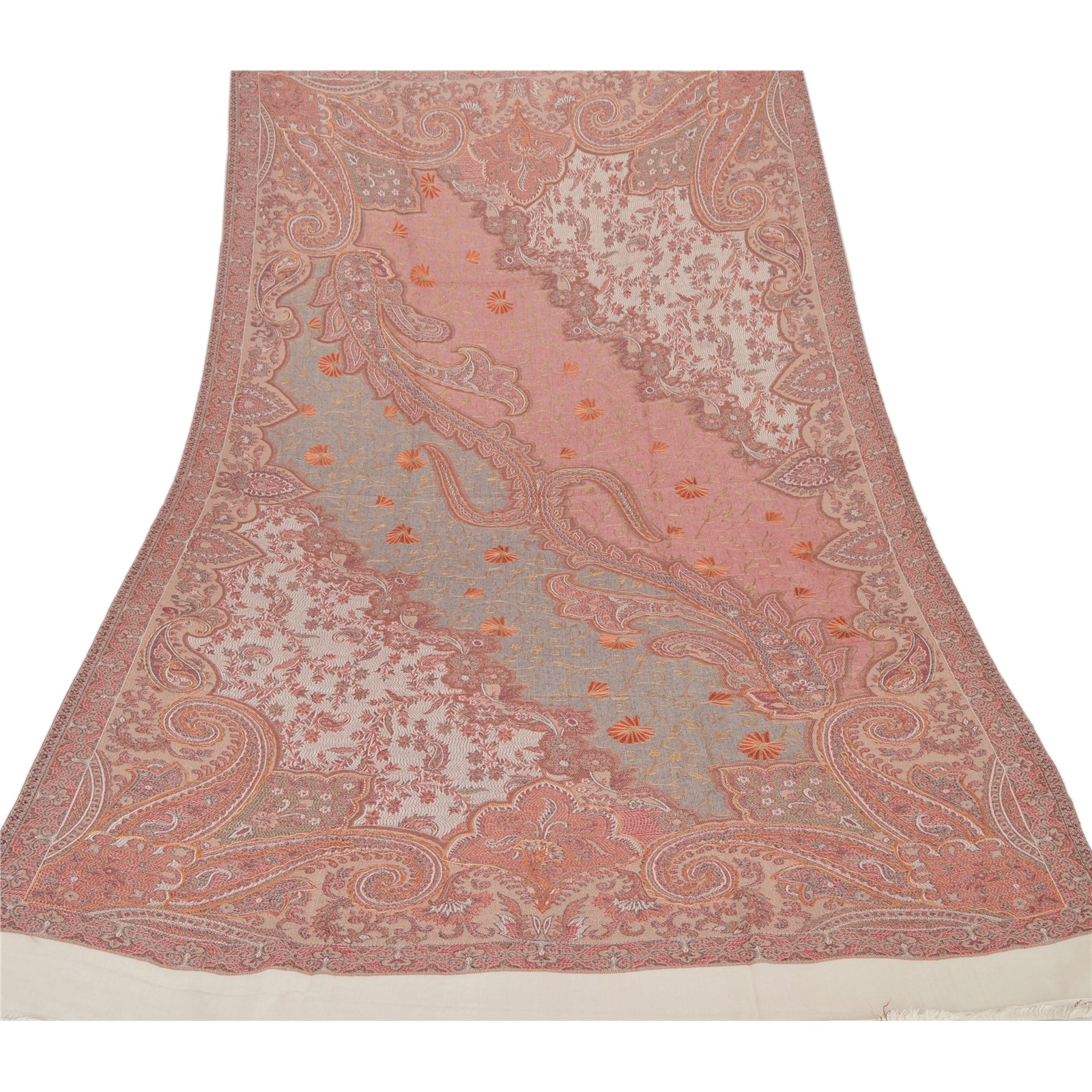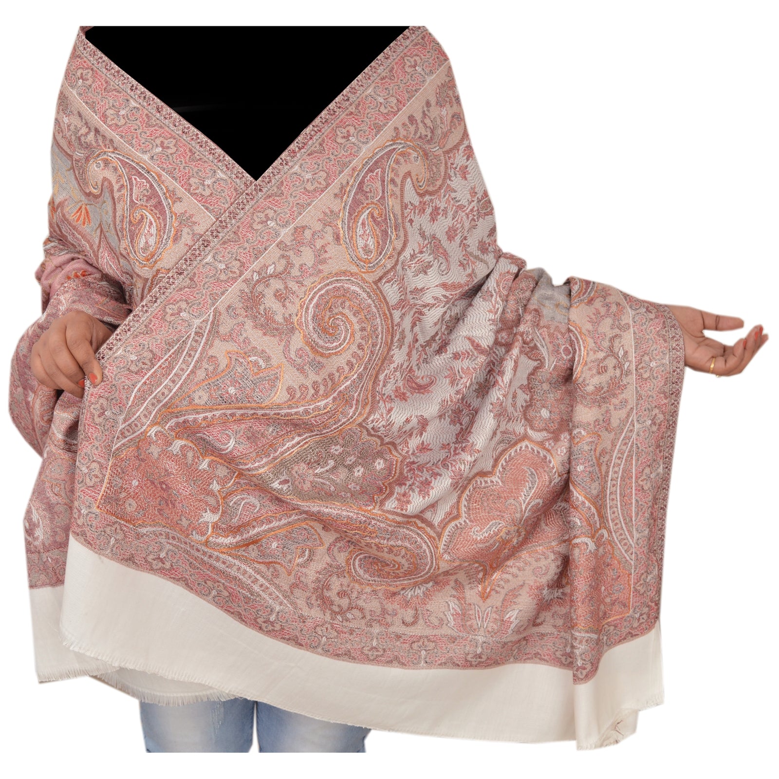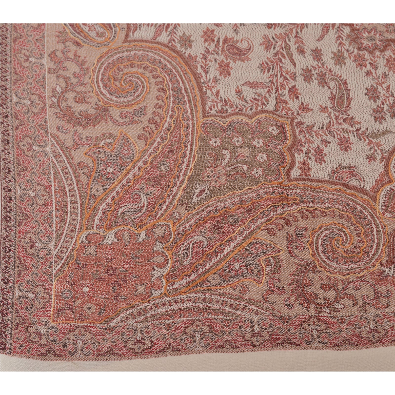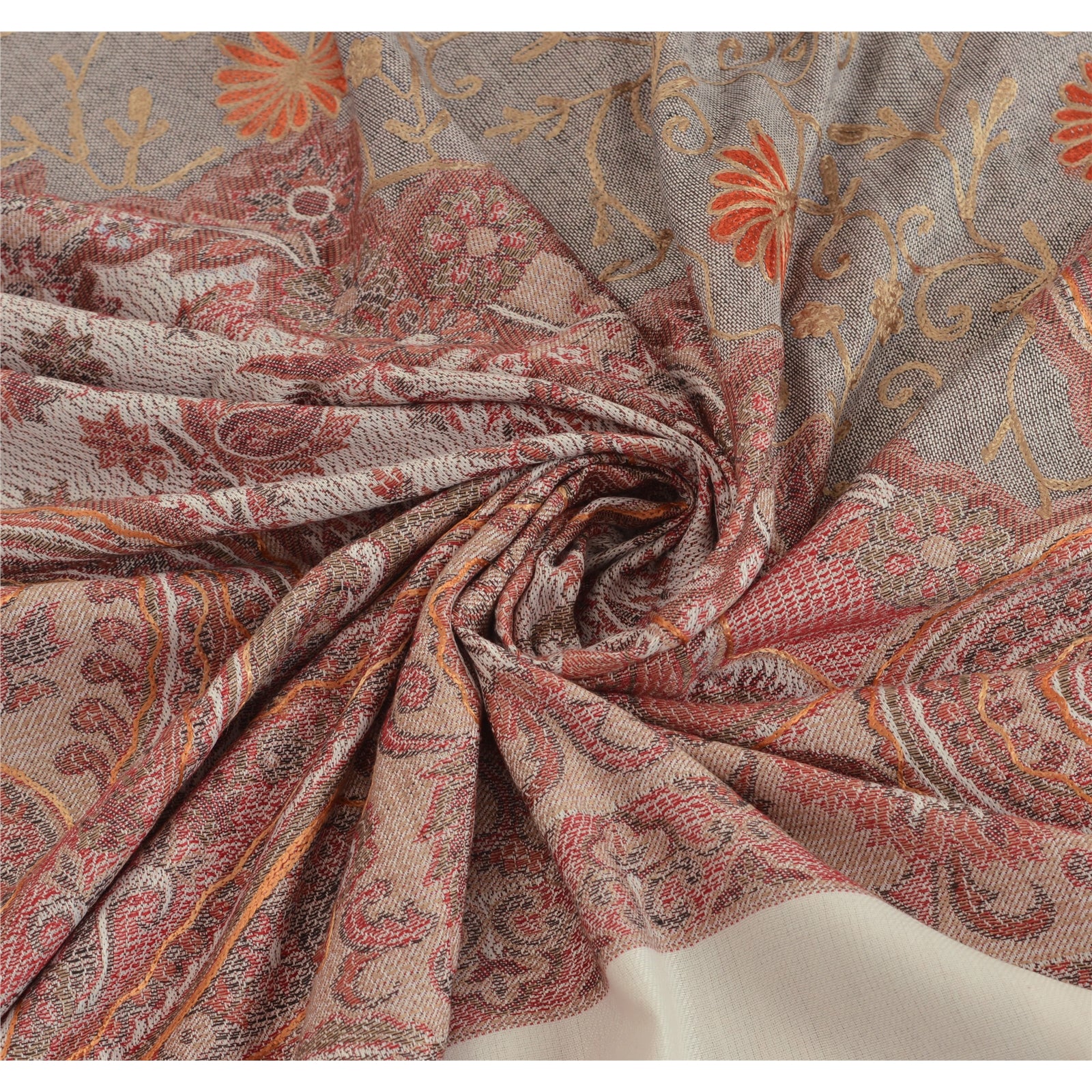 Sanskriti New Scarf Embroidered Poly Wool Indian Shawl White Woven Work Stole