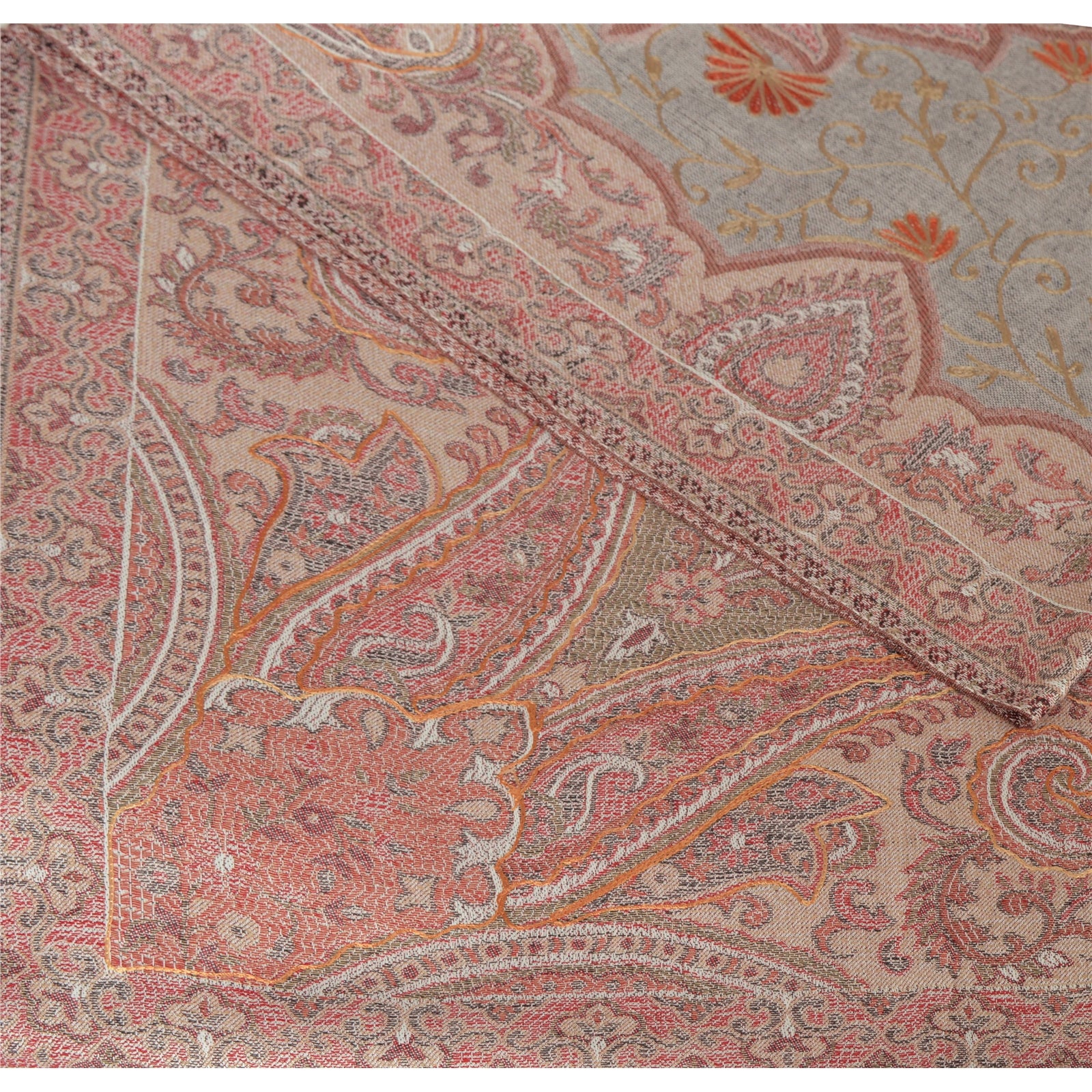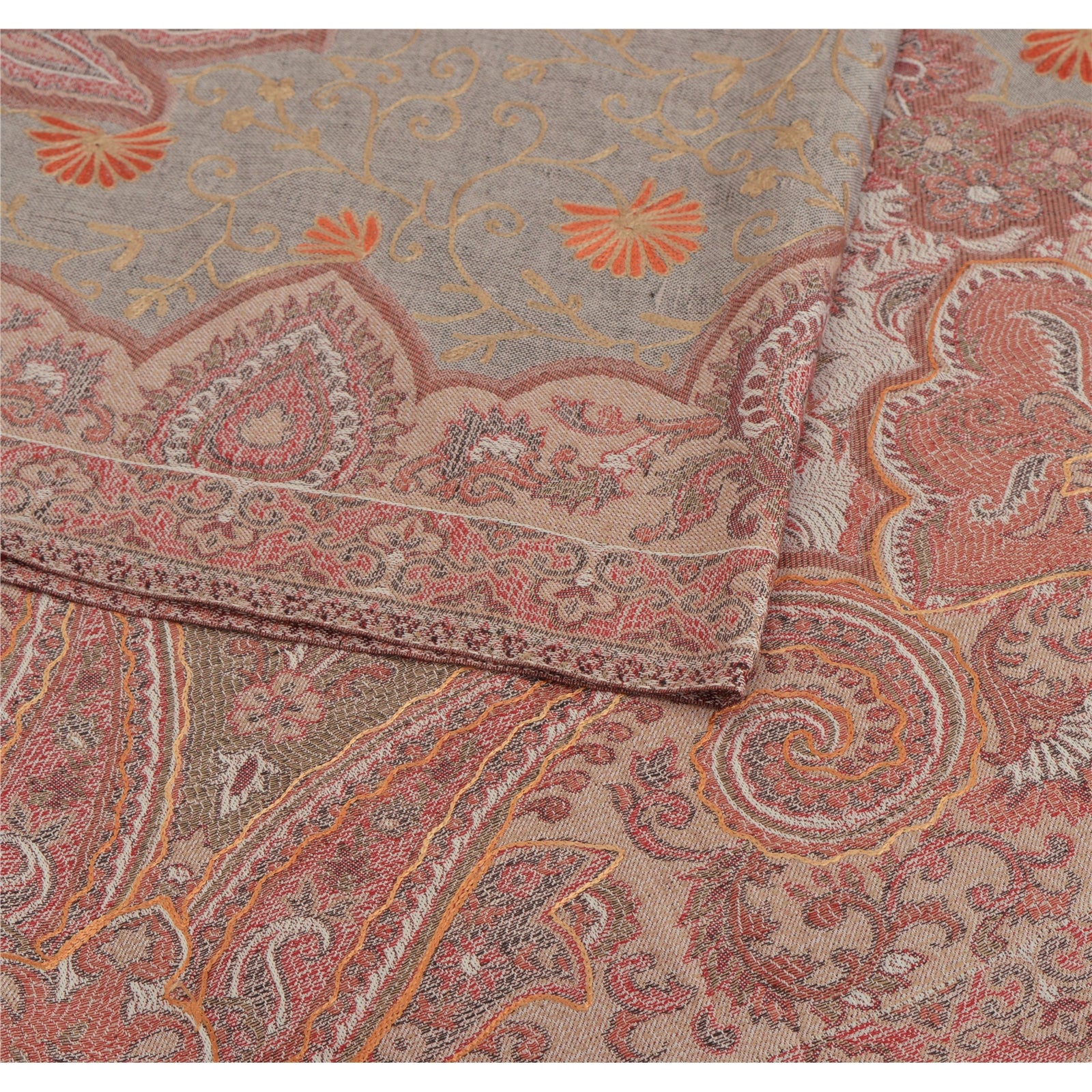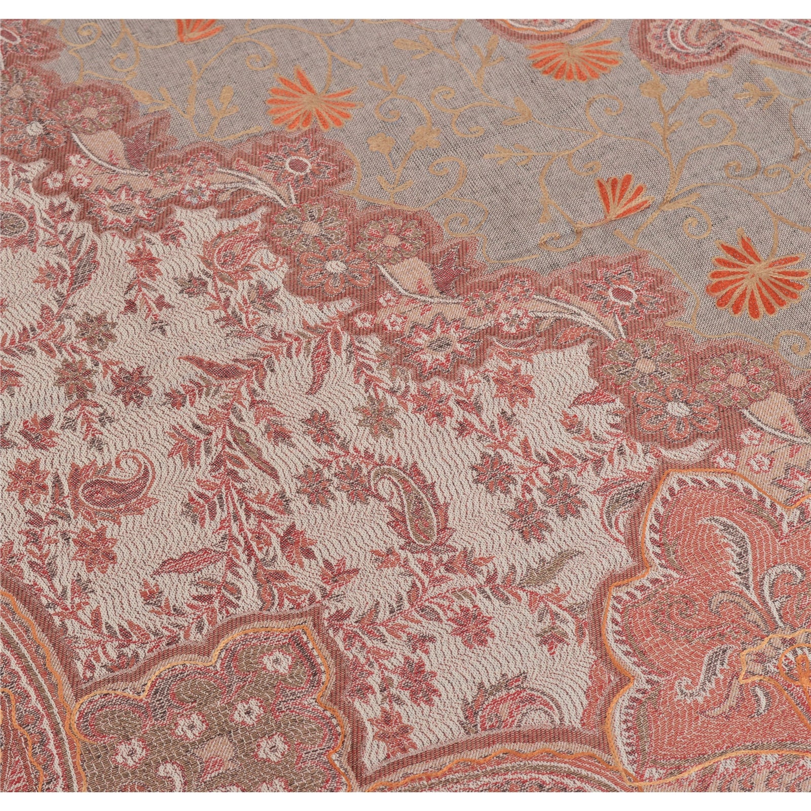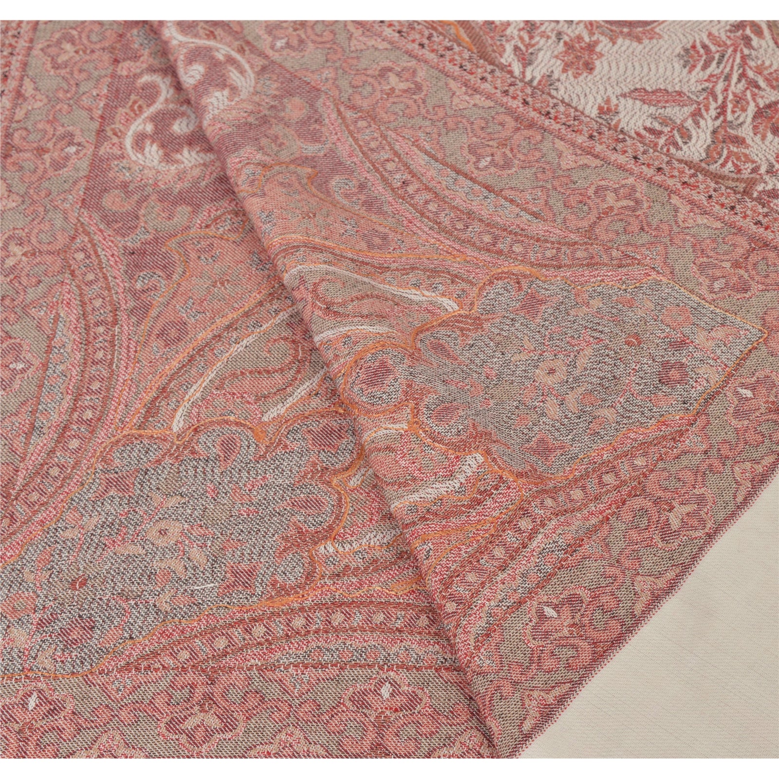 Sanskriti New Scarf Embroidered Poly Wool Indian Shawl White Woven Work Stole