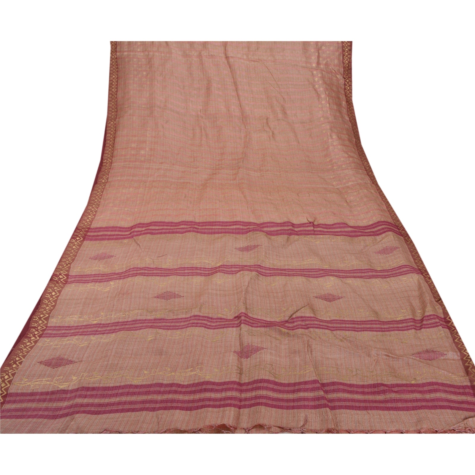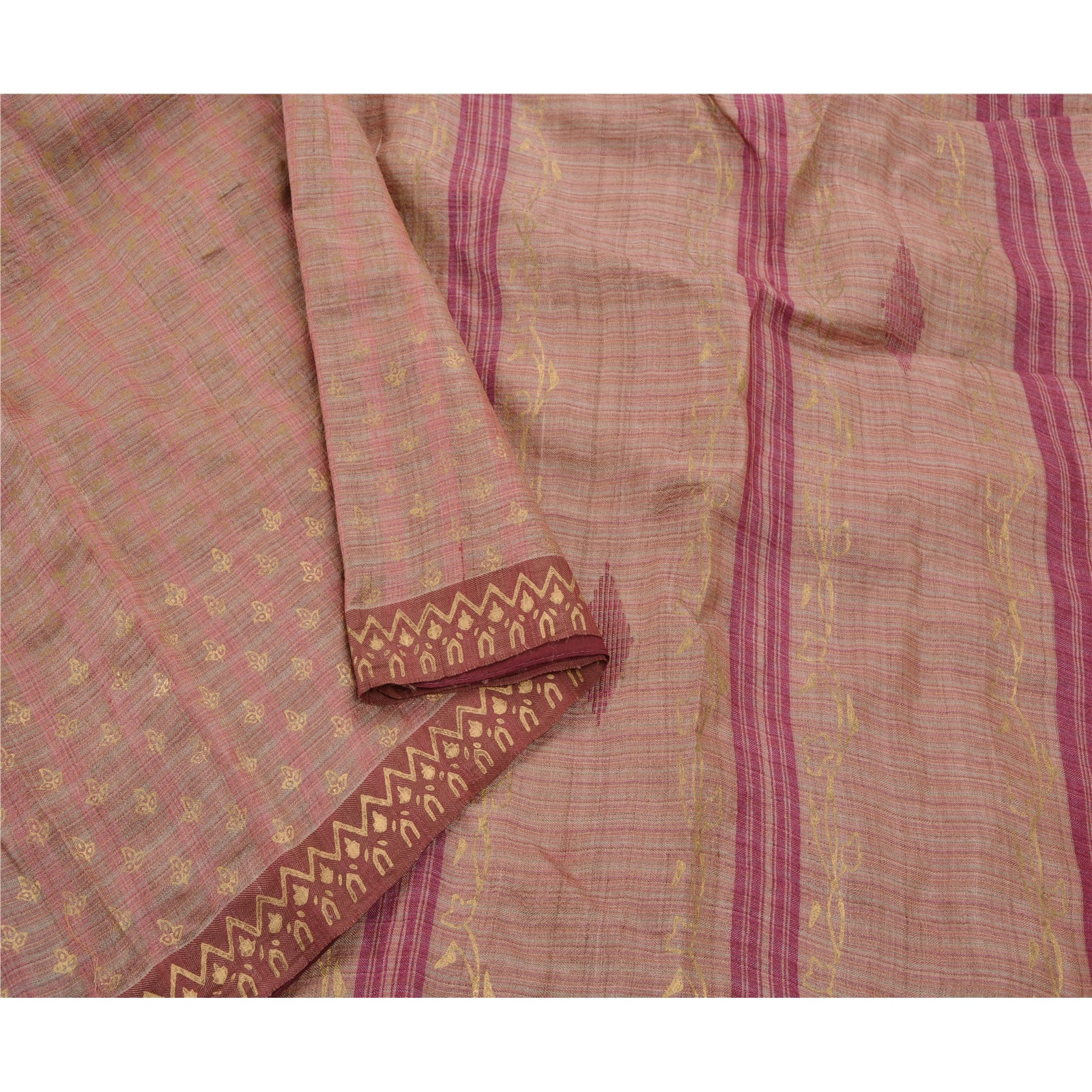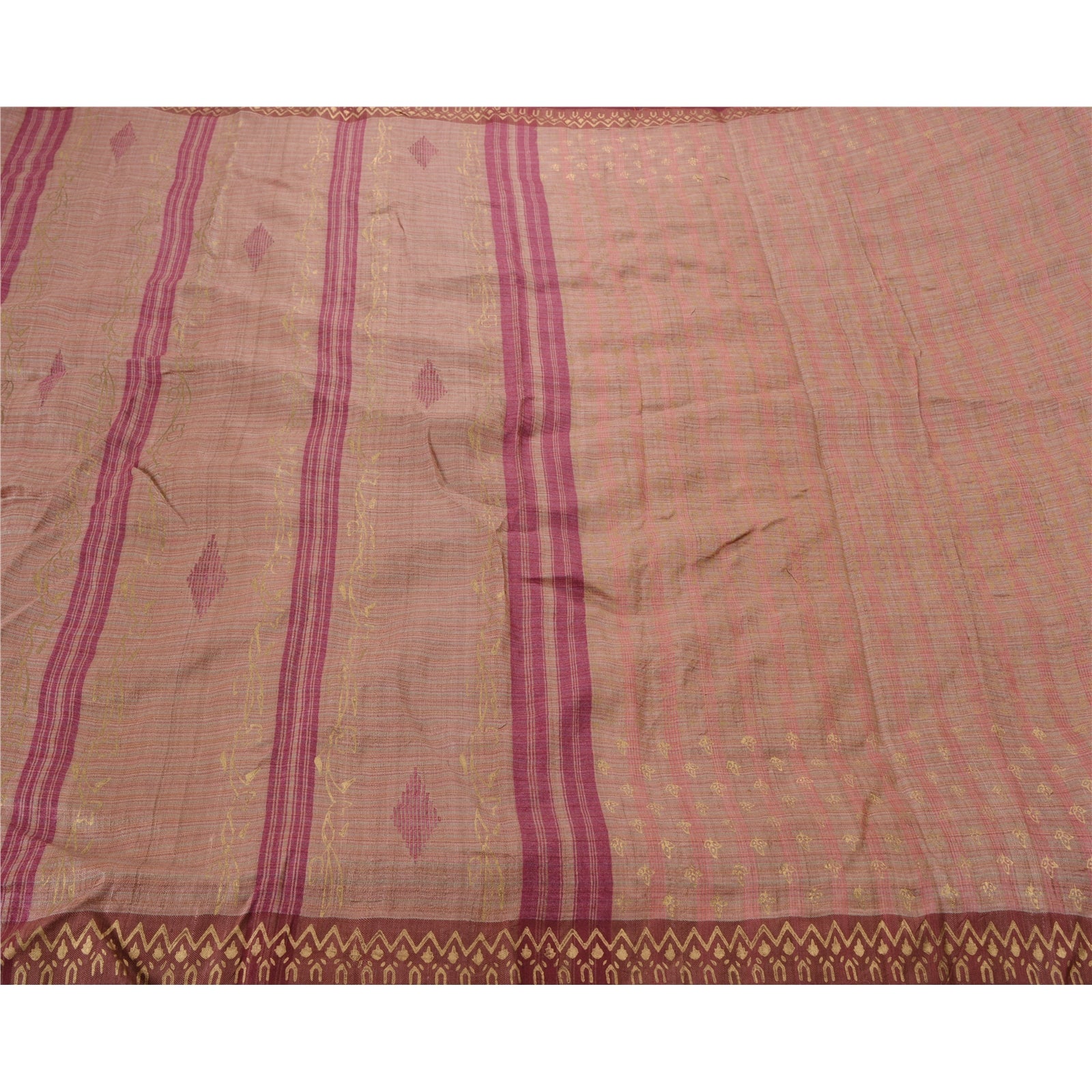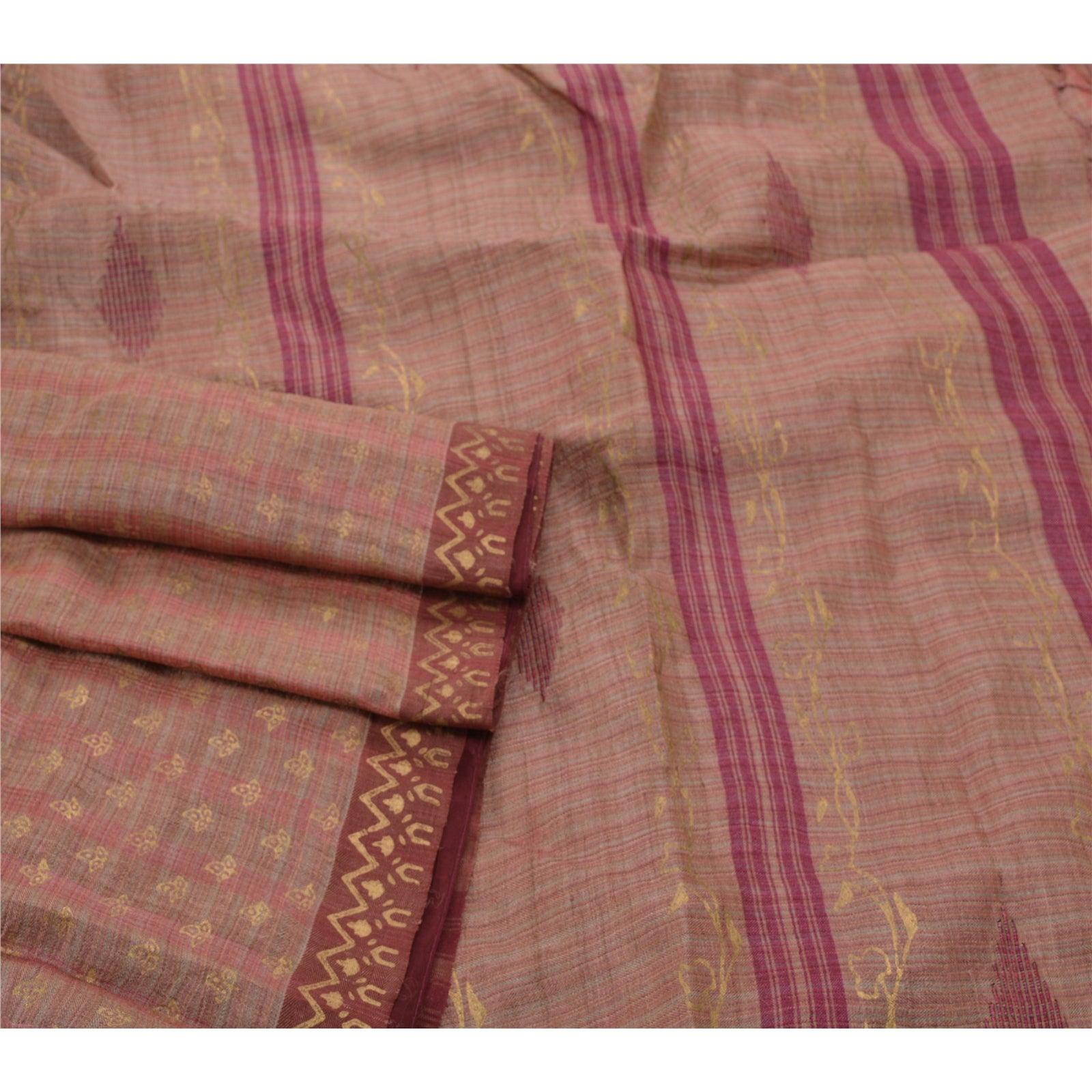 Sanskriti Vintage Brown Heavy Sari 100% Pure Woolen Sustainable Fabric Painted Woven Sarees