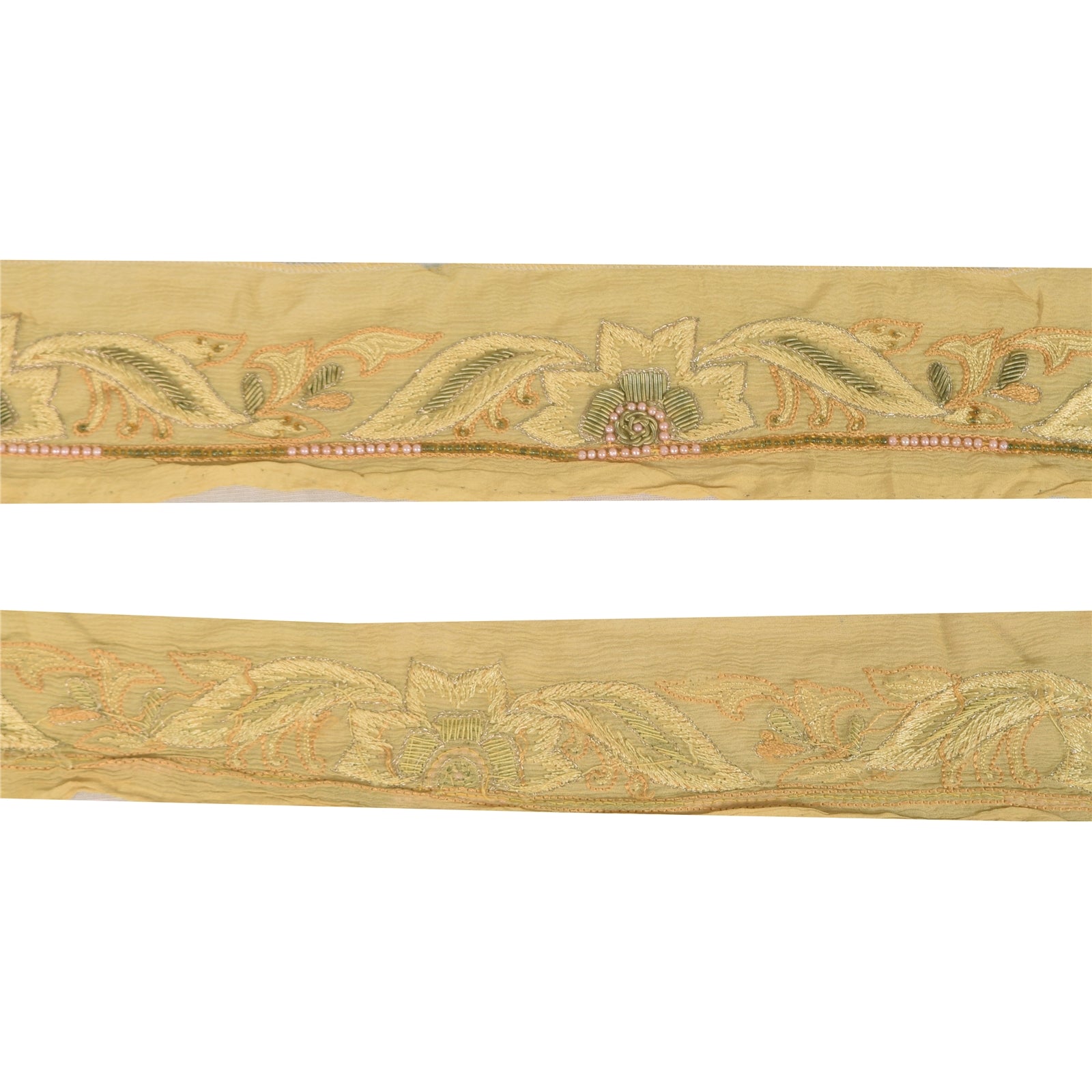 Sanskriti Vintage 1 YD Sari Border Hand Bead Zari Zardozi Trim Cream Craft Lace