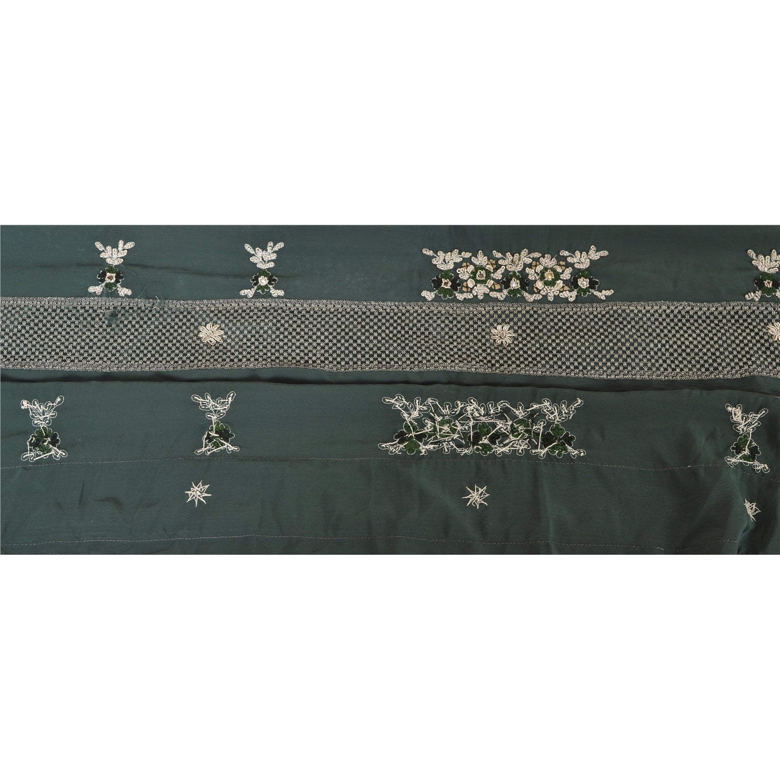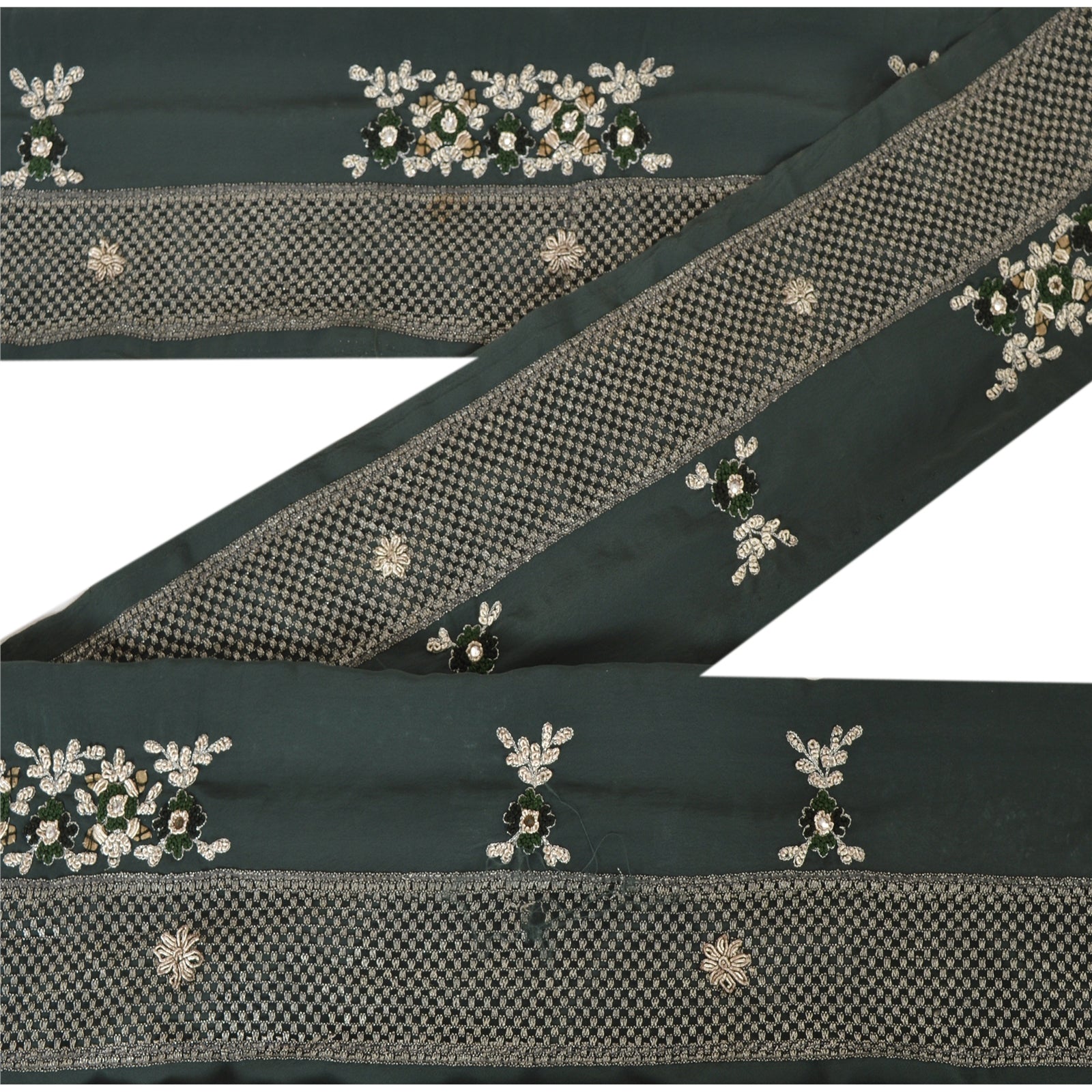 Sanskriti Vintage 1 Yd Sari Border Hand Beaded Craft Trim Sewing Green Lace