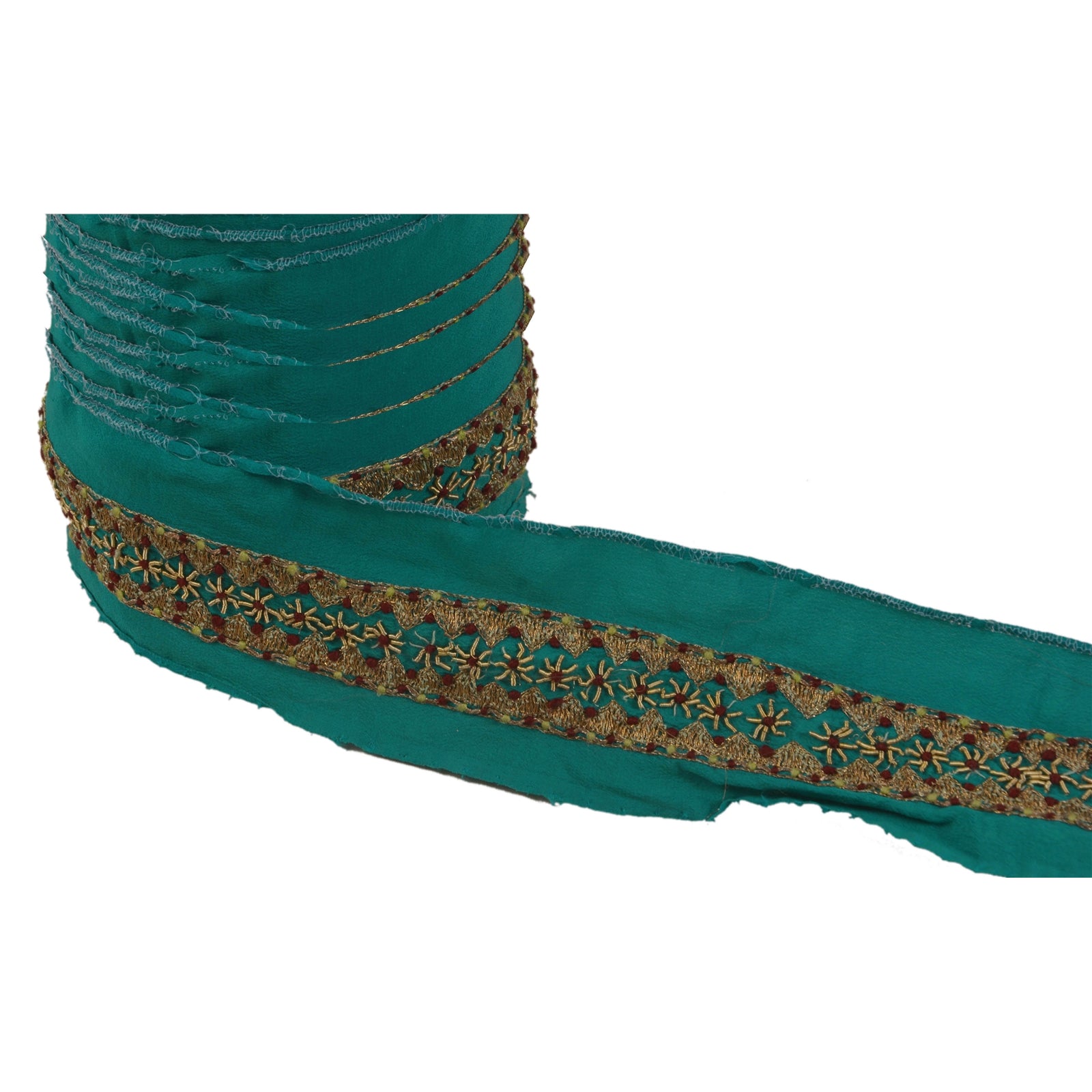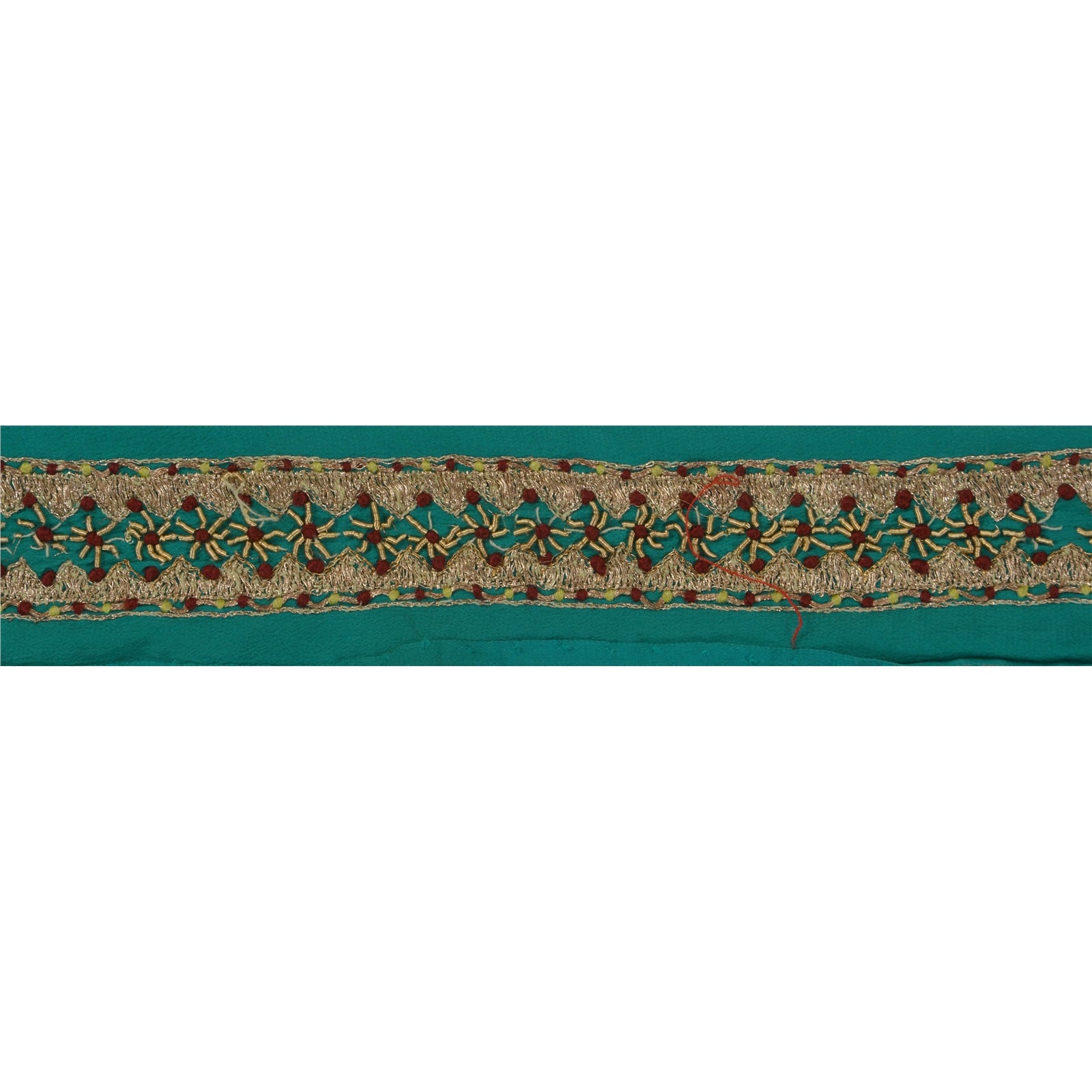 Sanskriti Vintage 1 Yd Sari Border Hand Embroidered Ribbon Green Craft Lace