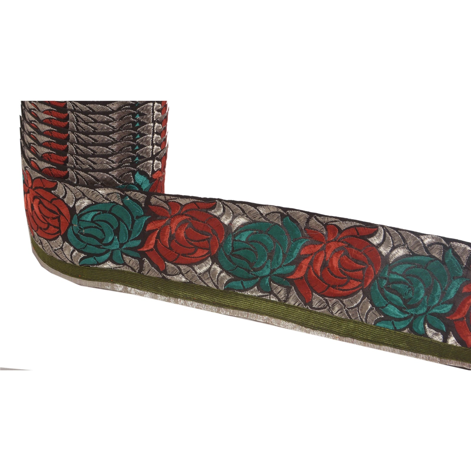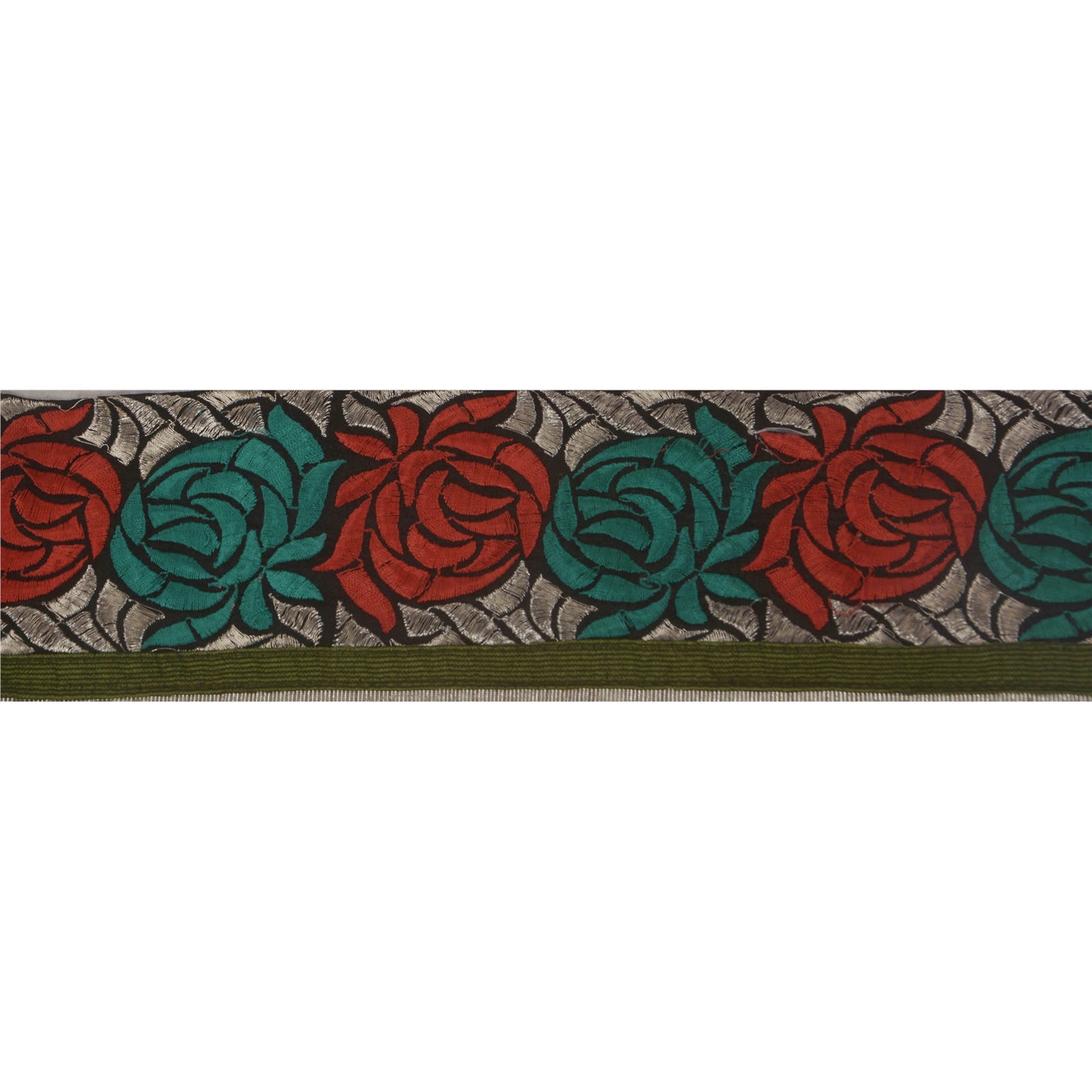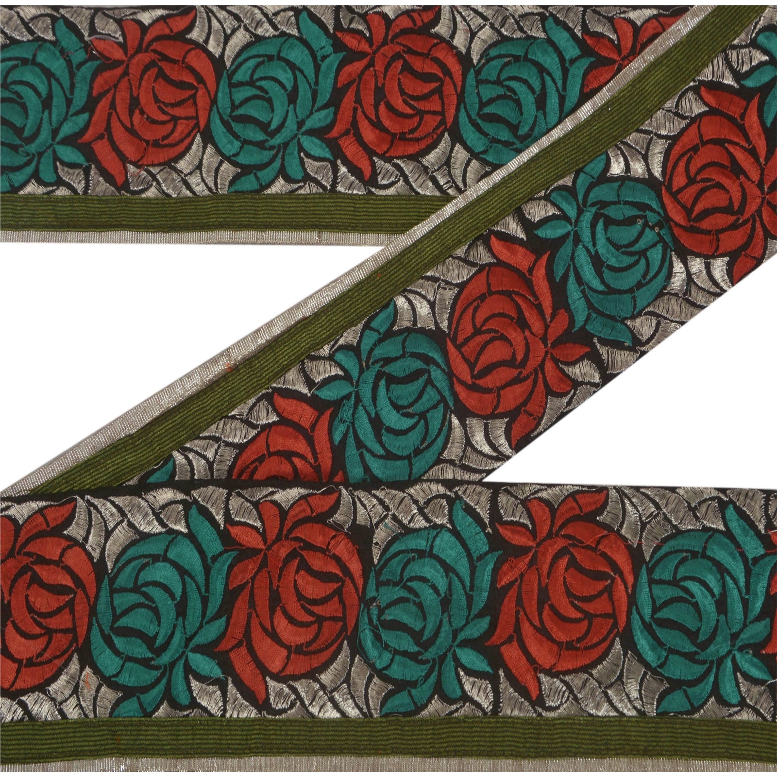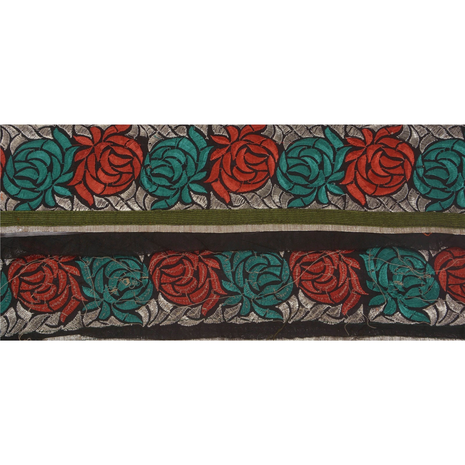 Sanskriti Vintage 1 Yd Sari Border Embroidered Sewing Craft Black Trim Lace
