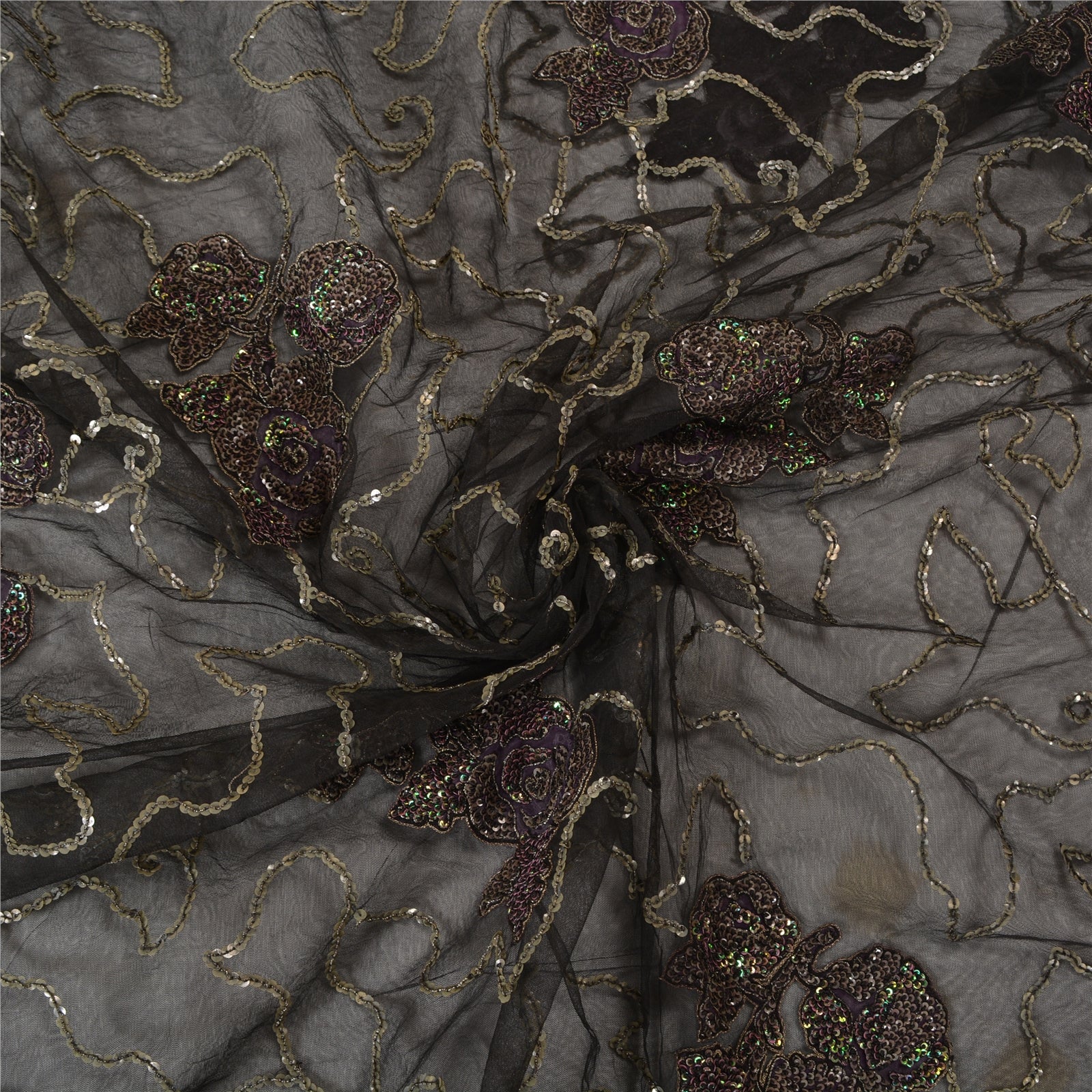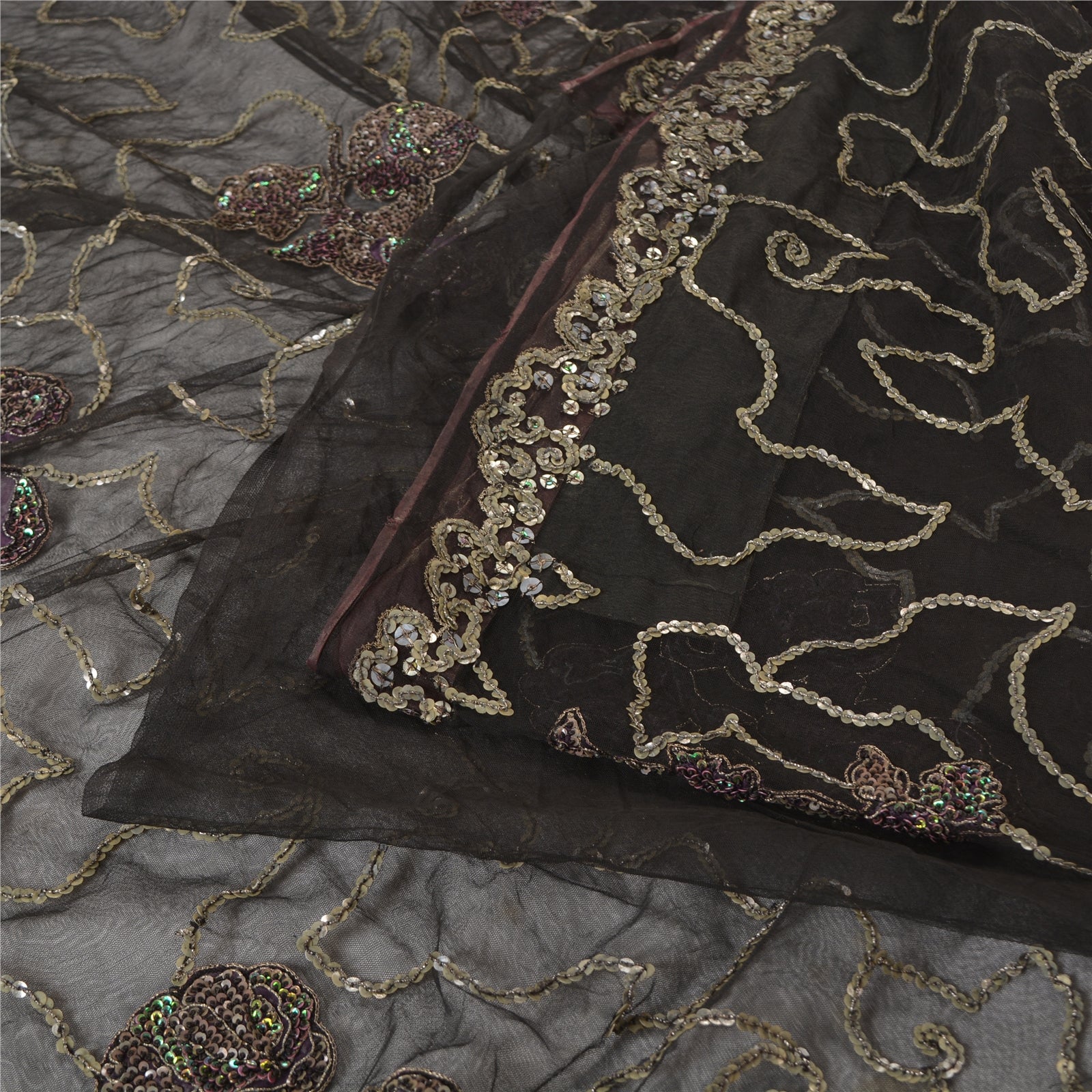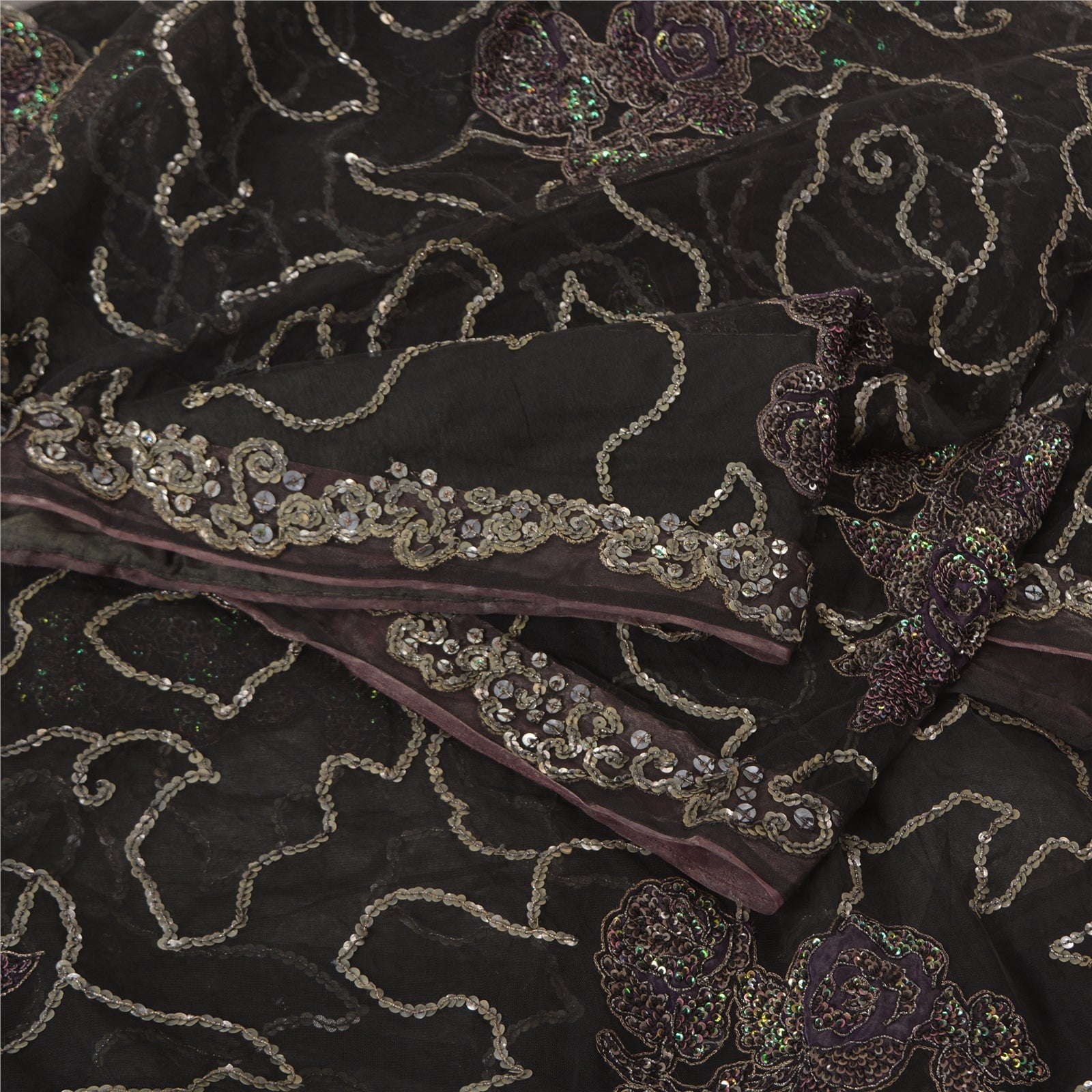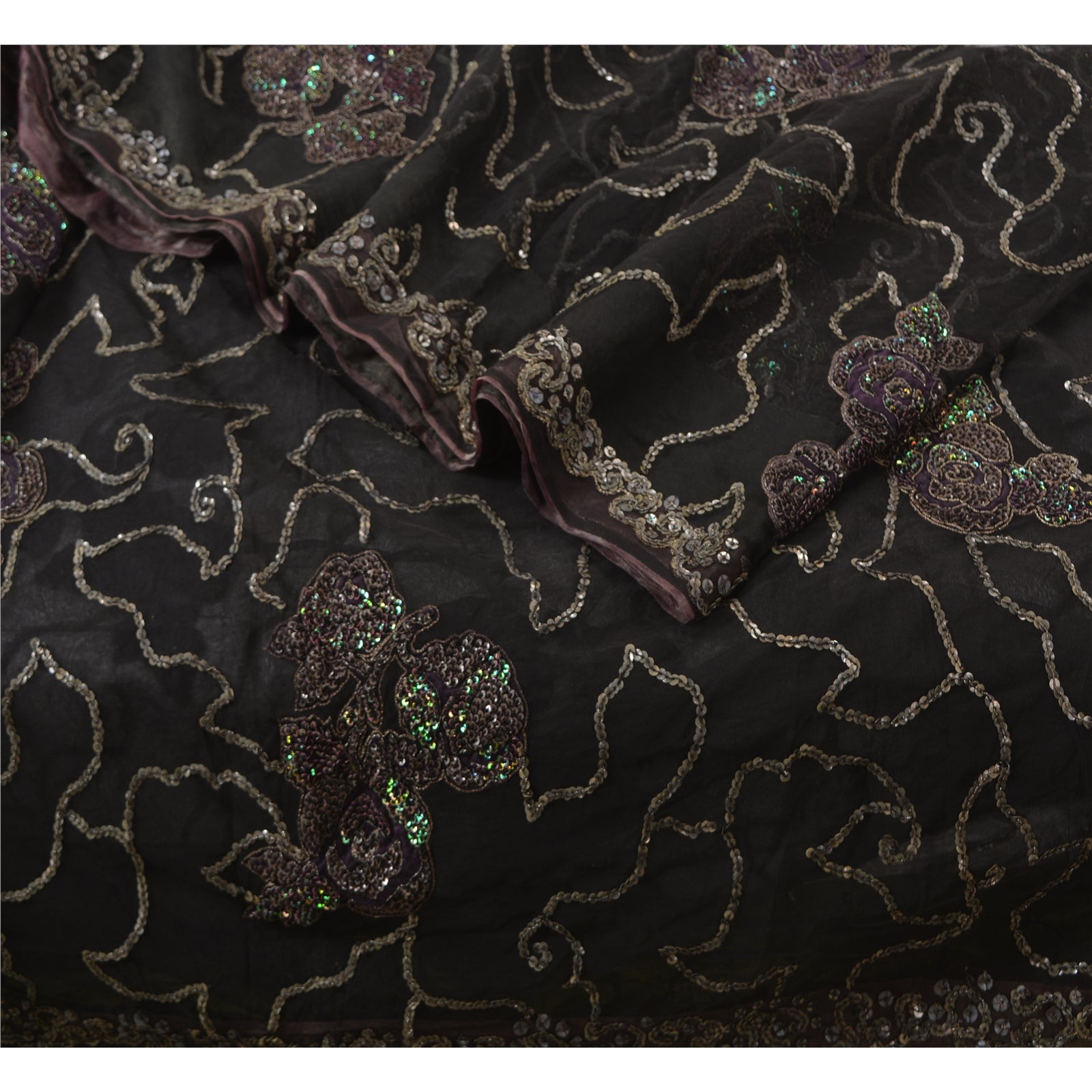 Sanskriti Vintage Black Sarees Net Mesh Hand Beaded Ethnic Sari Craft Sustainable Fabric