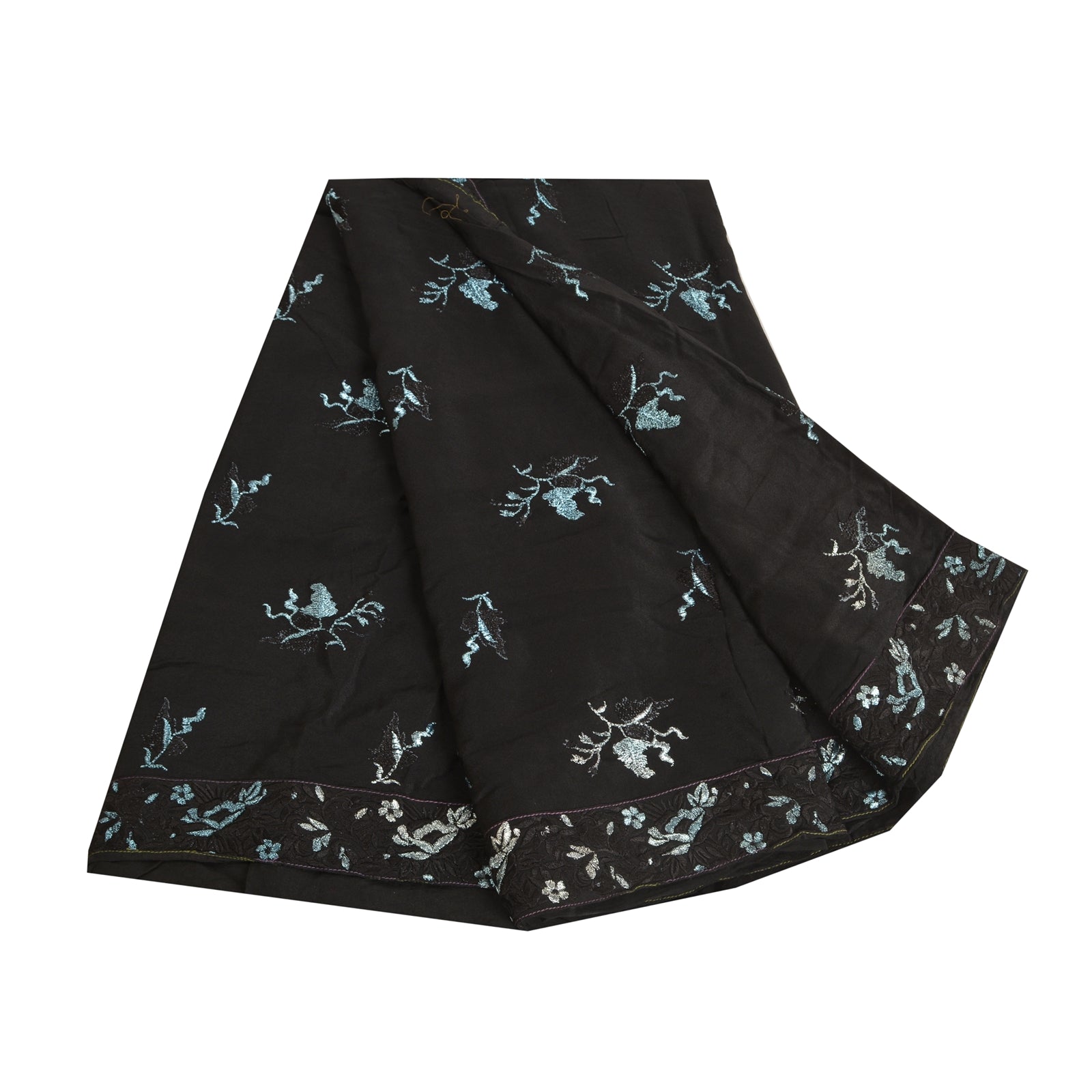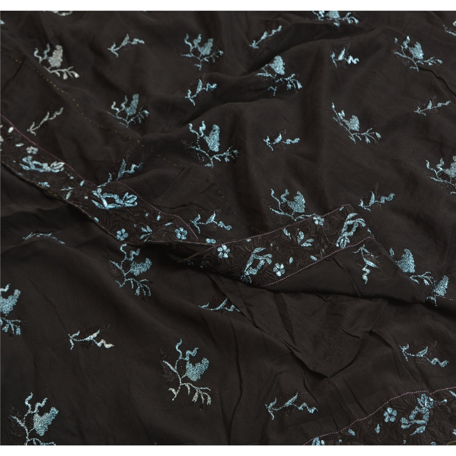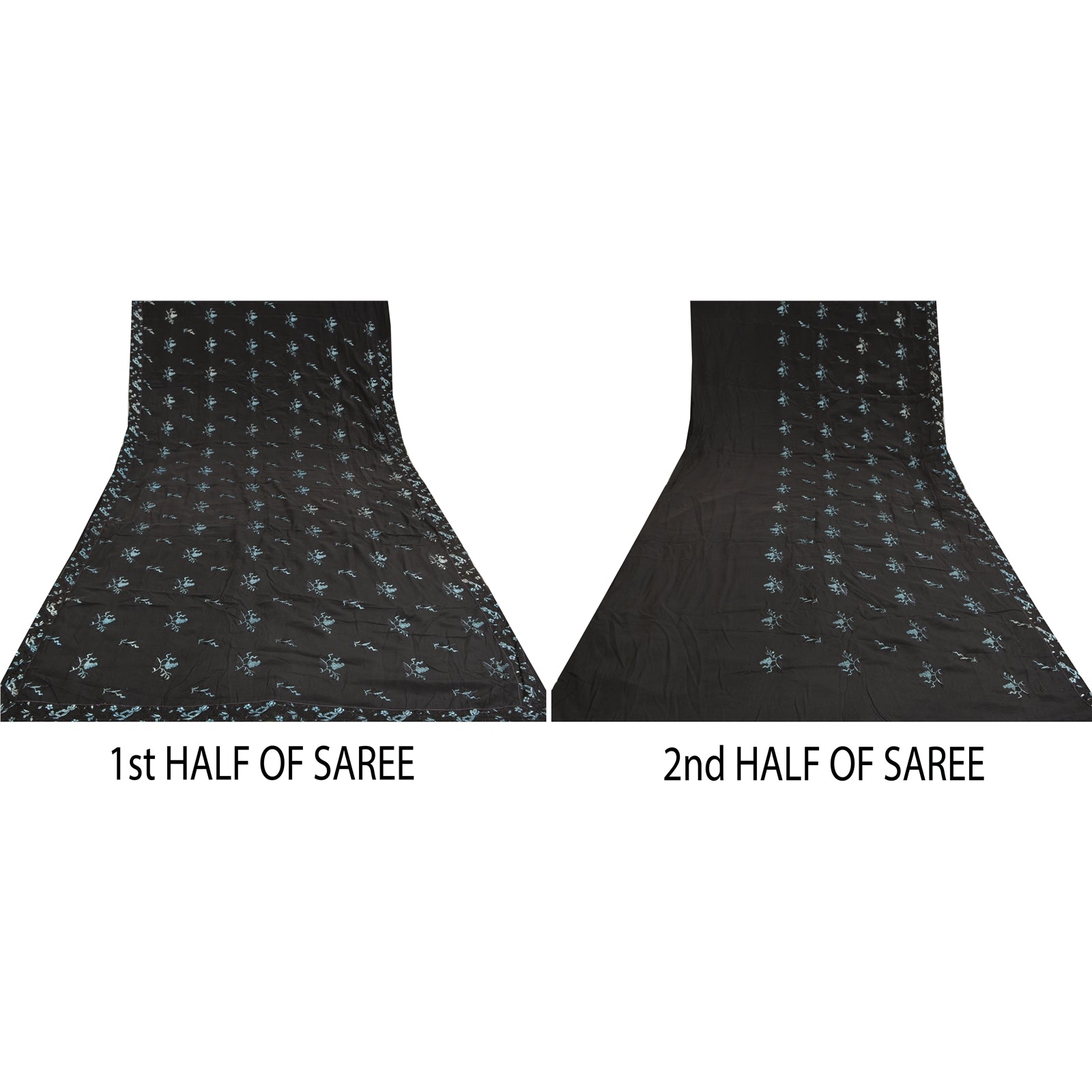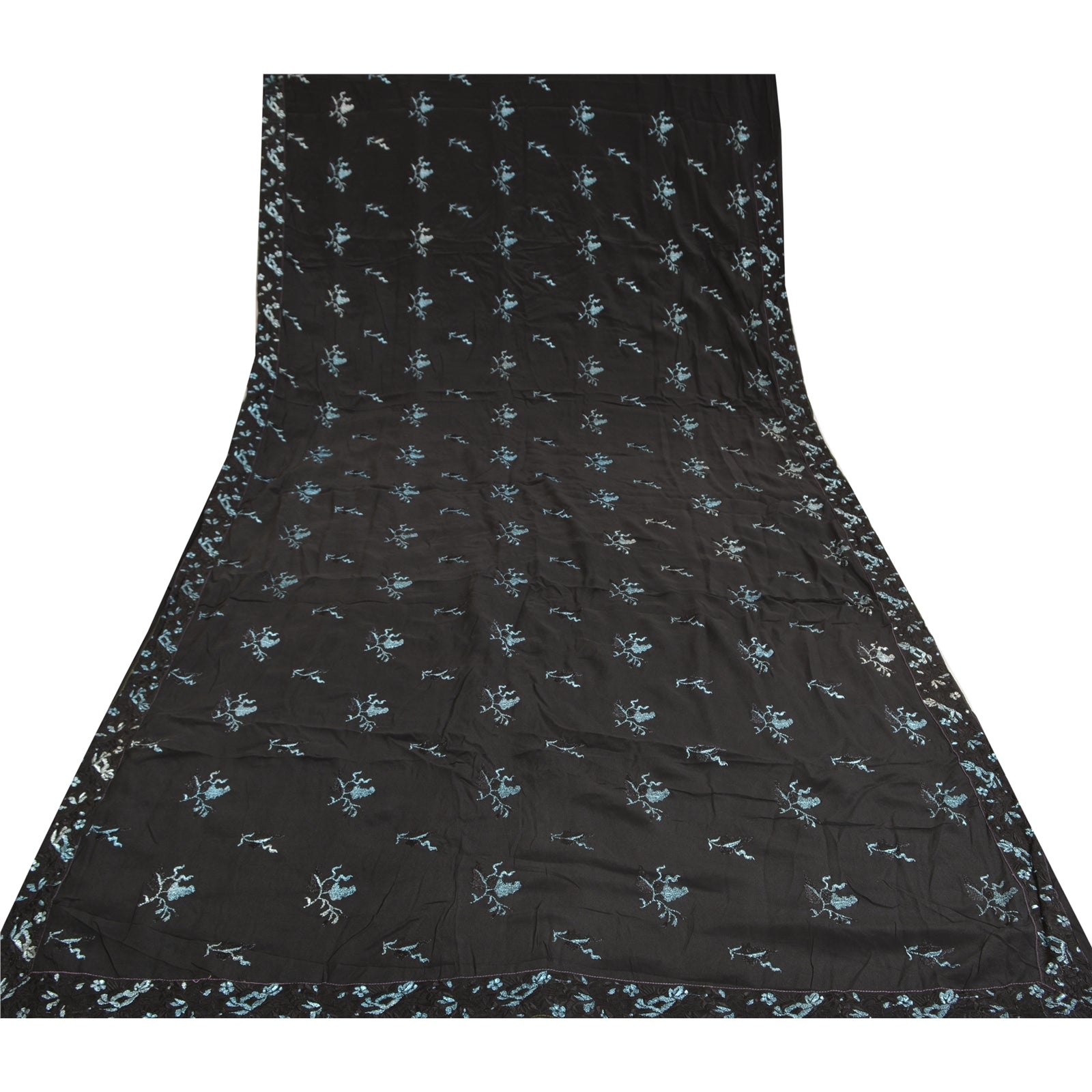 Sanskriti Vintage Black Sarees Pure Crepe Silk Embroidered Sari Craft Sustainable Fabric