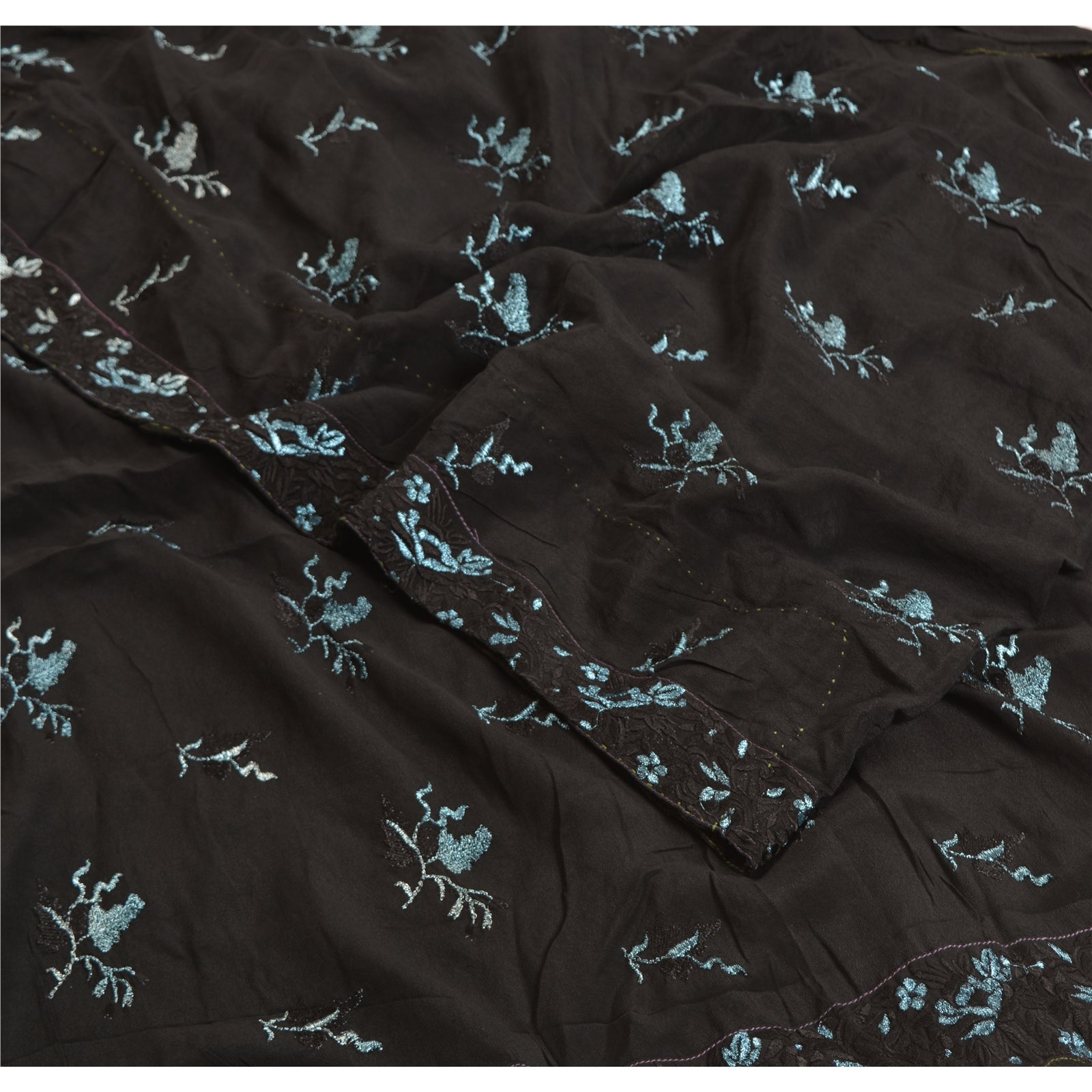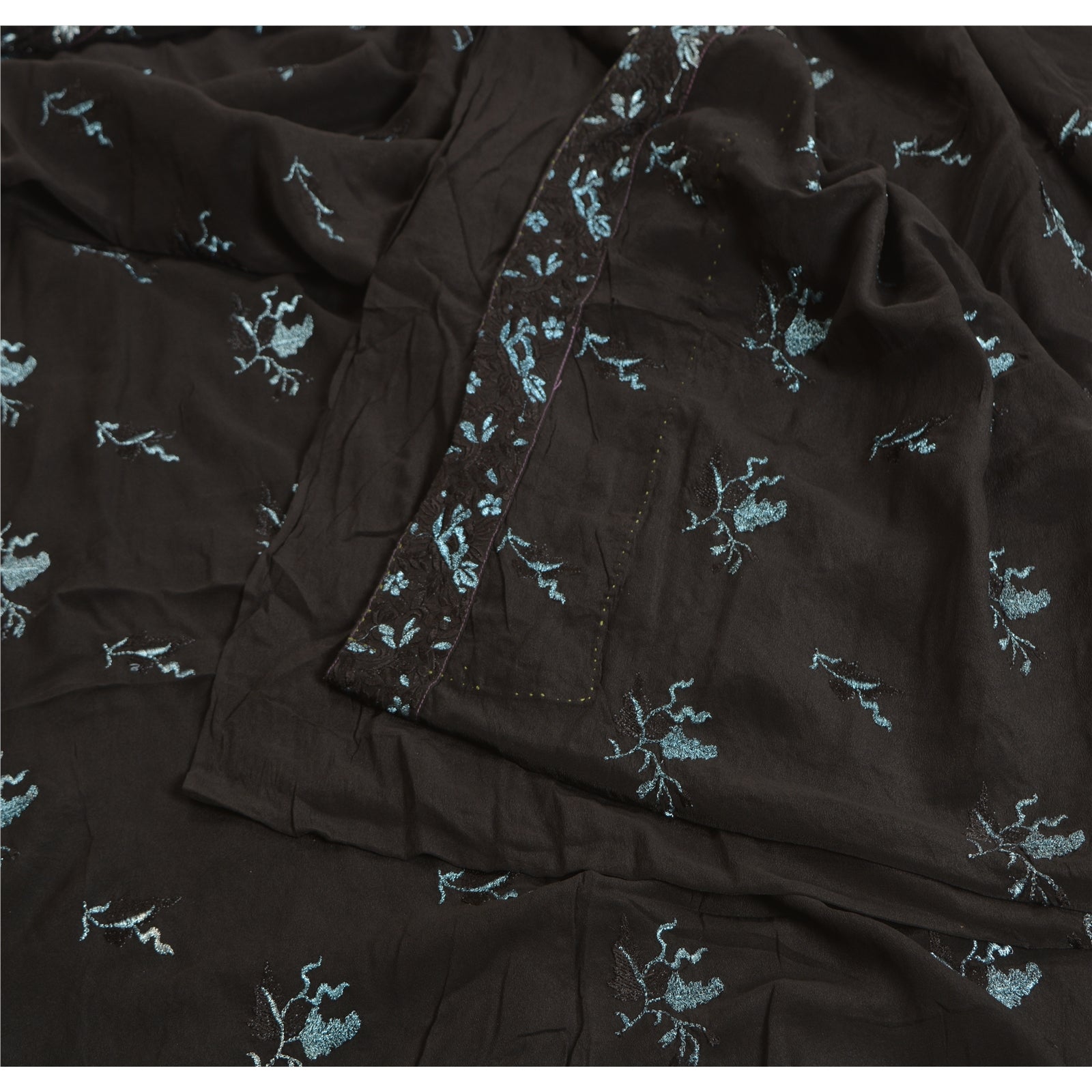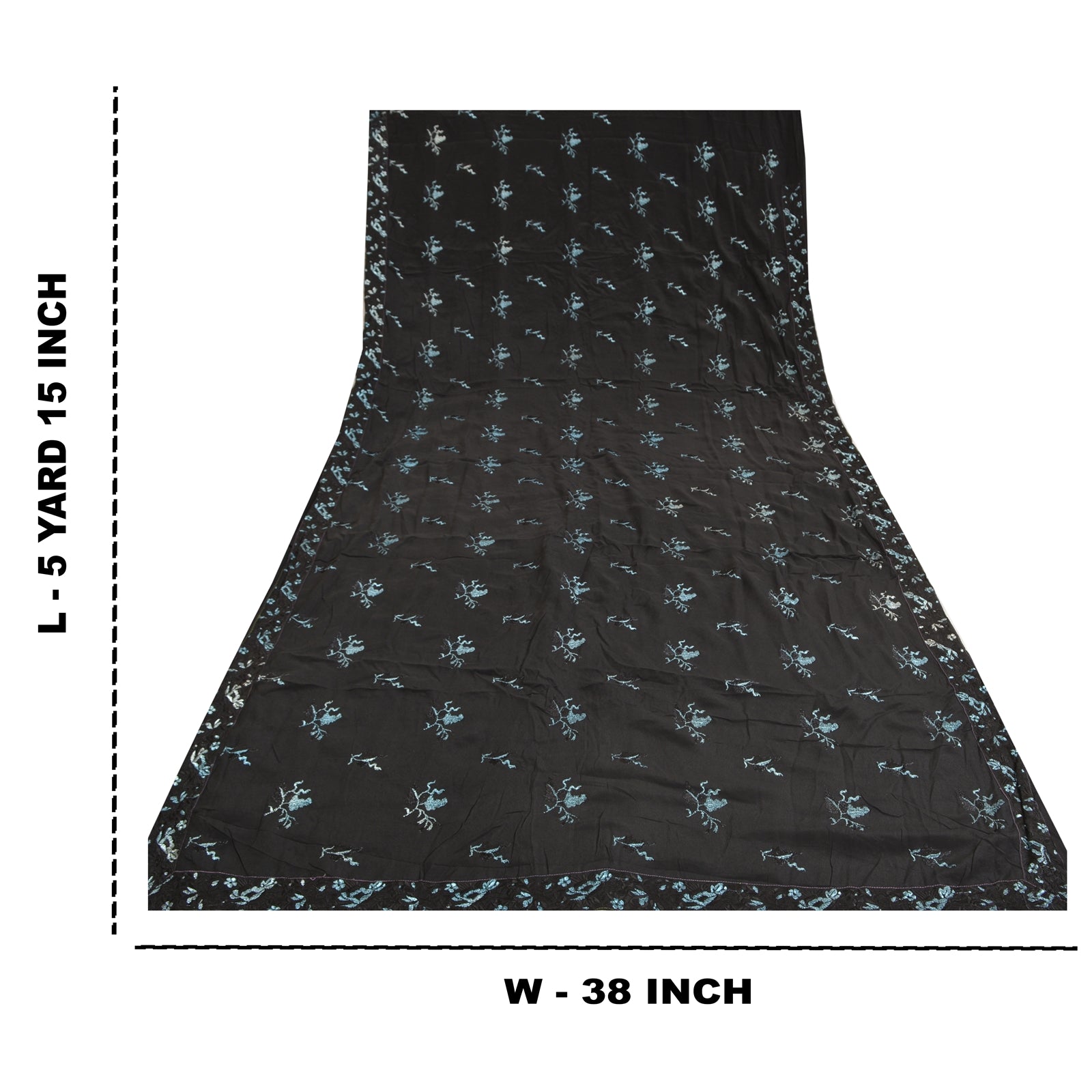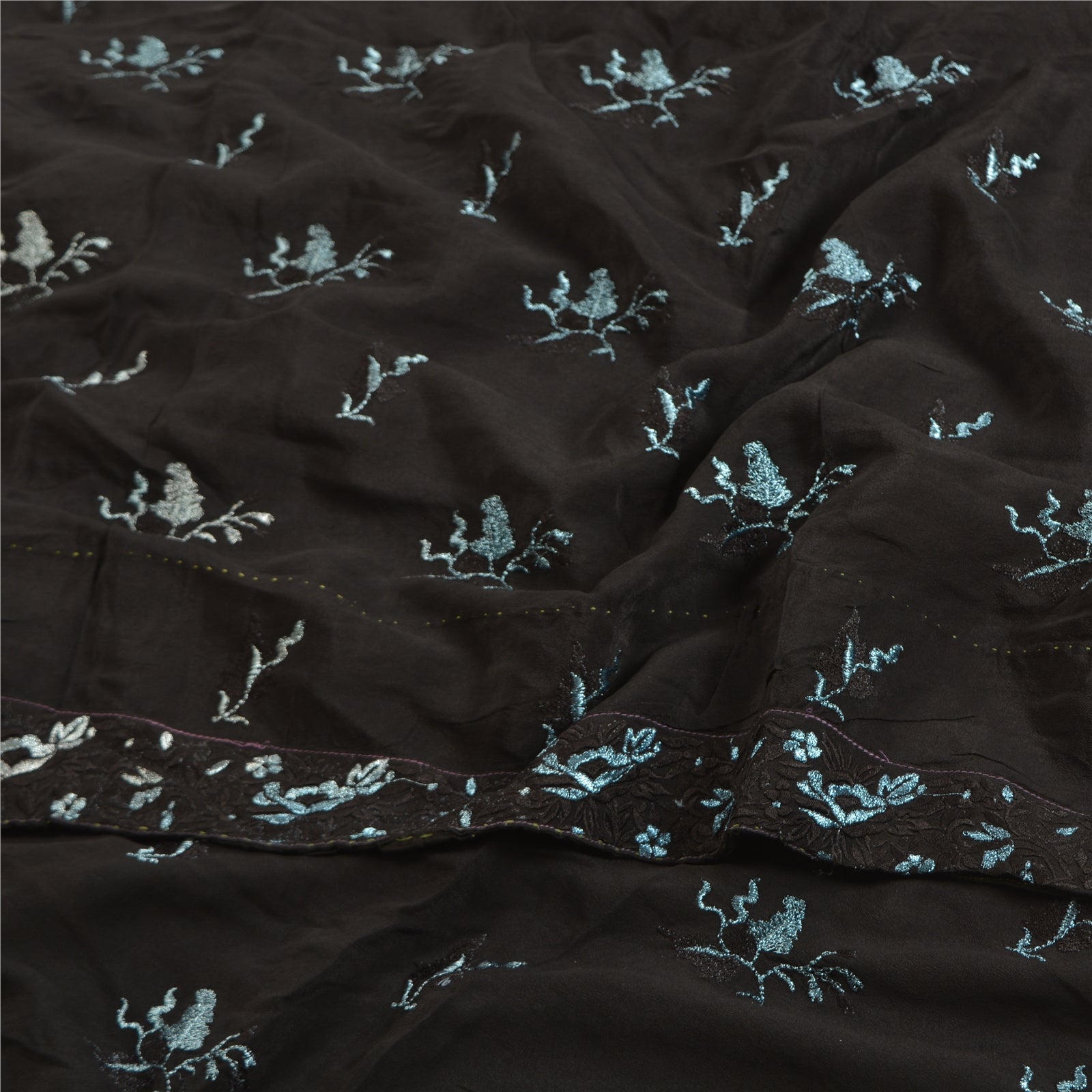 Sanskriti Vintage Black Sarees Pure Crepe Silk Embroidered Sari Craft Sustainable Fabric