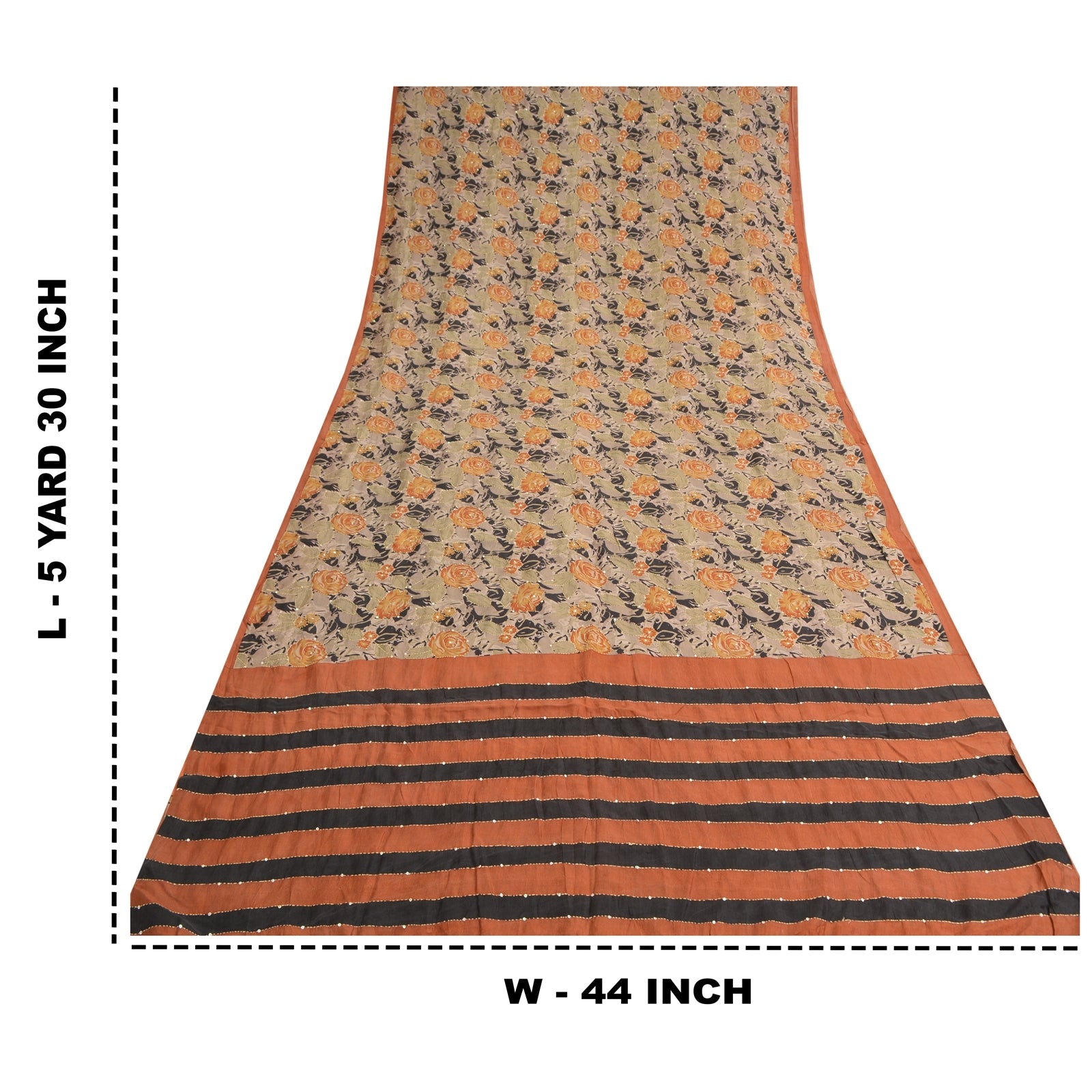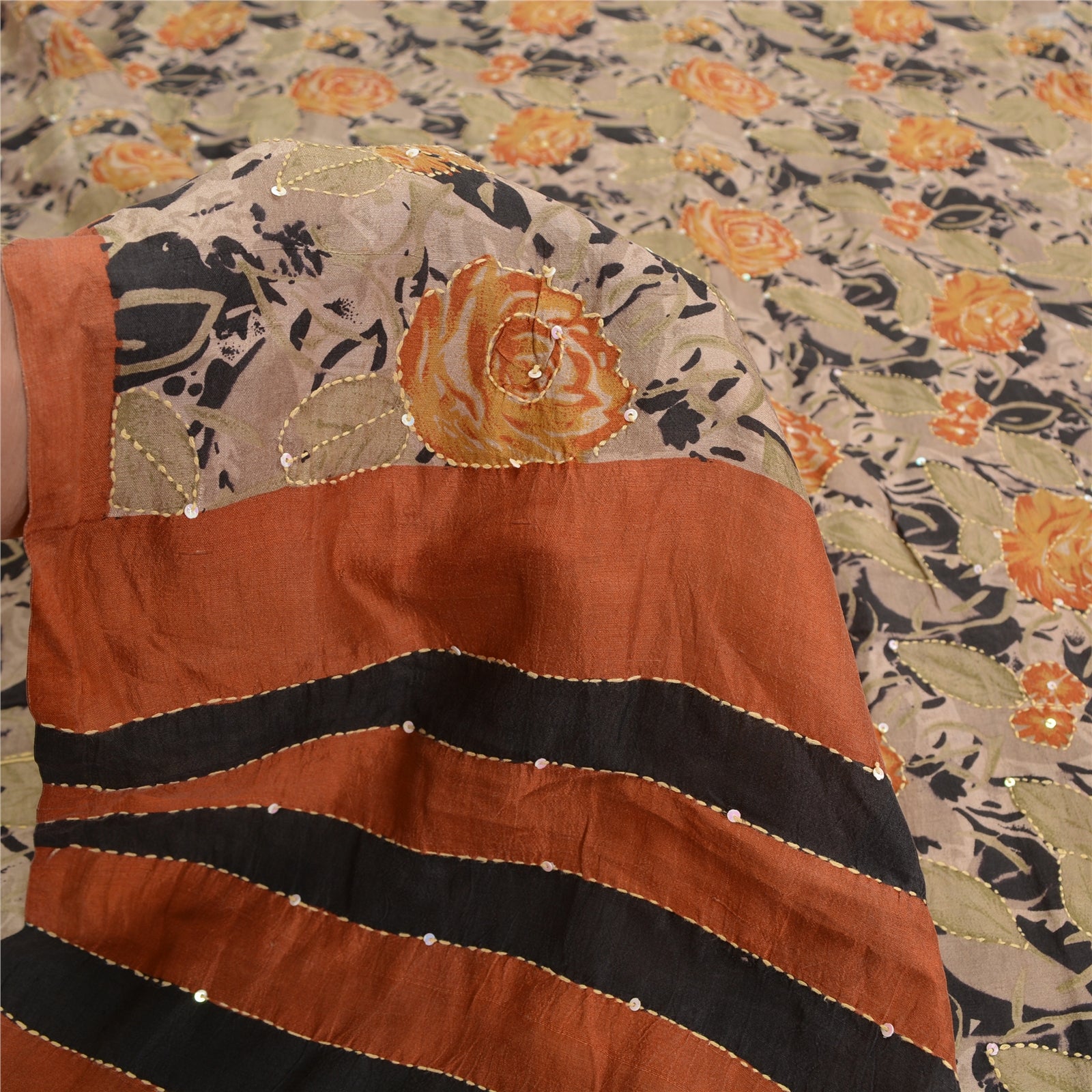 'THE ITEM COLOR OR SHADE MAY BE DARKER OR LIGHTER THAN THE PICTURE.' Beautiful Brown & Orange Colored 100% Pure Silk Hand Embroidered Printed Sari/Sustainable Fabric. Pallu & Border features Traditional embroidered running stitched thread (Kantha) & sequins work with printed pattern . You can see similar thread floral design with printed floral pattern in center portion of saree. This item can be used for various crafting ideas too. Use it for dress designing, as a throw, as window dressing, upholstery, table linen and much more. Let your creative juices flow. International buyers please note: Import duties, taxes, and charges are not included in the item price or postage cost. These charges are the buyer's responsibility. Please check with your country's customs office to determine what these additional costs will be prior to bidding or buying. Buyer will pay custom duty/tax. It is calculated and charged differently by every country. As a seller I do not have any control over it. VAT or sales tax is calculated by the platform at the time of checkout. Customs charge is payable at the time of delivery.