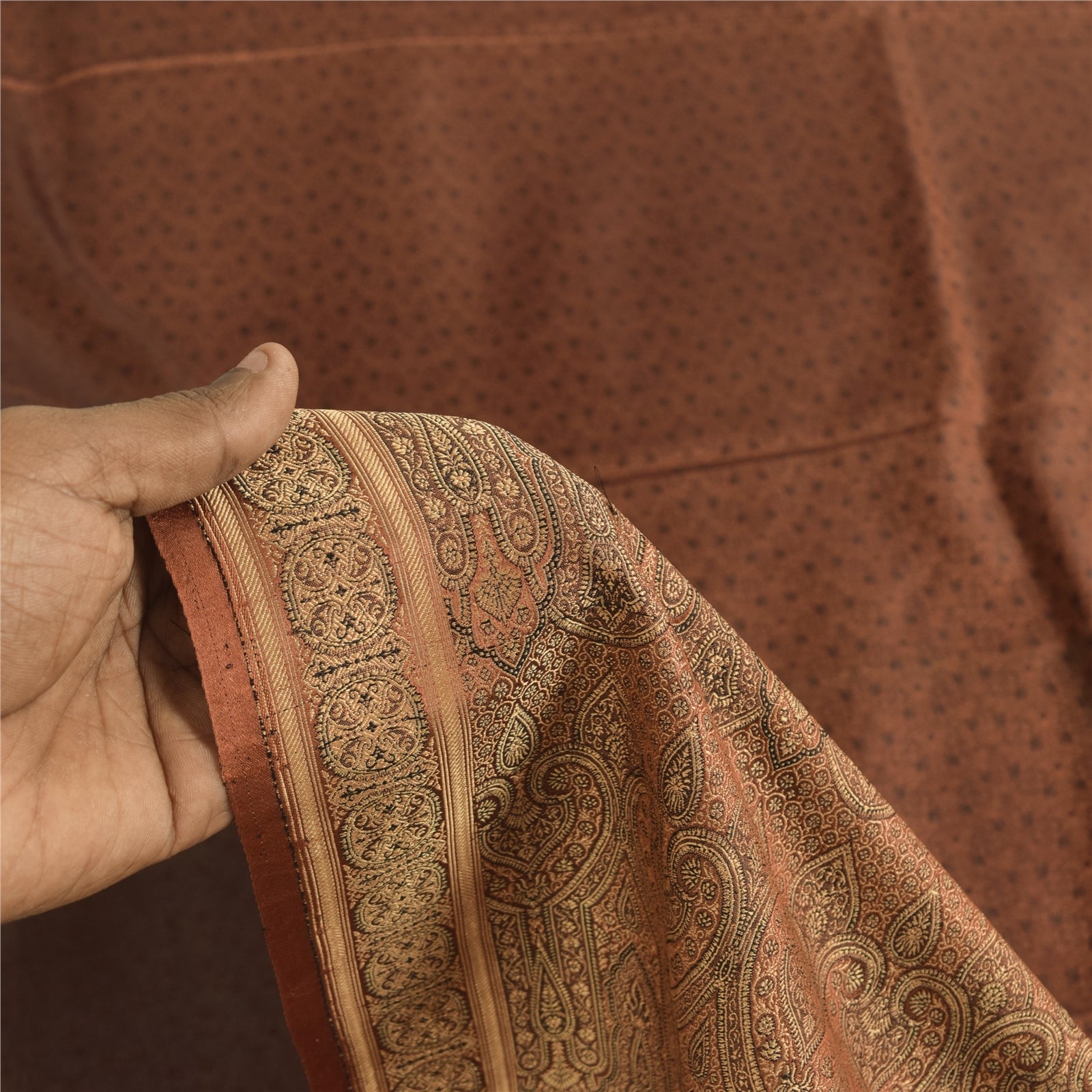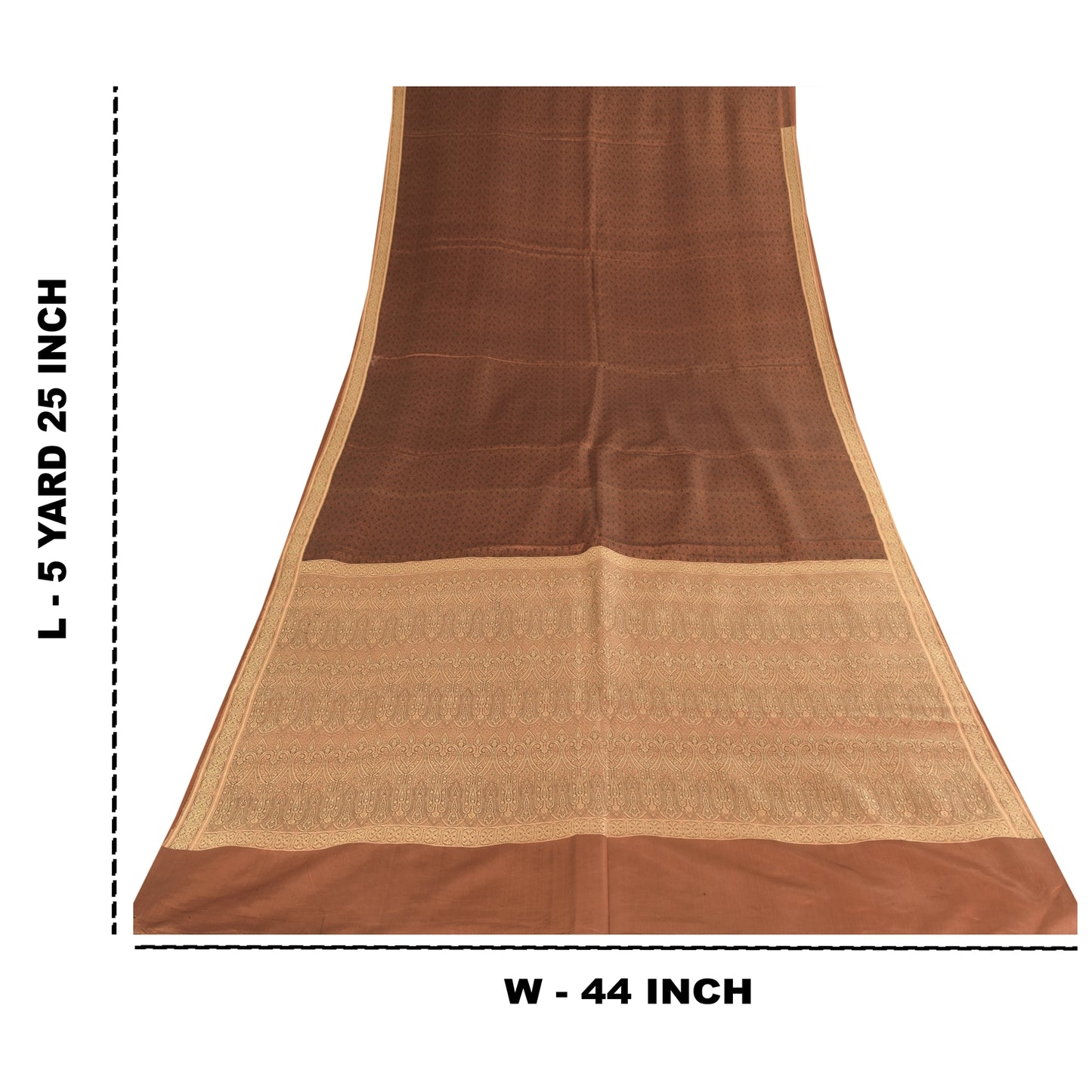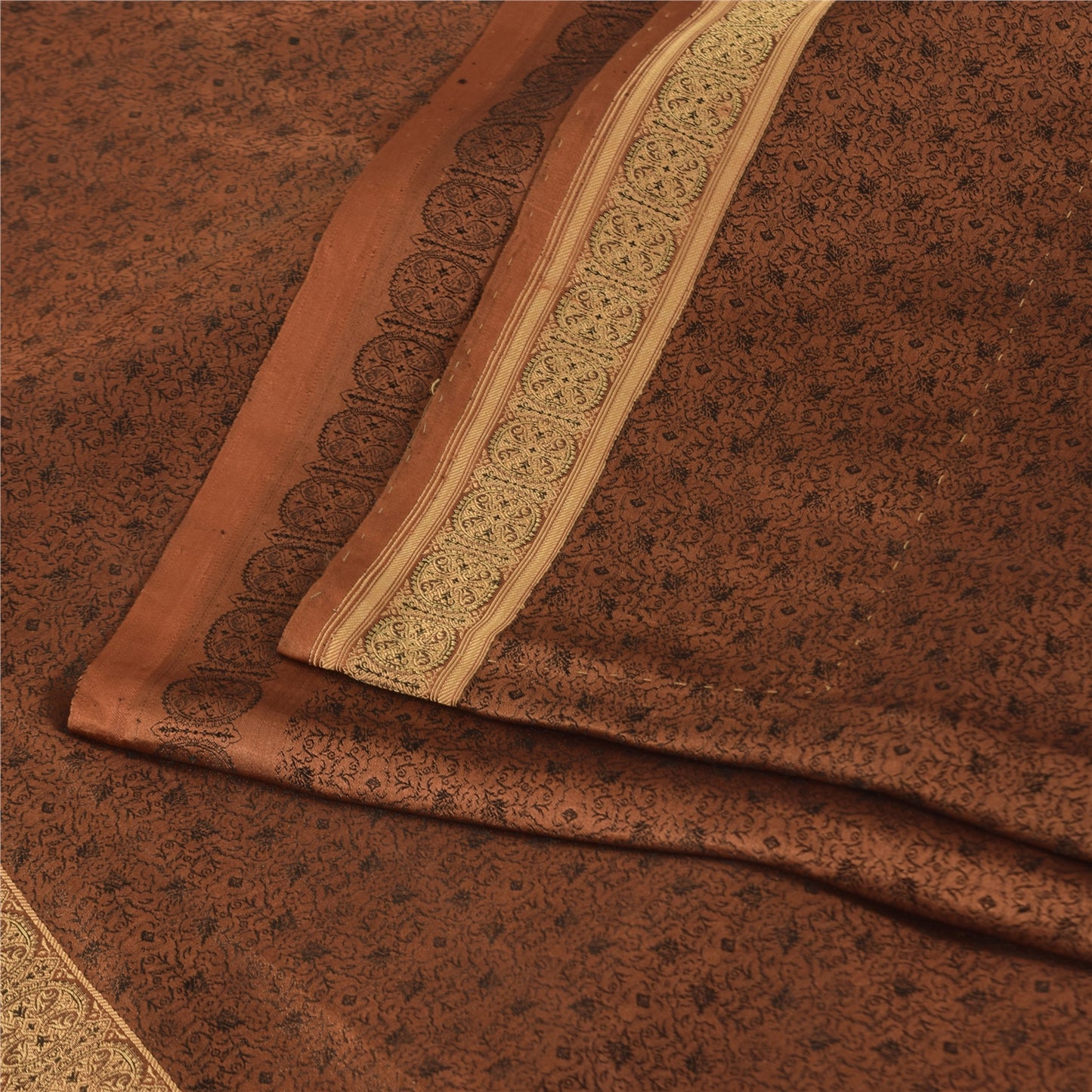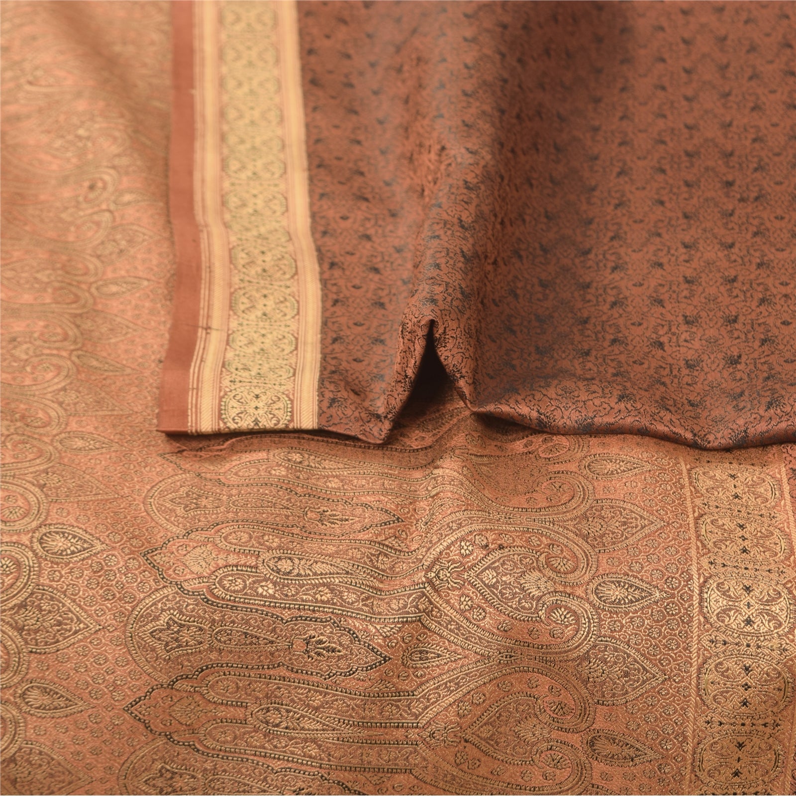 Sanskriti Vintage Brown Sarees Pure Silk Brocade/Banarasi Woven Sari 5+yd Sustainable Fabric