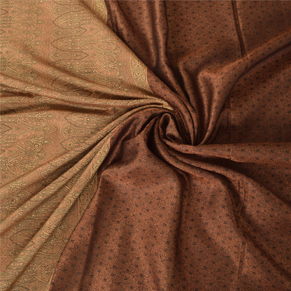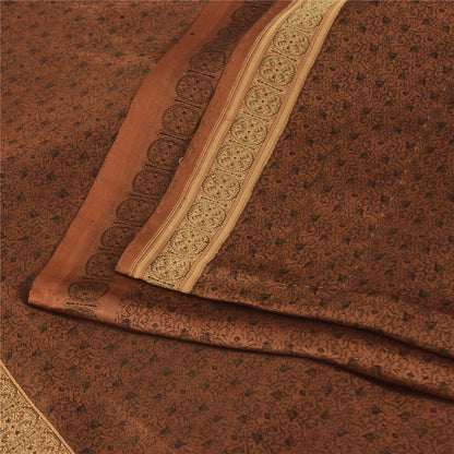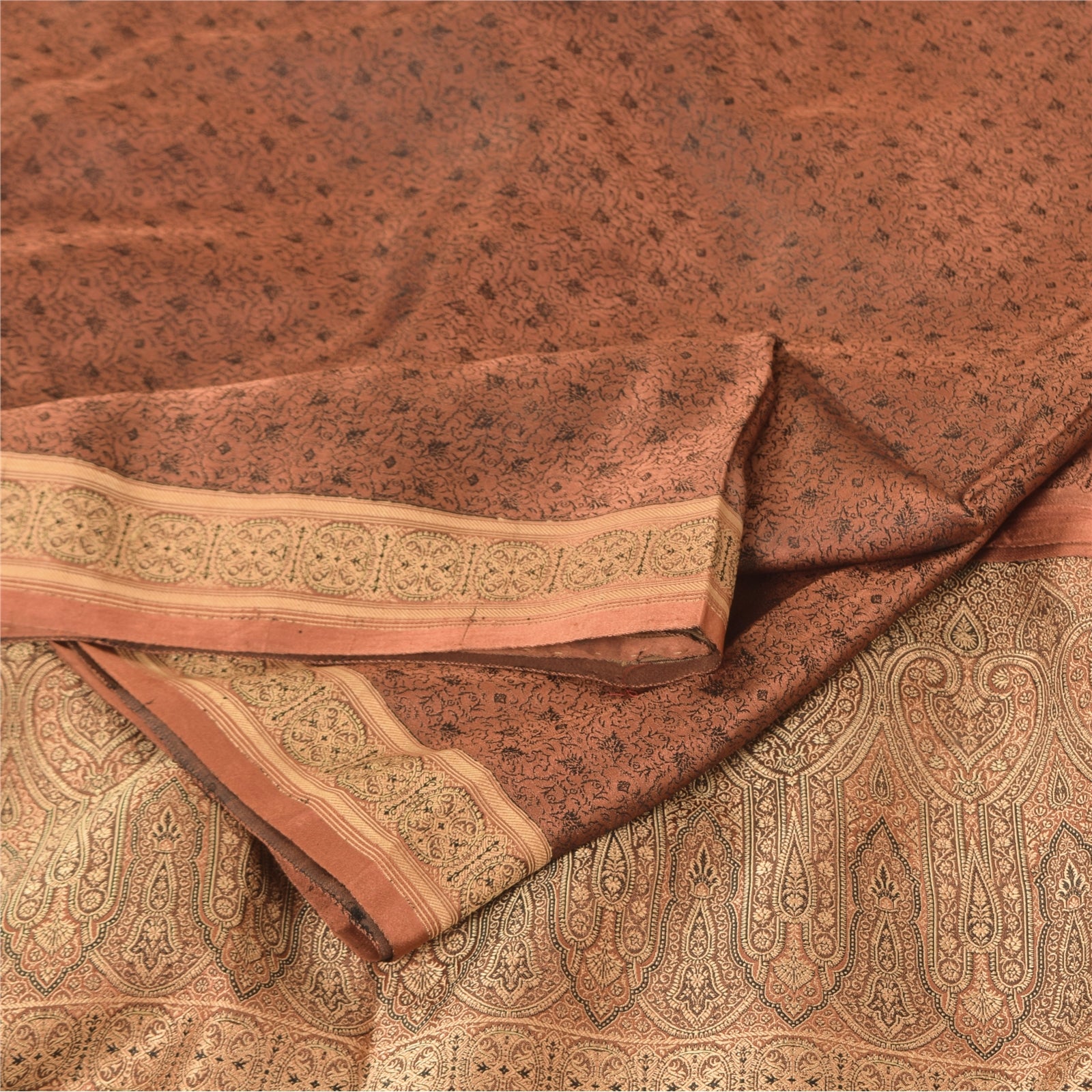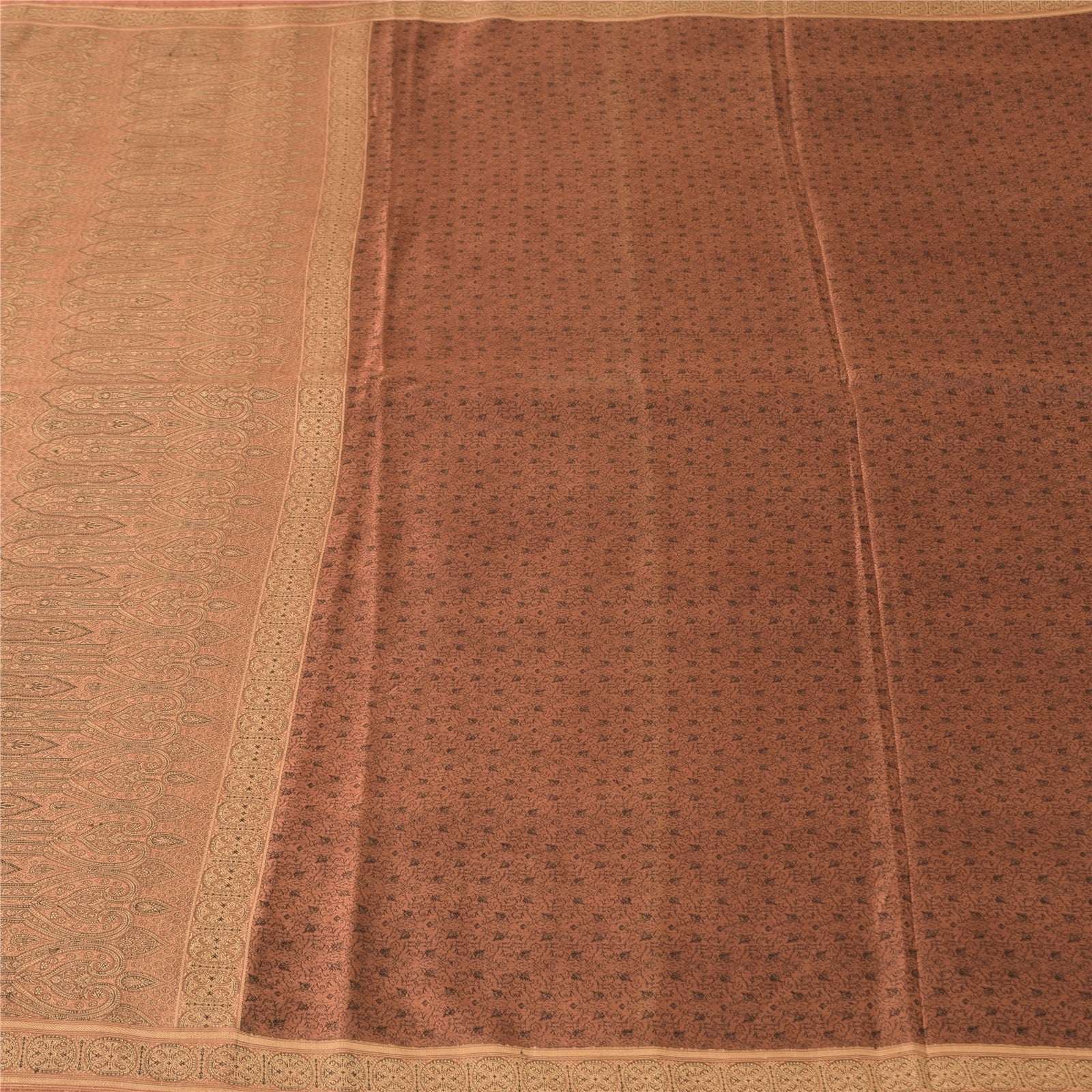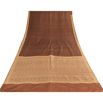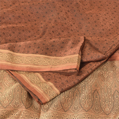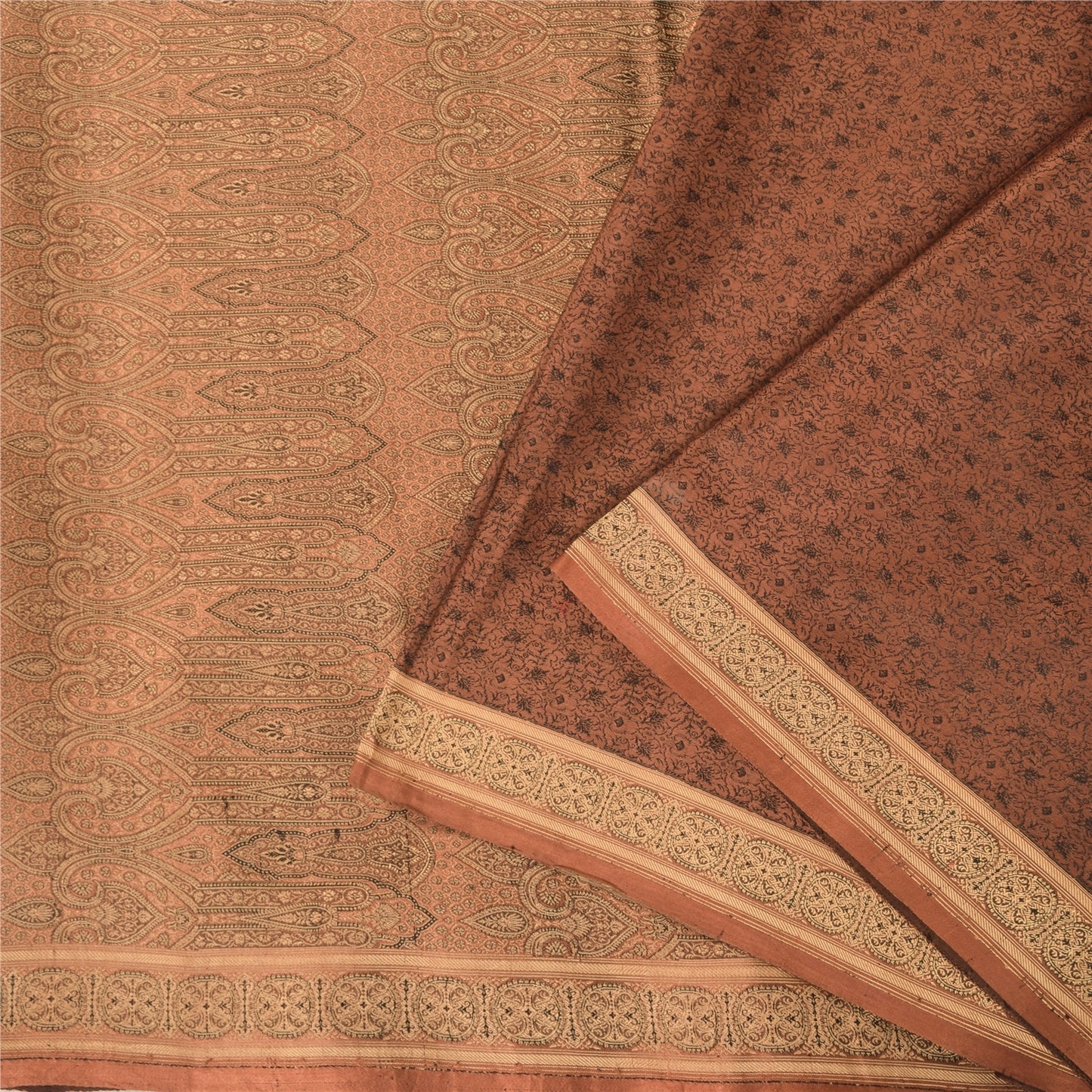 Sanskriti Vintage Brown Sarees Pure Silk Brocade/Banarasi Woven Sari 5+yd Sustainable Fabric