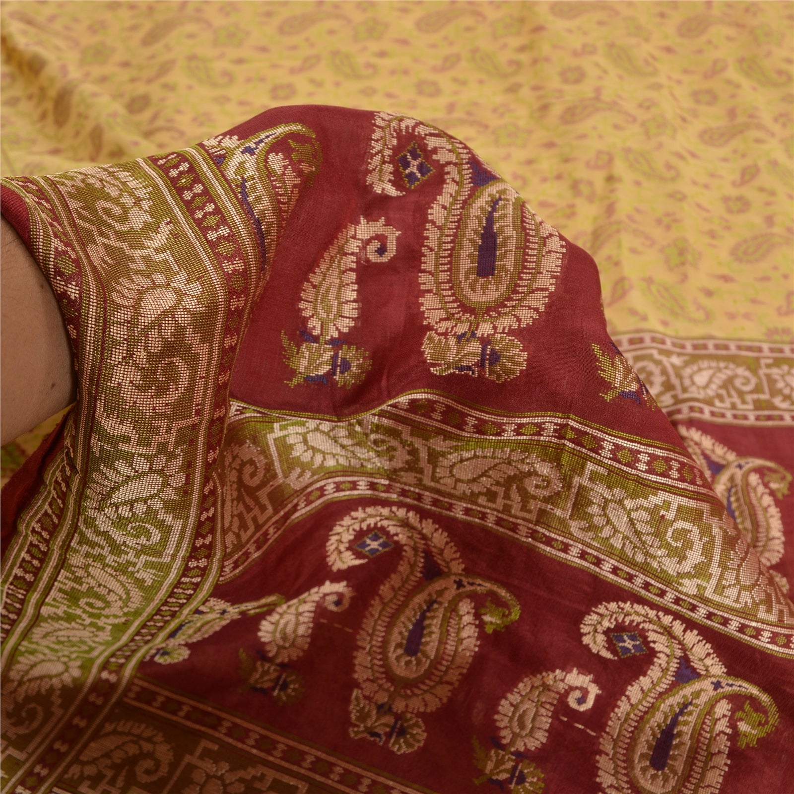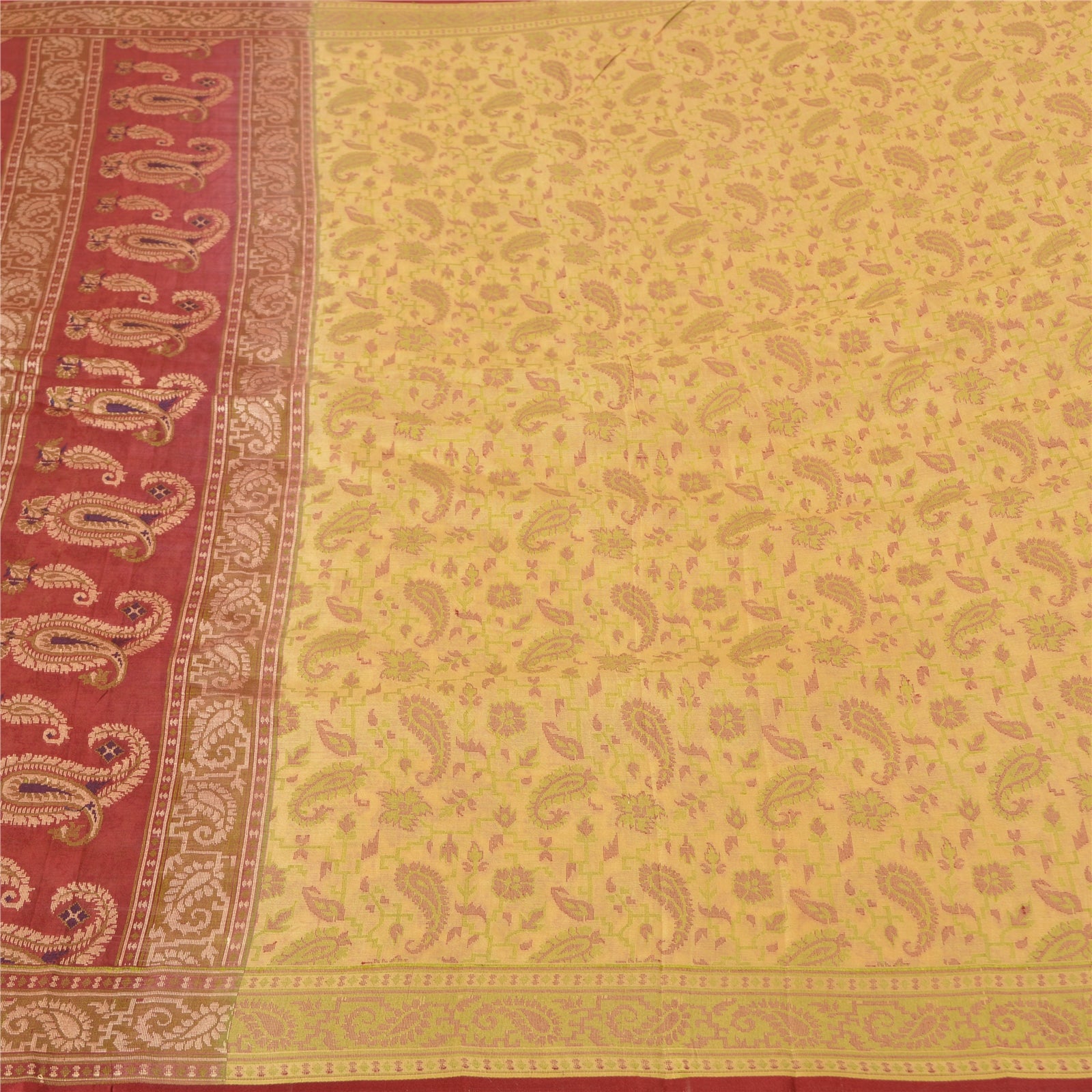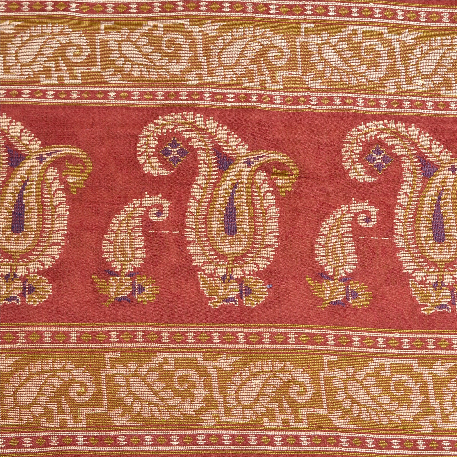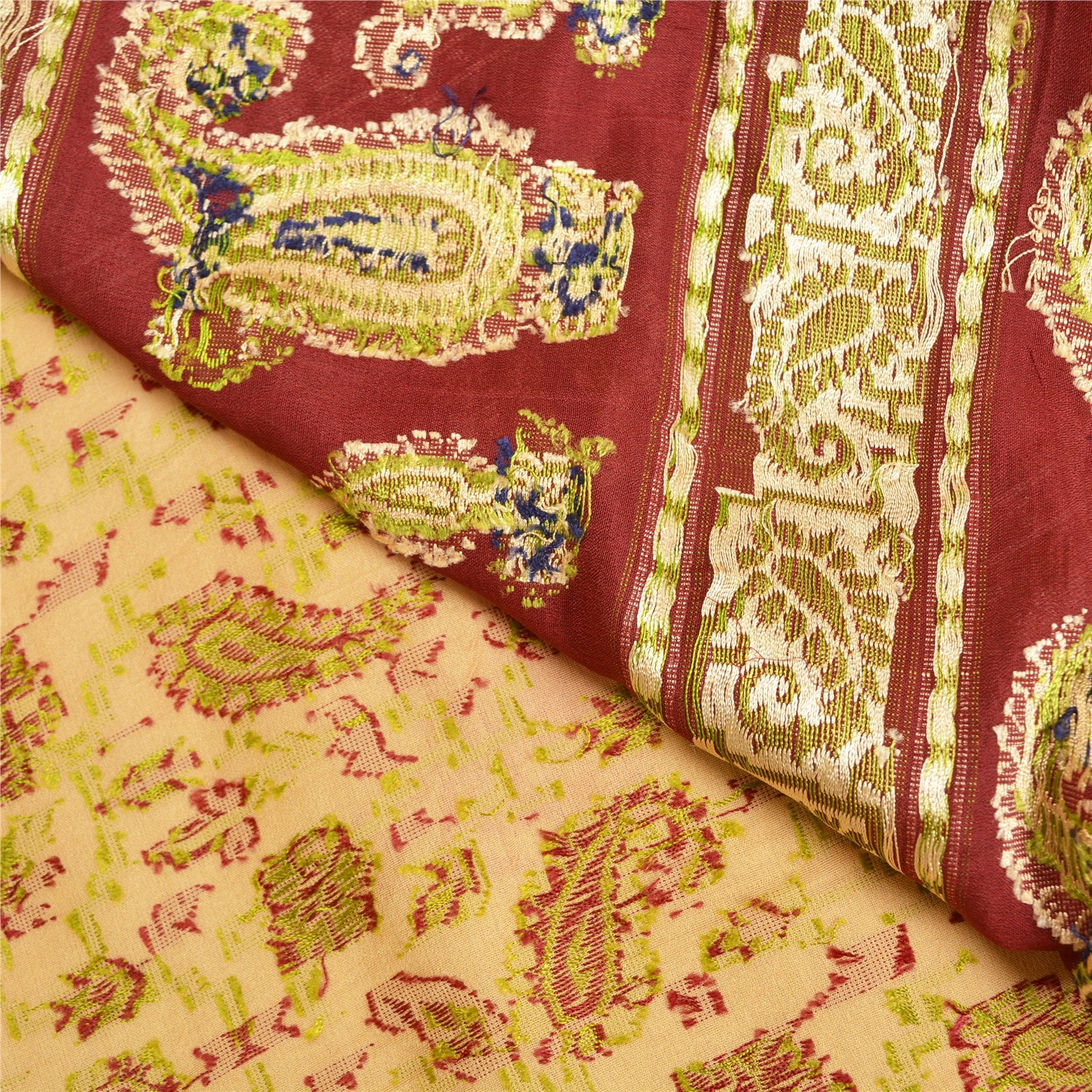 'THE ITEM COLOR OR SHADE MAY BE DARKER OR LIGHTER THAN THE PICTURE.' Beautiful dark red & cream colored pure silk woven sari/Sustainable Fabric. Pallu & border has multi color woven thread work with paisley & floral design. The center of the saree has similar woven floral design. This saree can be used for various crafting ideas too. Use it for dress designing, as a throw, as window dressing, upholstery, table linen and much more. Let your creative juices flow. 'International buyers please note: Import duties, taxes, and charges are not included in the item price or postage cost. These charges are the buyer's responsibility. Please check with your country's customs office to determine what these additional costs will be prior to bidding or buying. Buyer will pay custom duty/tax. It is calculated and charged differently by every country. As a seller I do not have any control over it. VAT or sales tax is calculated by the platform at the time of checkout. Customs charge is payable at the time of delivery.'