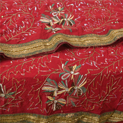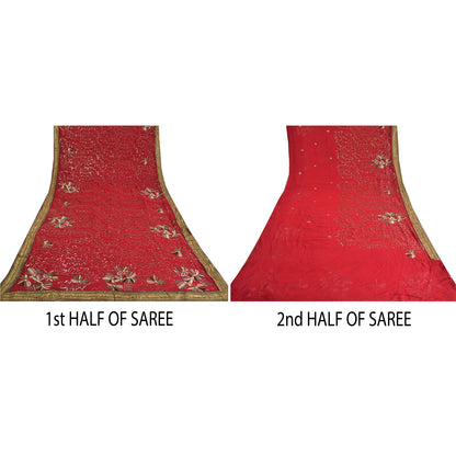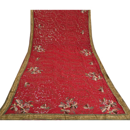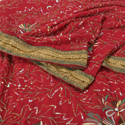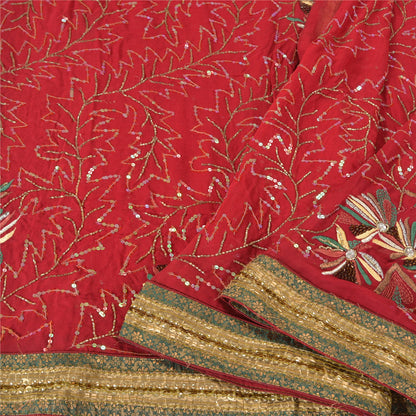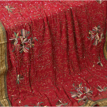 Sanskriti Vintage Dark Red Indian Sarees Blend Georgette Hand Beaded Sustainable Fabric Sari