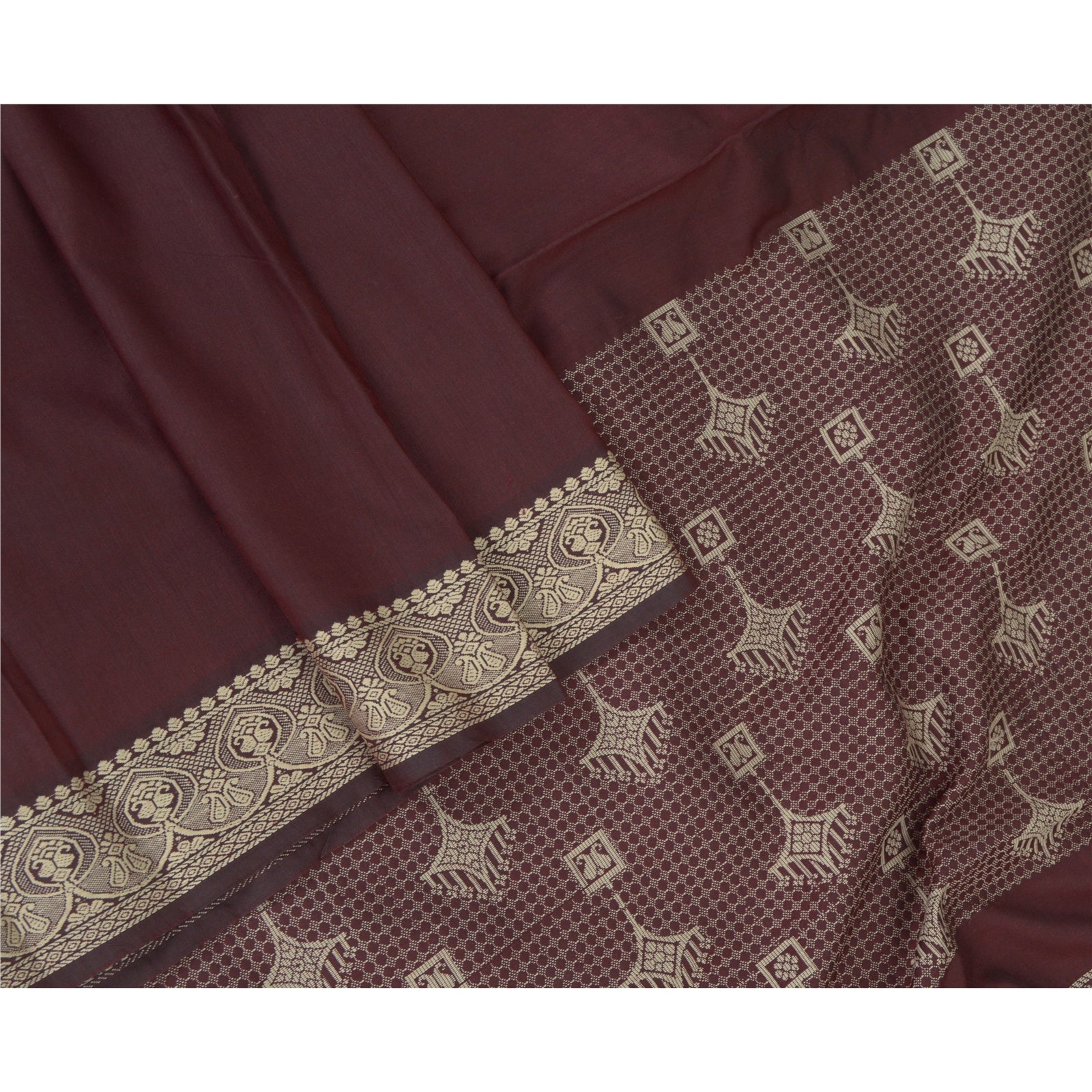 Sanskriti Vintage Dupatta Long Stole Art Silk Dark Red Woven Scarves Shawl Veil