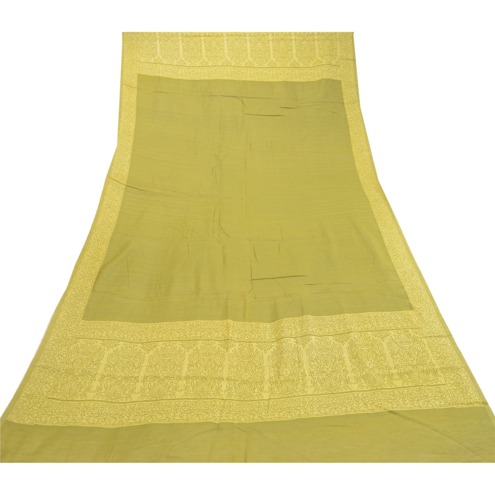 Sanskriti Vintage Dupatta Long Stole Cotton Silk Green Veil Woven Scarves