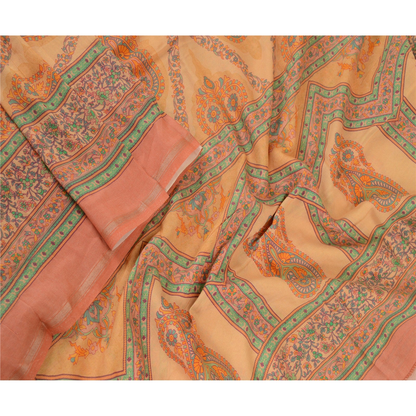 Sanskriti Vintage Dupatta Long Stole Cotton Silk Peach Printed Wrap Soft Scarves