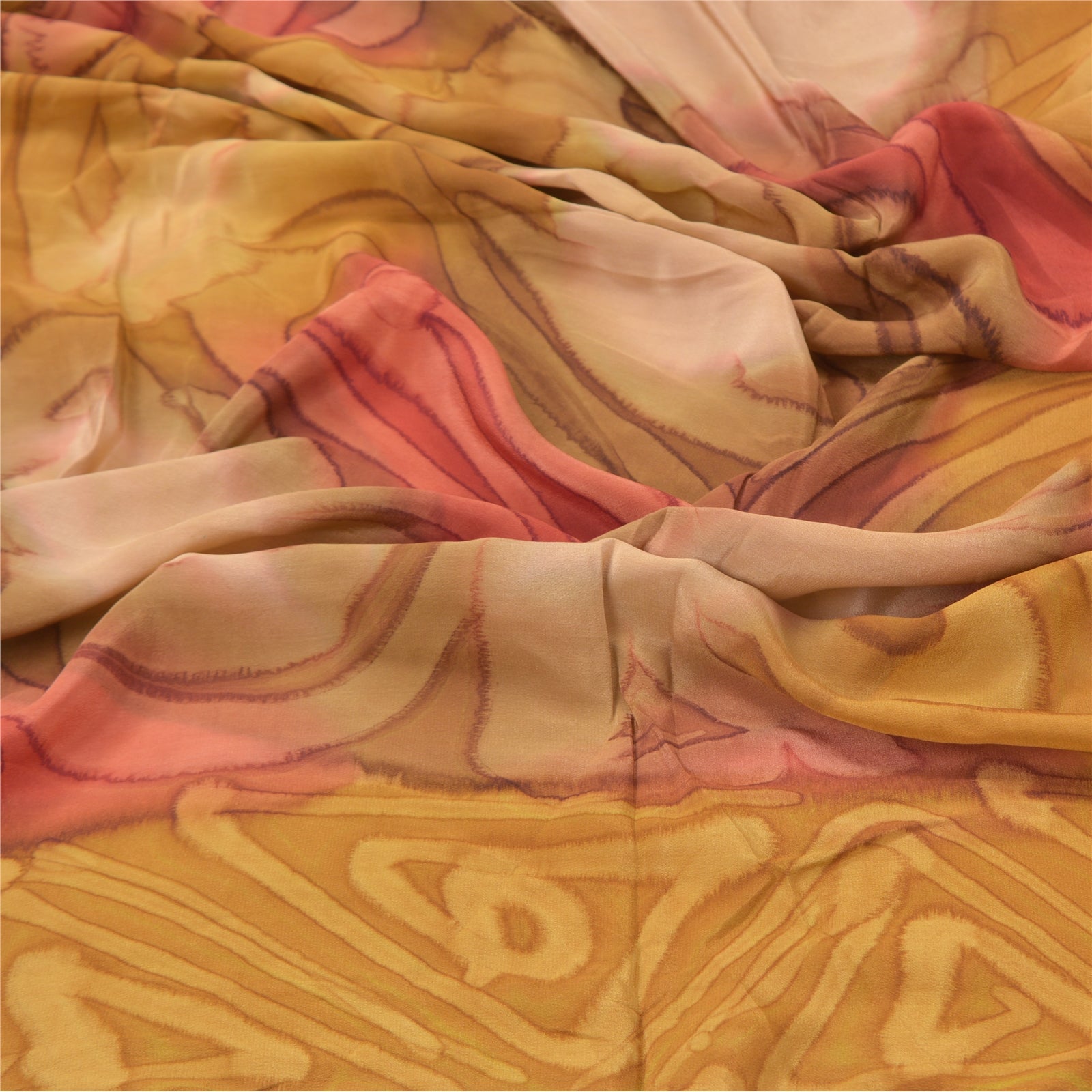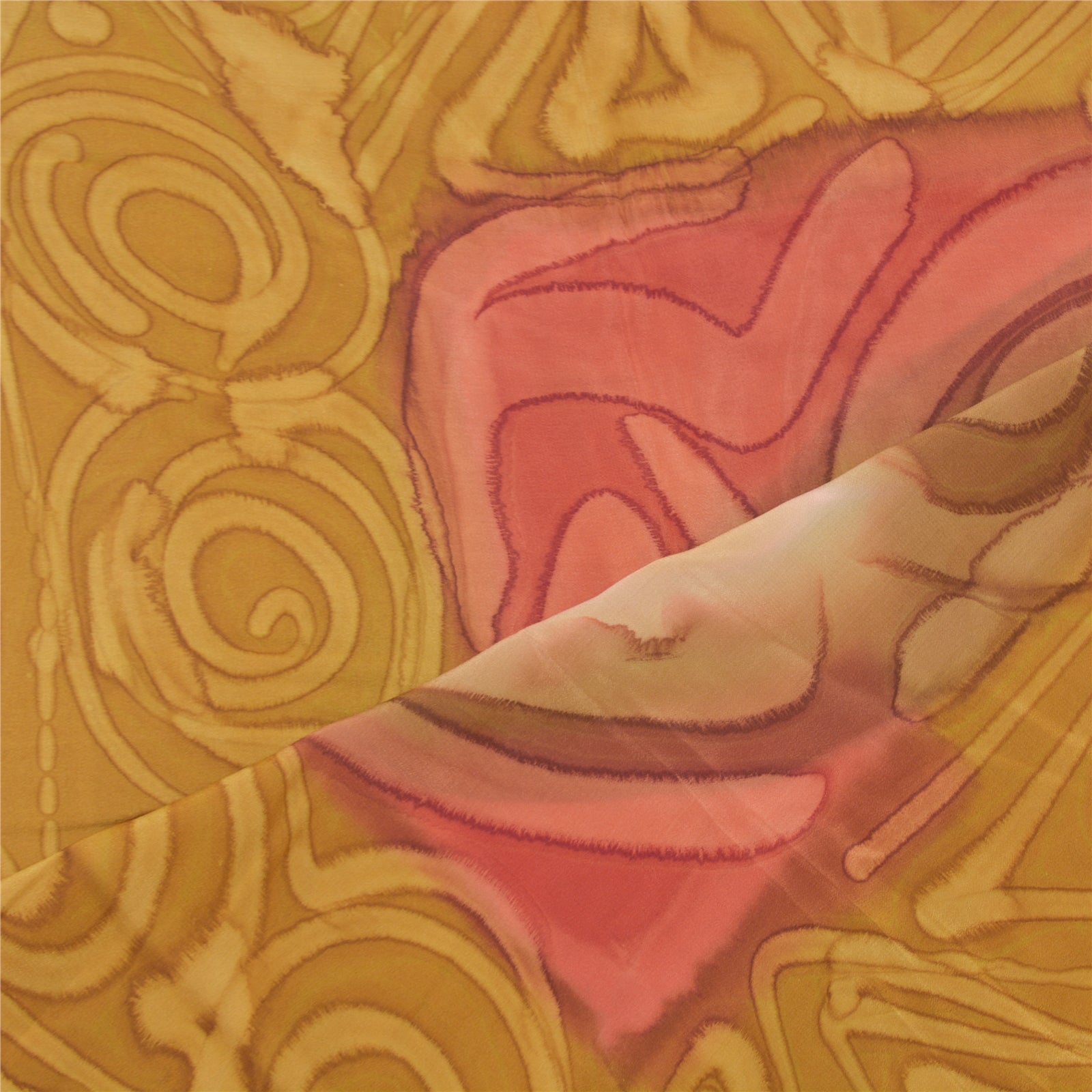 Sanskriti Vintage Dupatta Long Stole Crepe Silk Mustard Soft Printed Scarves