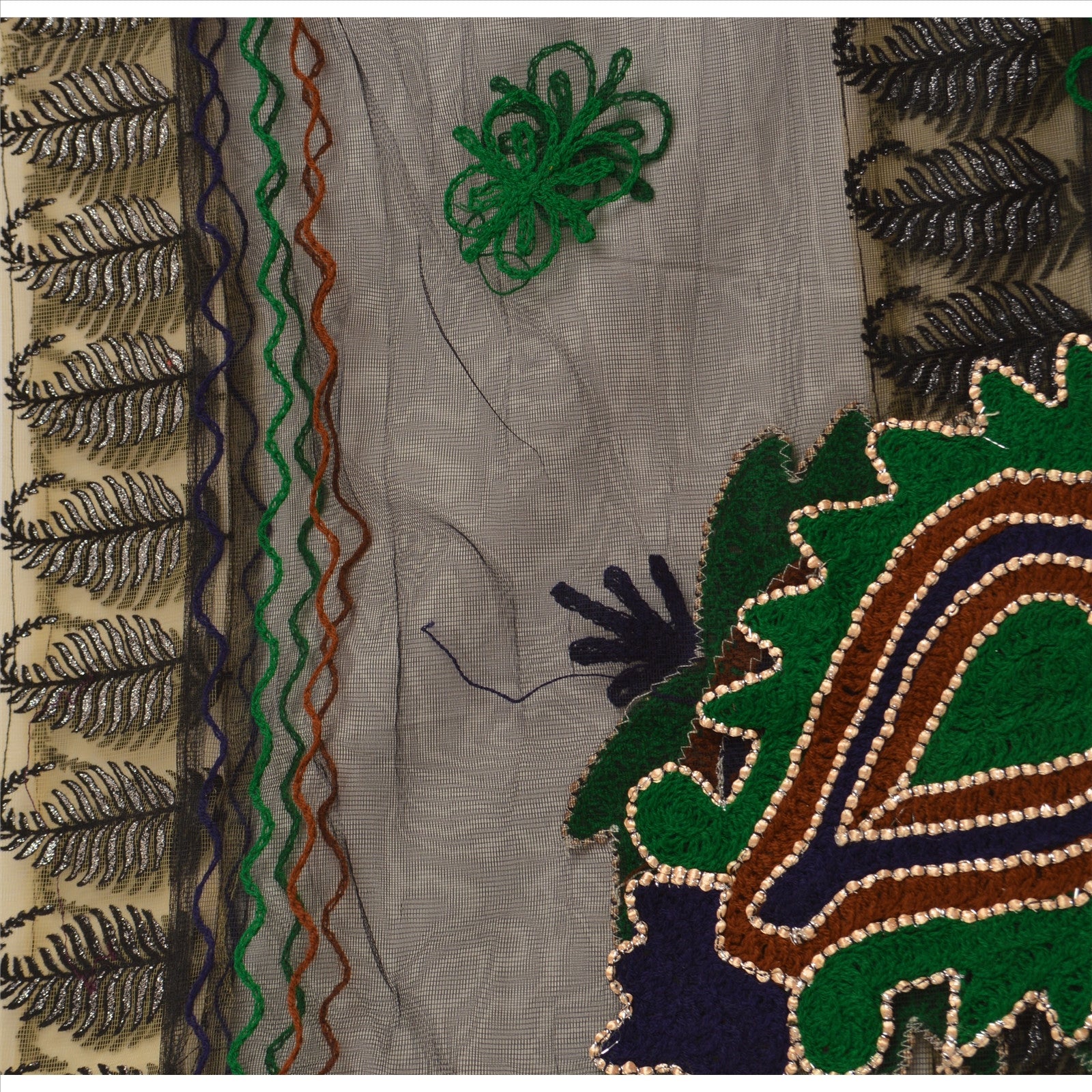 Sanskriti Vintage Dupatta Long Stole Net Mesh Hijab Hand Embroidered Scarves