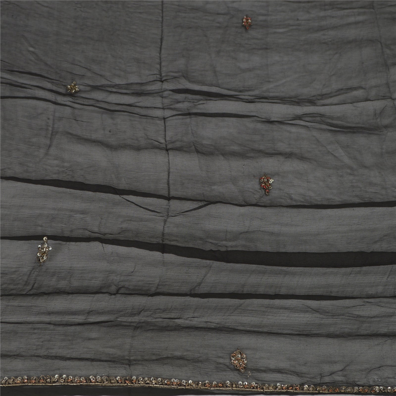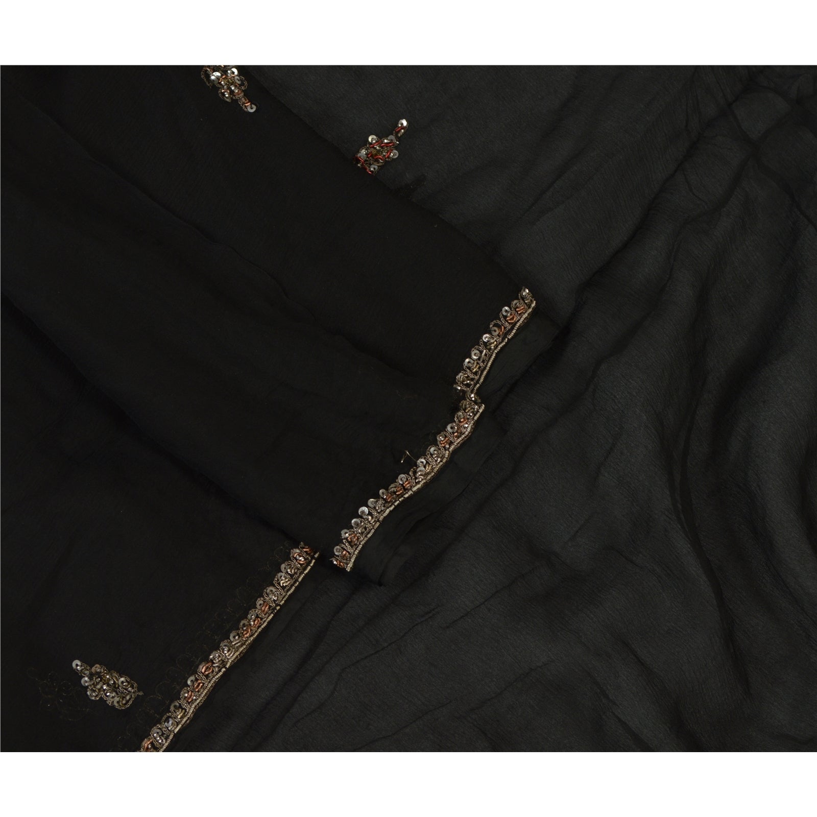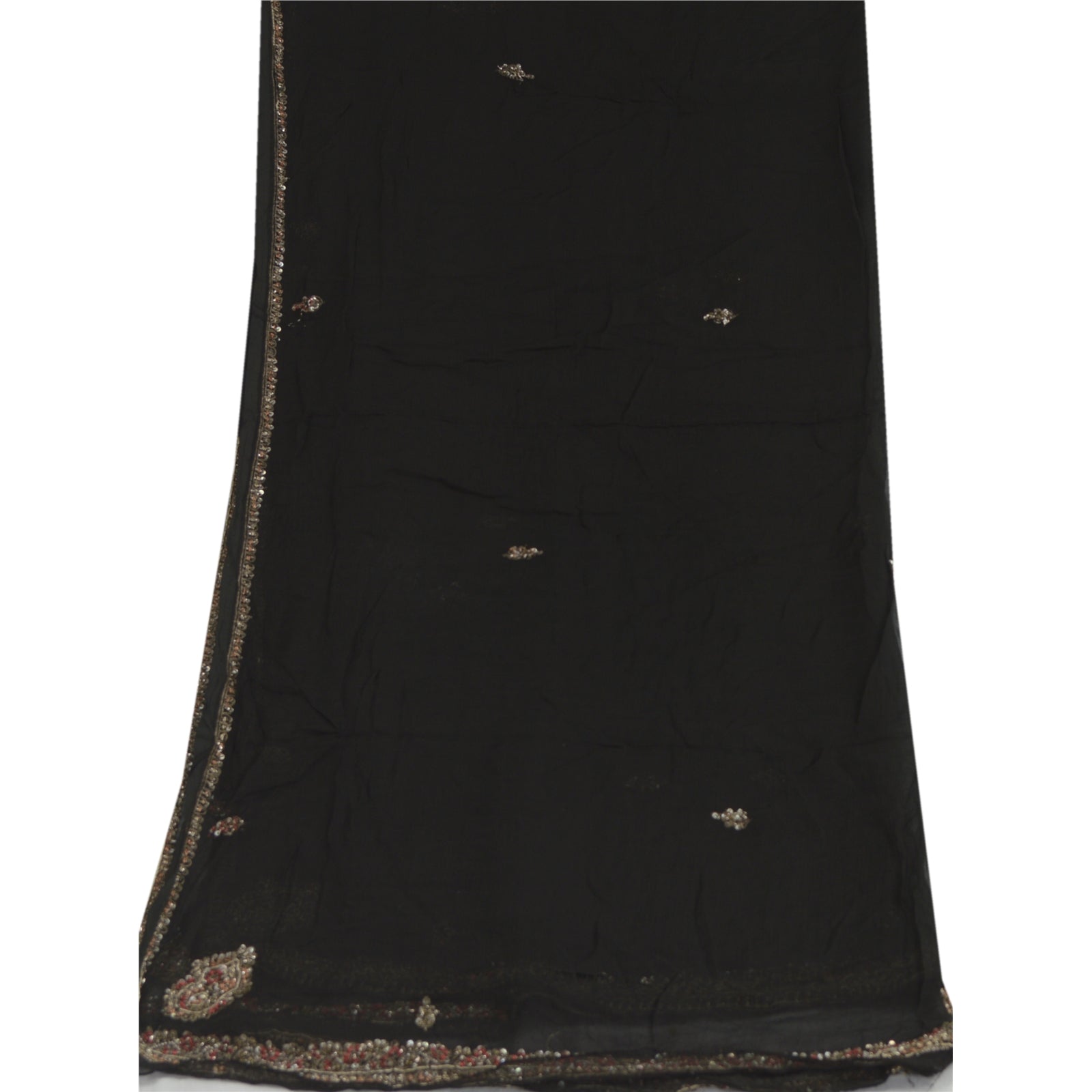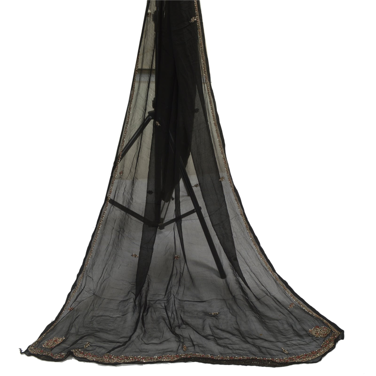 Sanskriti Vintage Dupatta Long Stole Pure Chiffon Silk Black Hand Beaded Scarves