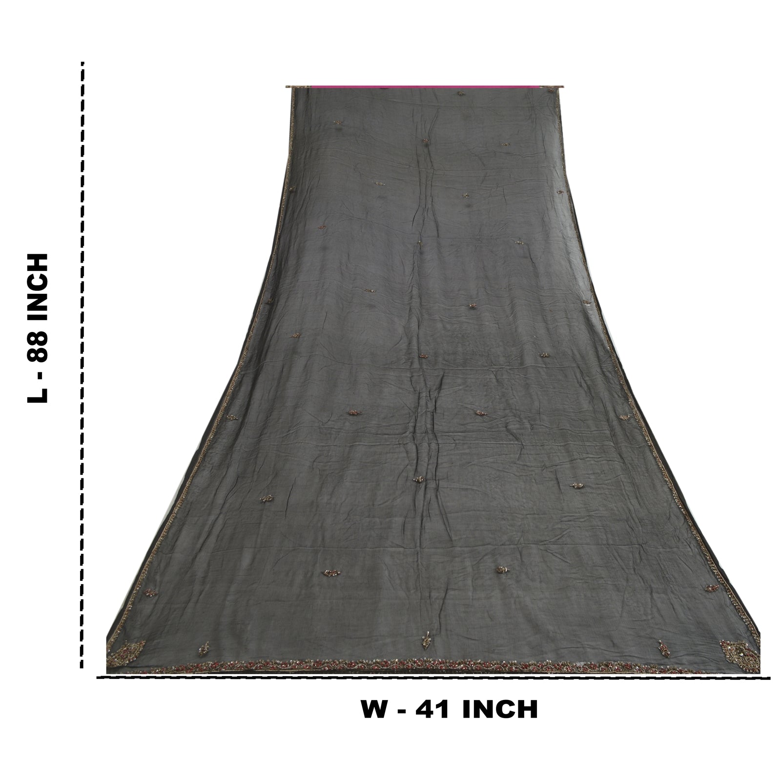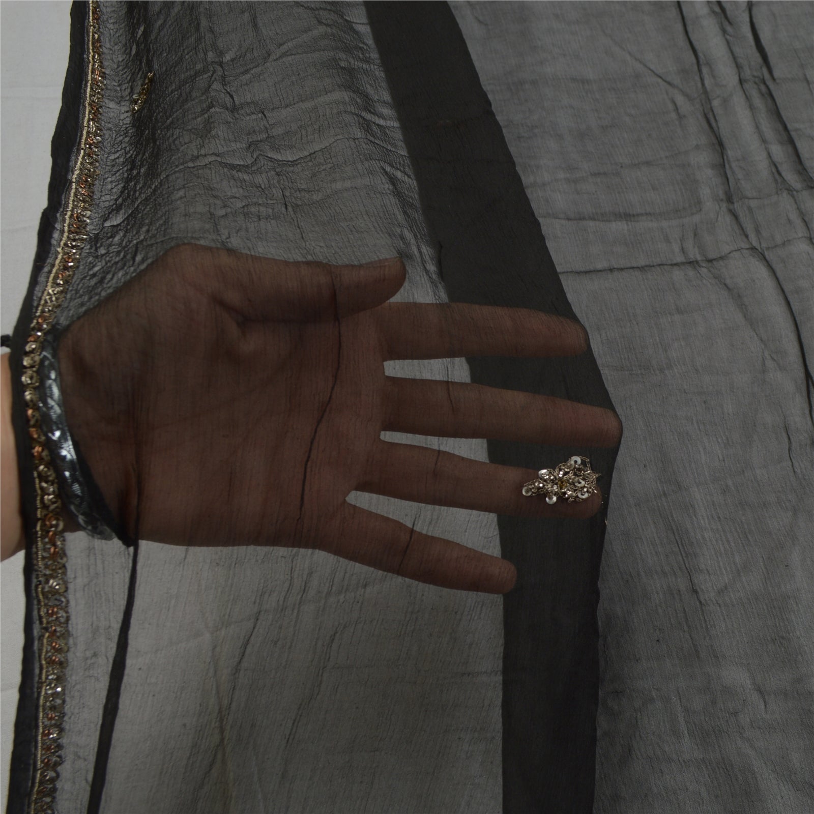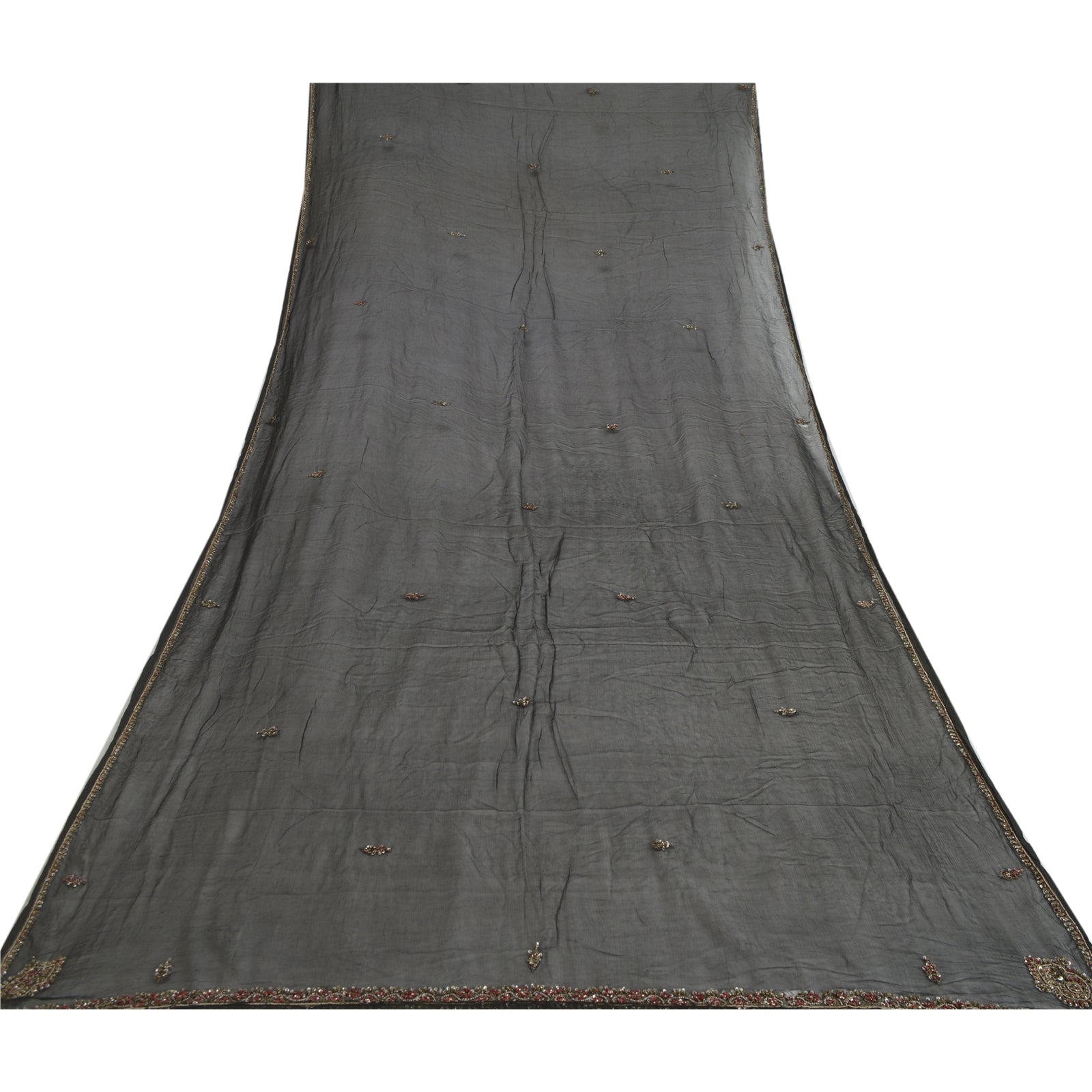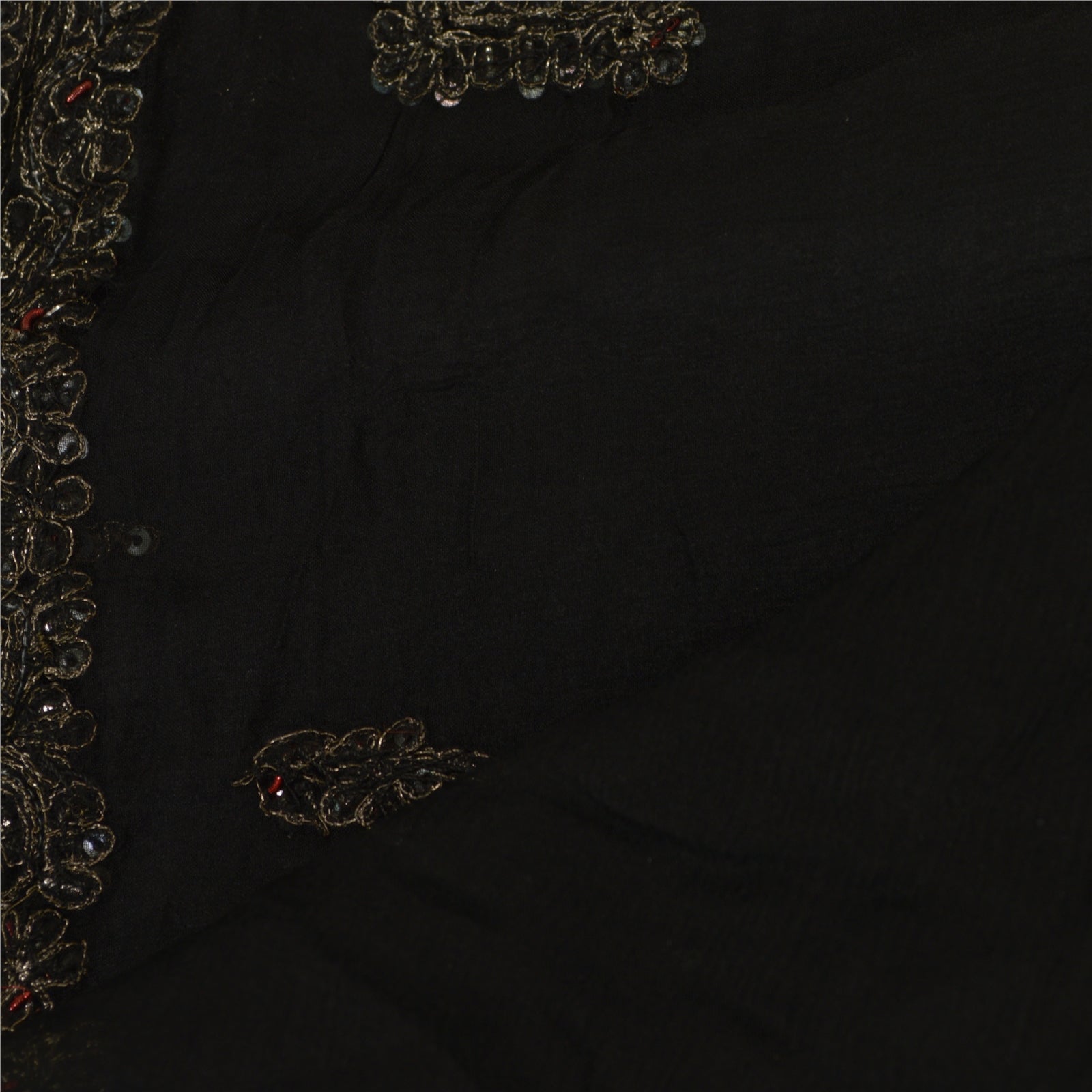 Sanskriti Vintage Dupatta Long Stole Pure Chiffon Silk Black Hand Beaded Scarves