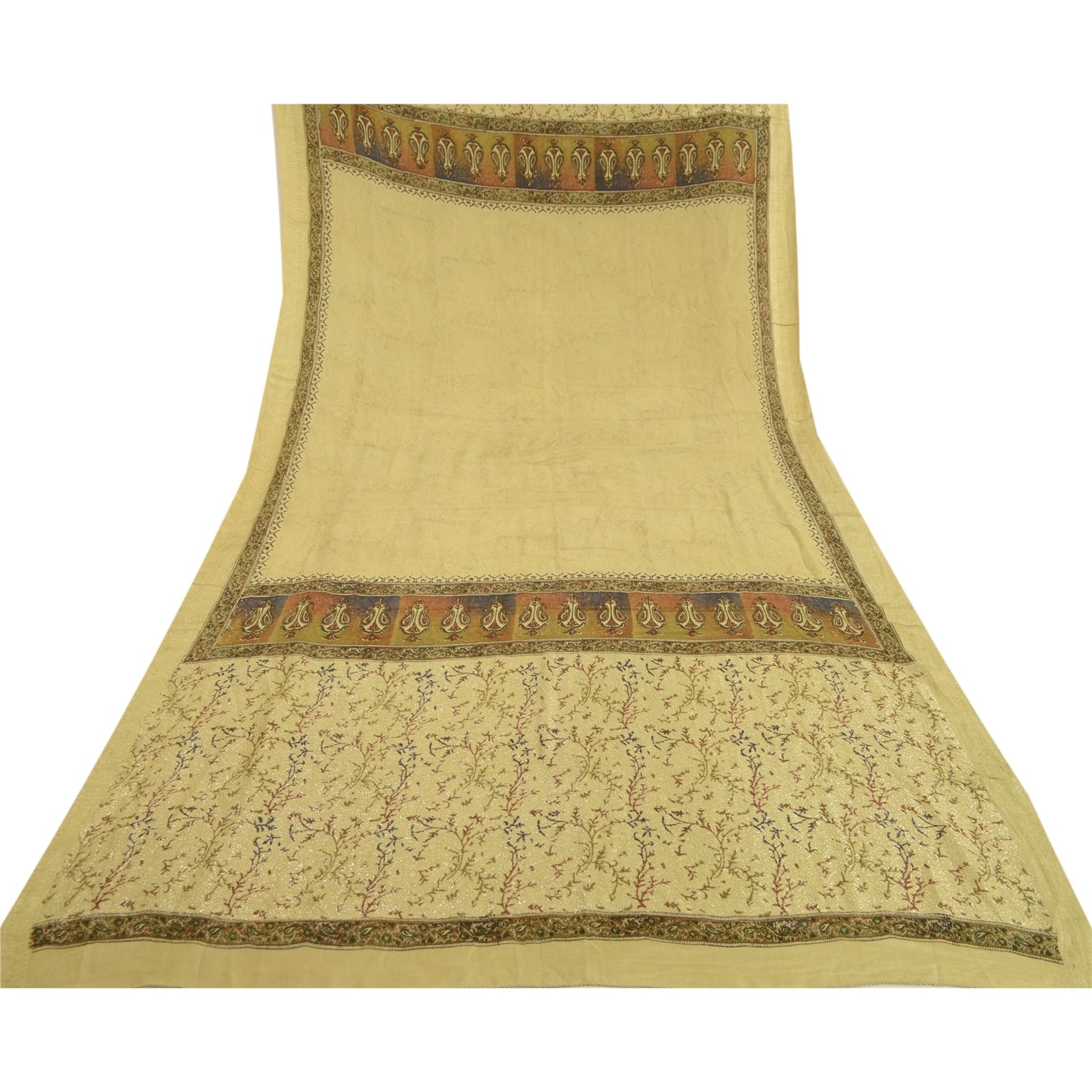 Sanskriti Vintage Dupatta Long Stole Pure Silk Olive Green Embroidered Woven