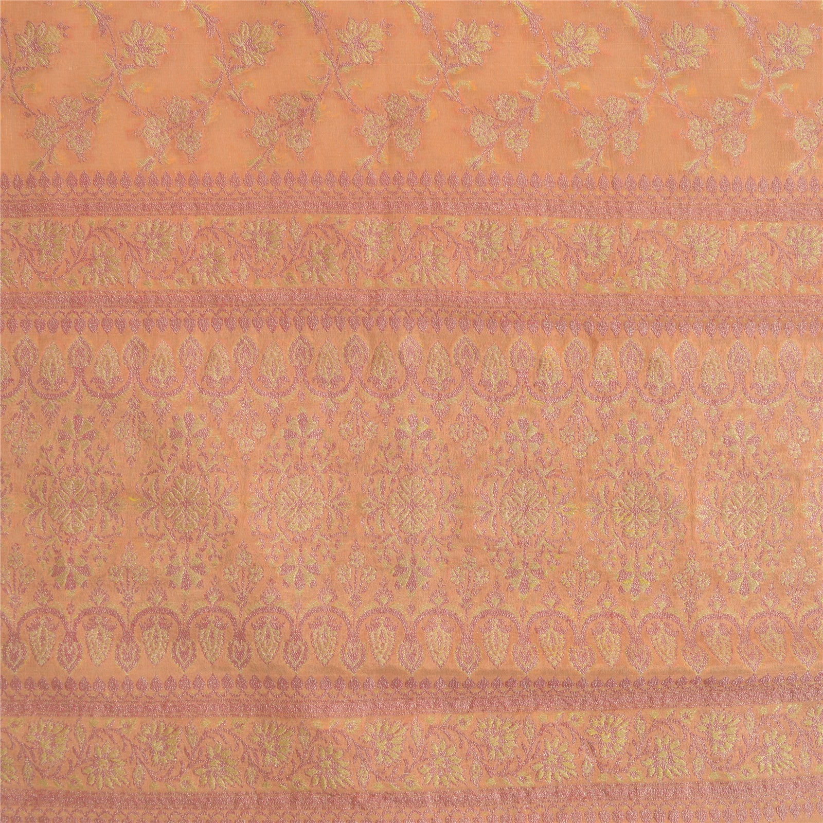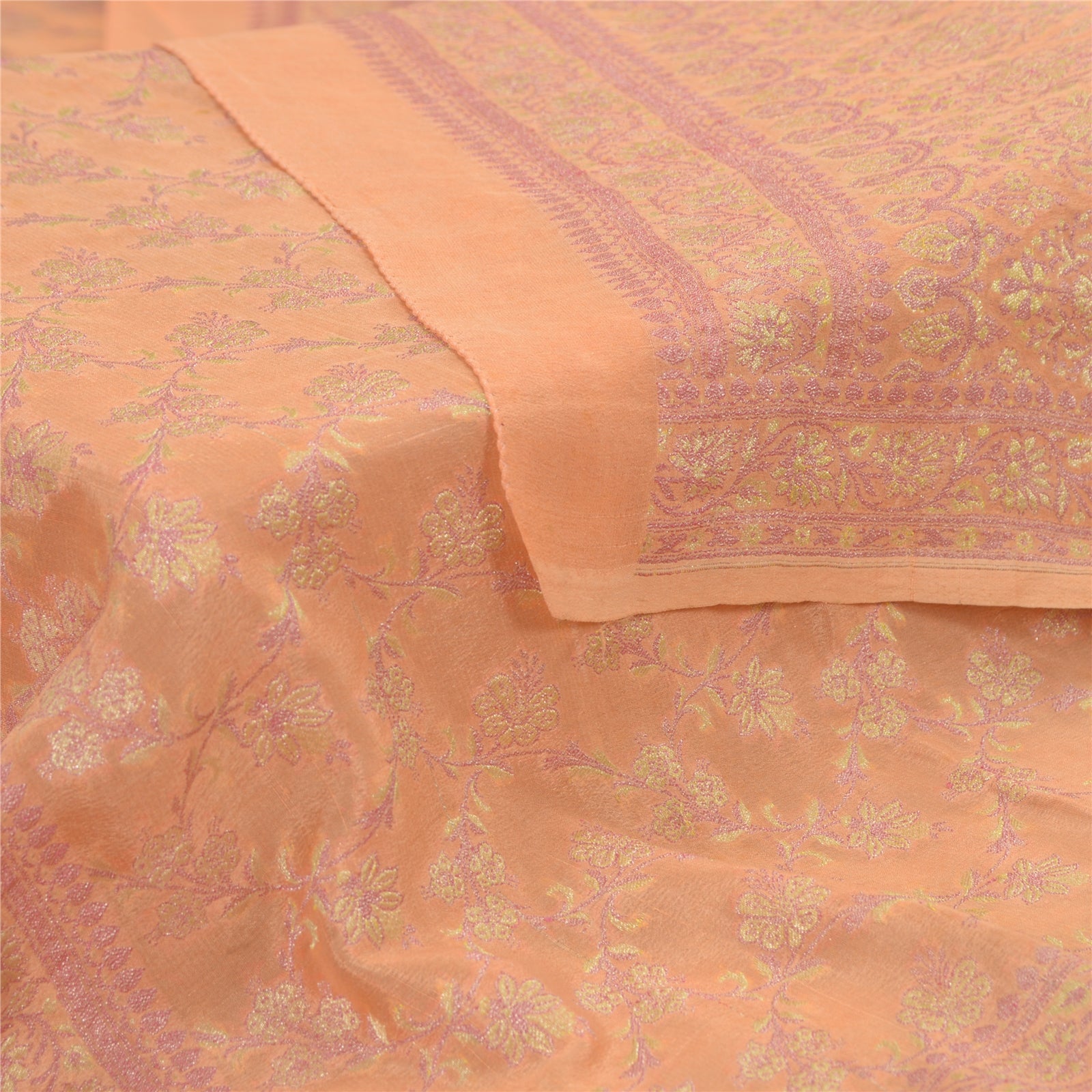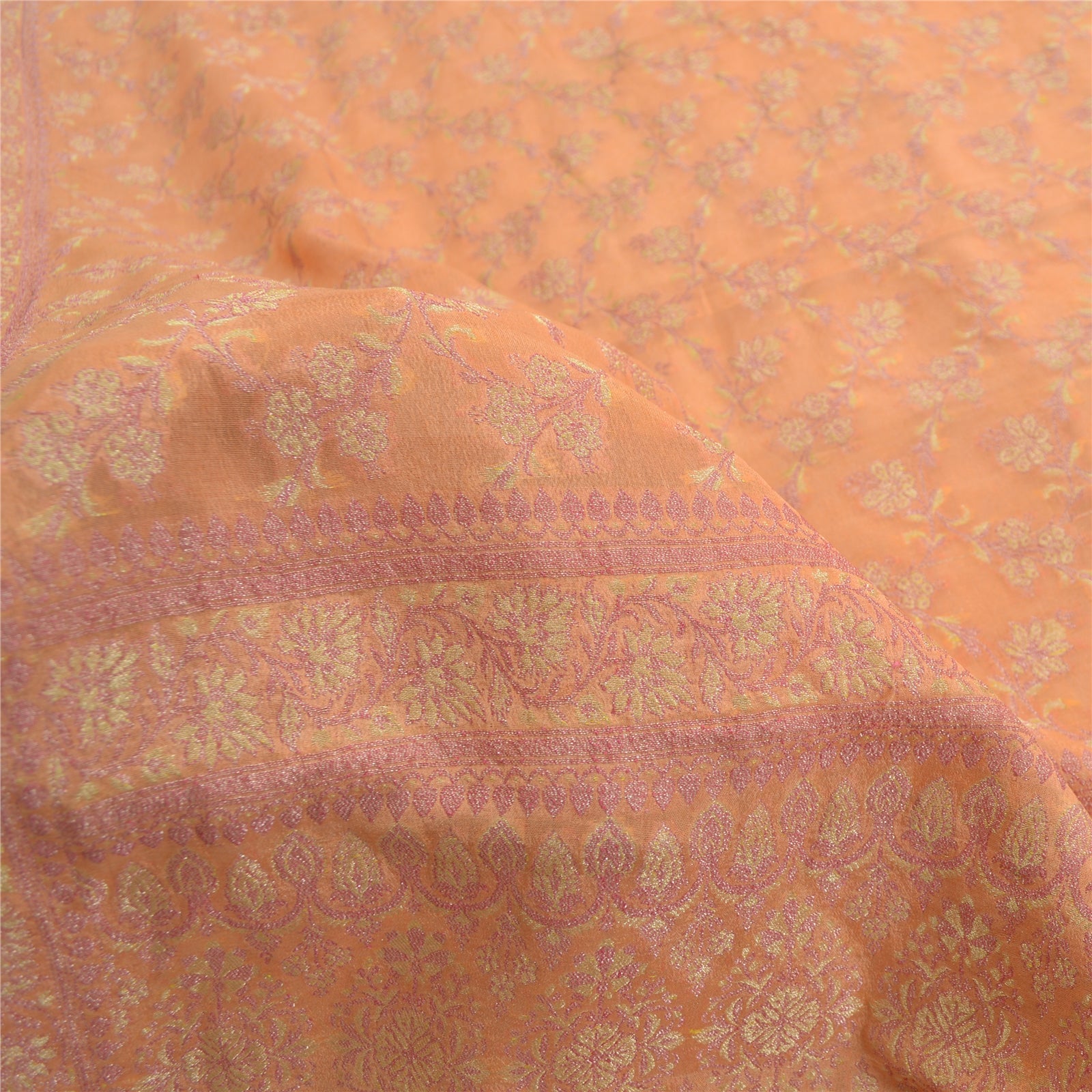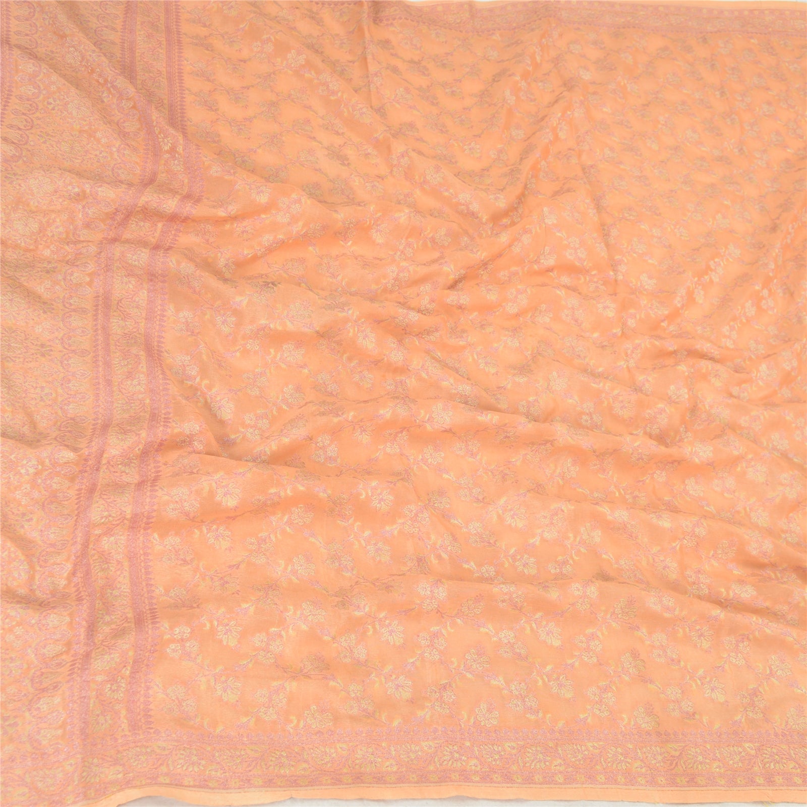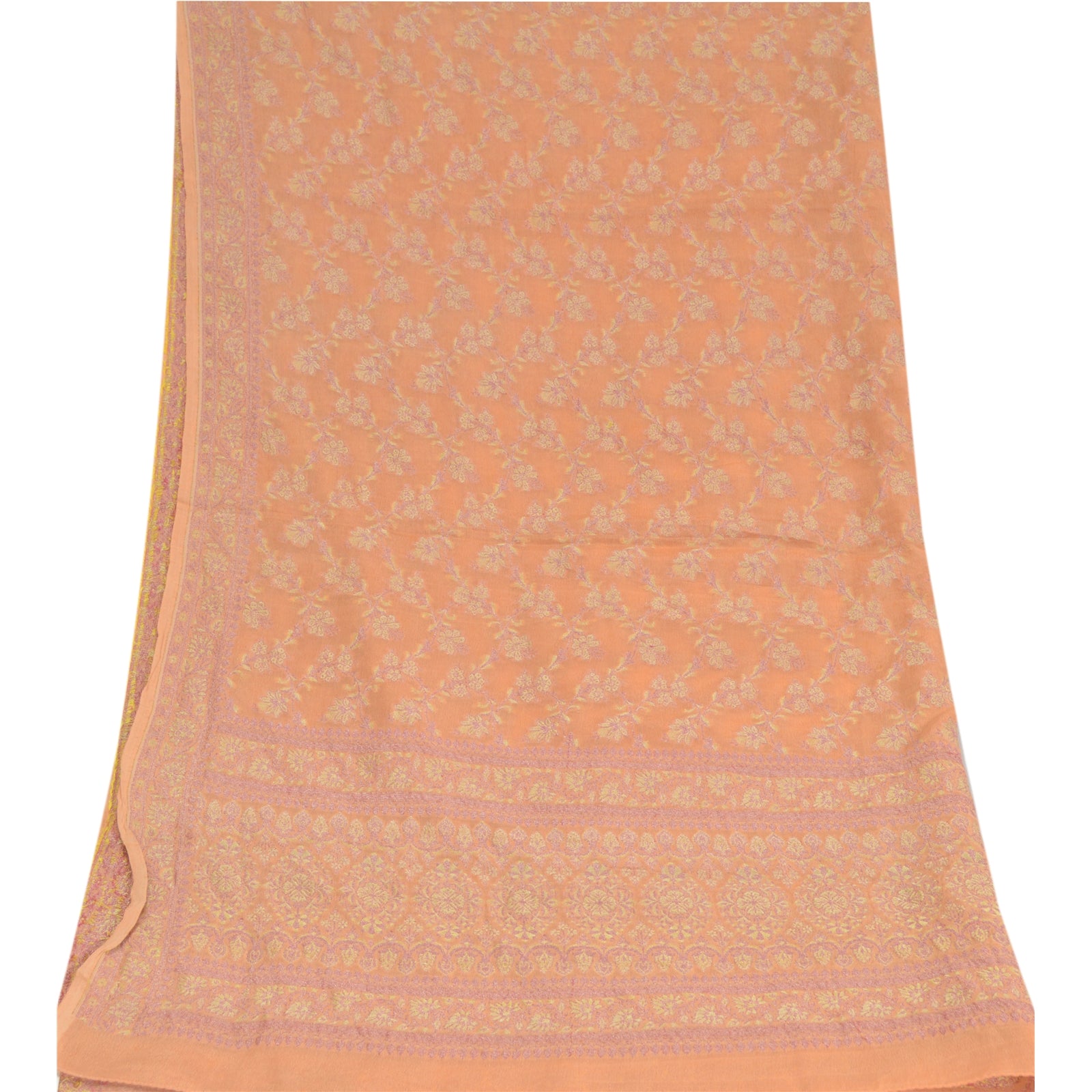 Sanskriti Vintage Dupatta Long Stole Pure Silk Peach Hijab Woven Wrap Scarves