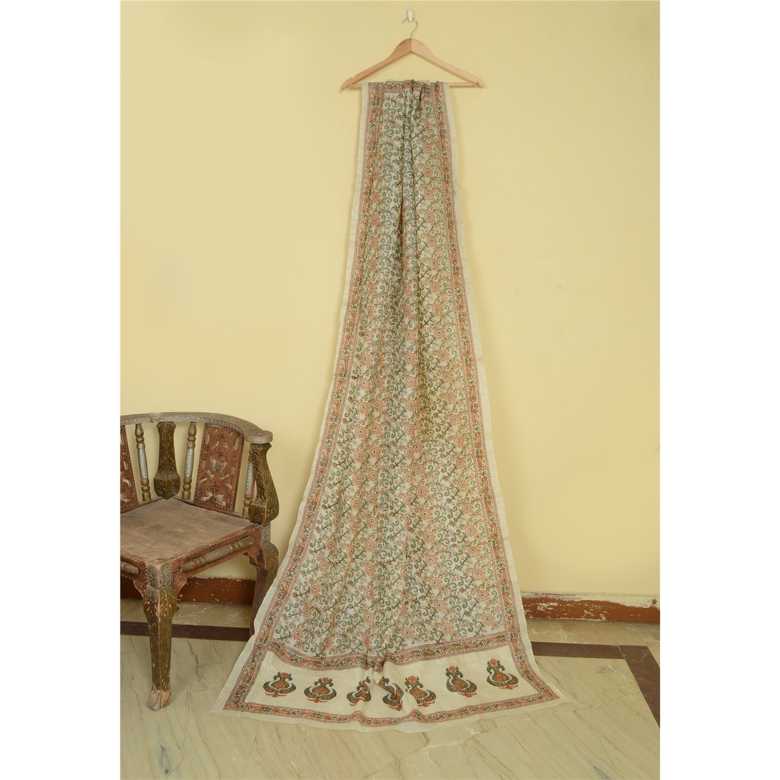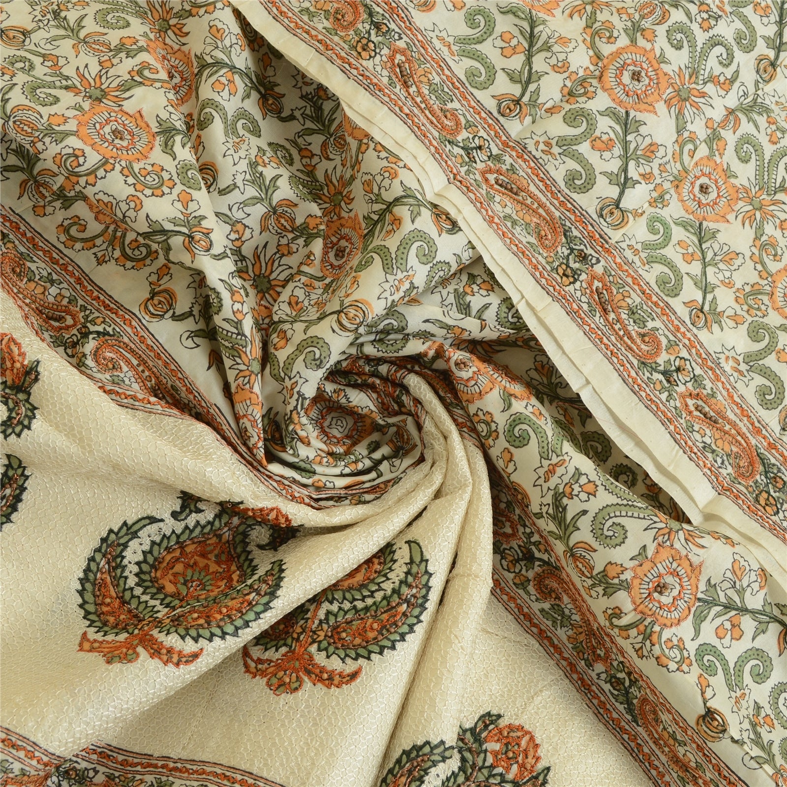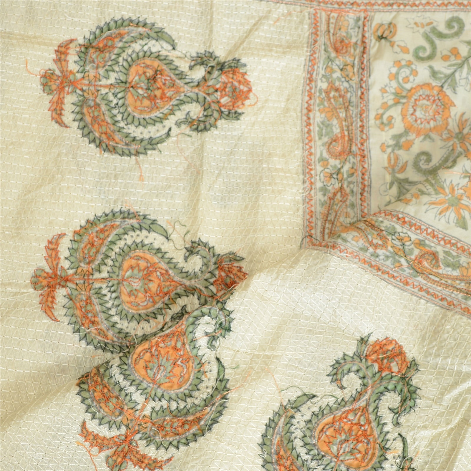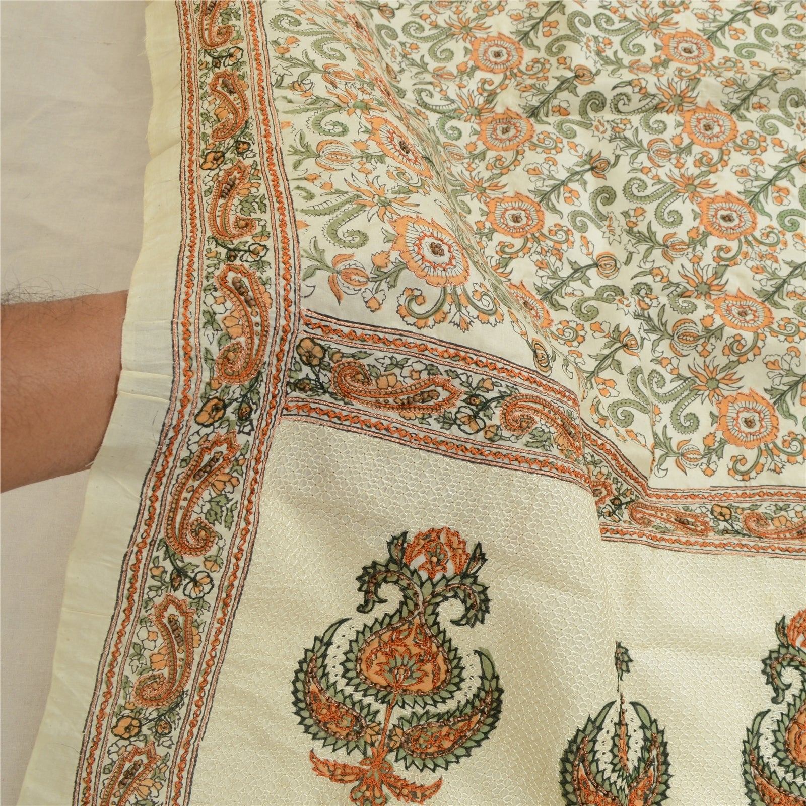 'THE ITEM COLOR OR SHADE MAY BE DARKER OR LIGHTER THAN THE PICTURE.' What a beautiful ivory color printed dupatta /stole. Base fabric is in ivory color in pure silk fabric. What a beautiful craftsmanship is done over it. Fabric is all over printed in green and orange contrast over which copper zari is used to outline the print pattern. You can see golden beads is enhancing the beauty of the embroidery. Floral design on the stole looks beautiful. As the item is Vintage, some minor stains and defects are expected. 'International buyers please note:Import duties, taxes, and charges are not included in the item price or postage cost. These charges are the buyer's responsibility. Please check with your country's customs office to determine what these additional costs will be prior to bidding or buying. Buyer will pay custom duty/tax. It is calculated and charged differently by every country. As a seller I do not have any control over it.VAT or sales tax is calculated by the platform at the time of checkout. Customs charge is payable at the time of delivery. HD-3937