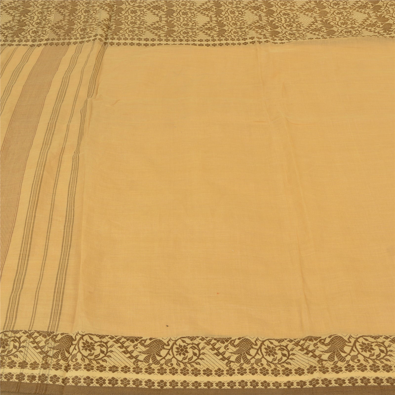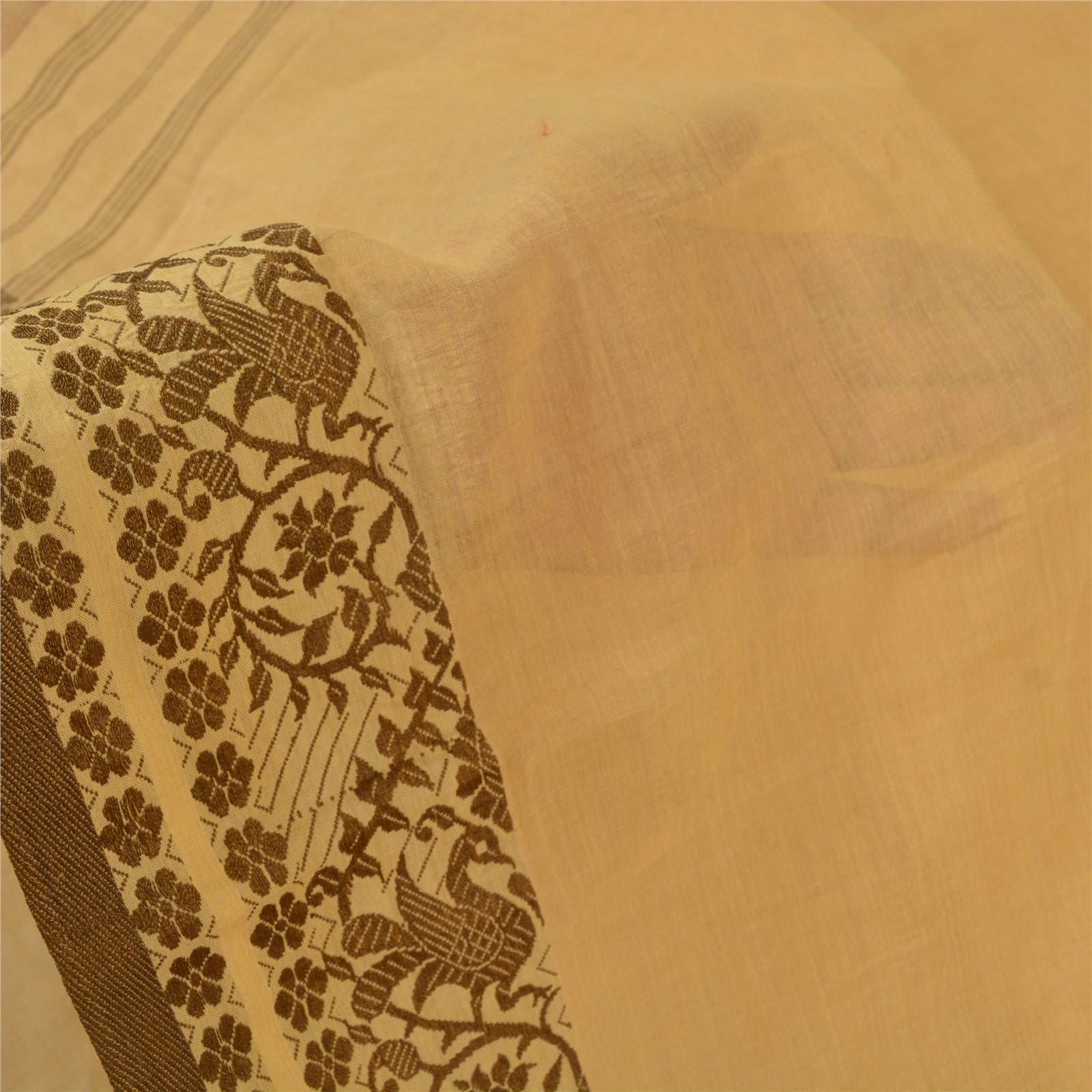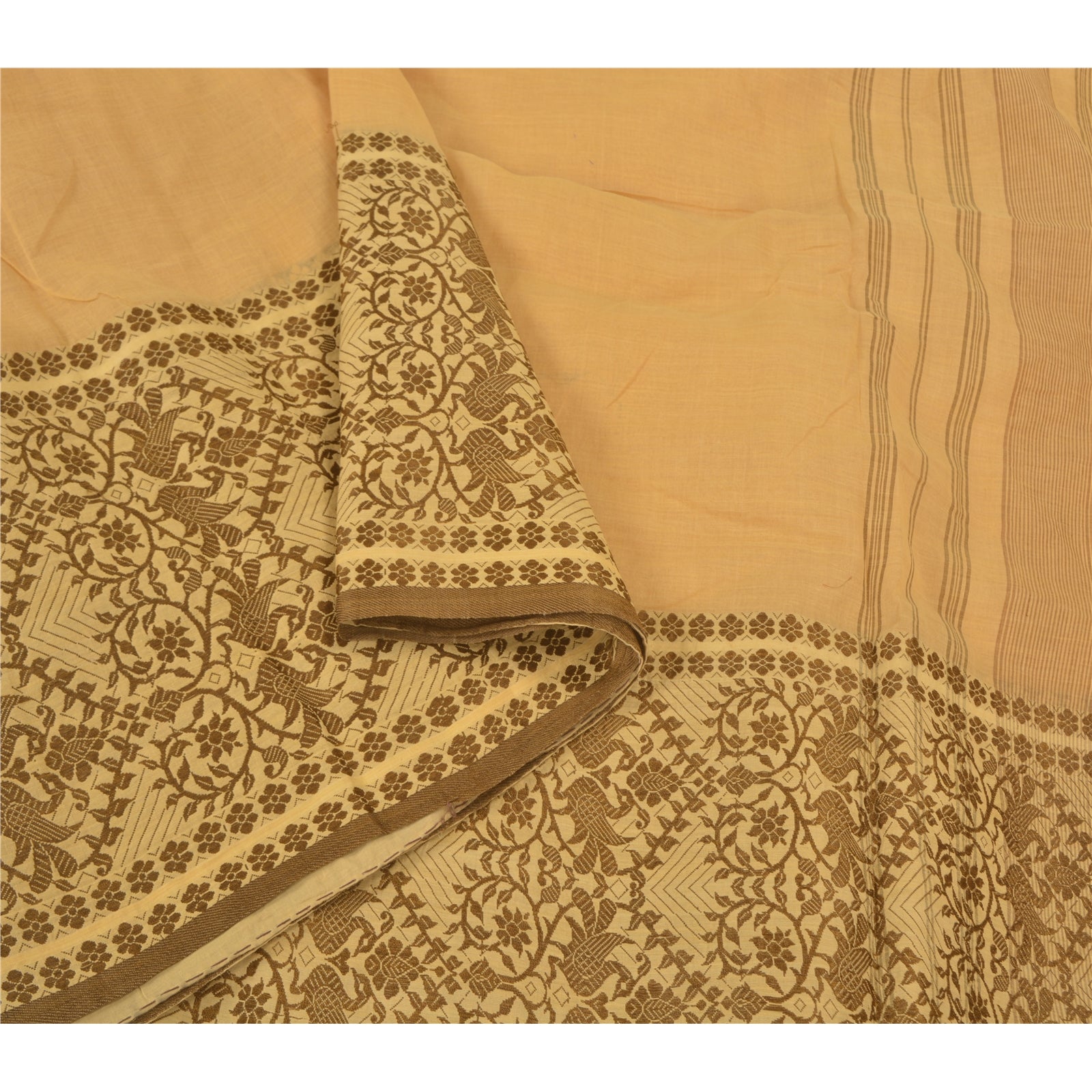 Sanskriti Vintage Fawn Sarees 100% Pure Cotton Woven Peacock Premium Sari Sustainable Fabric