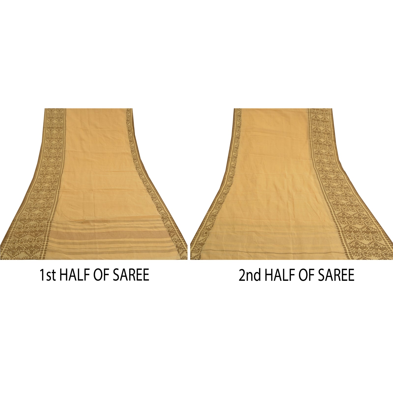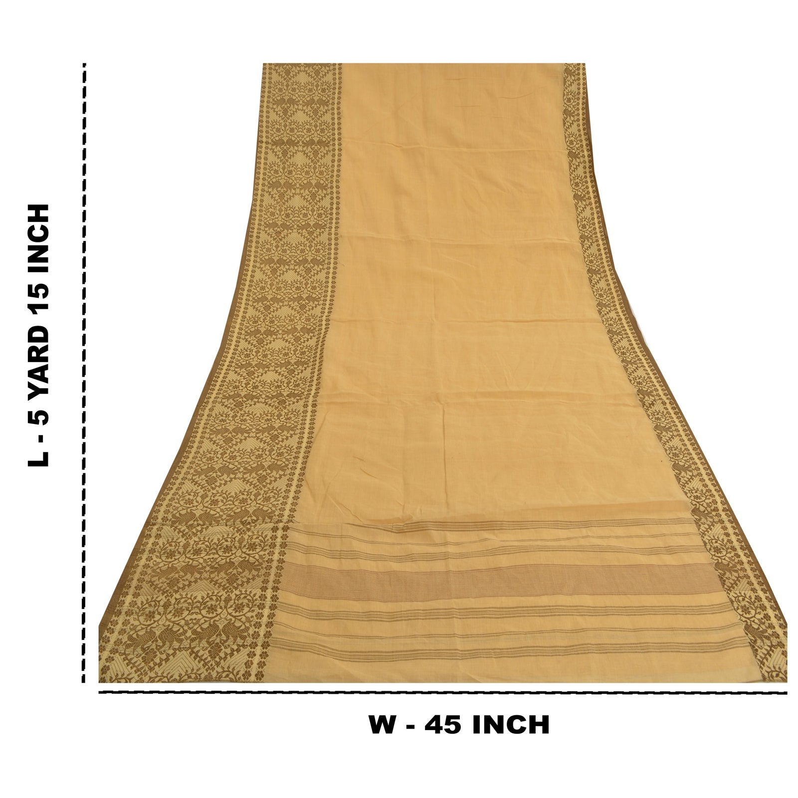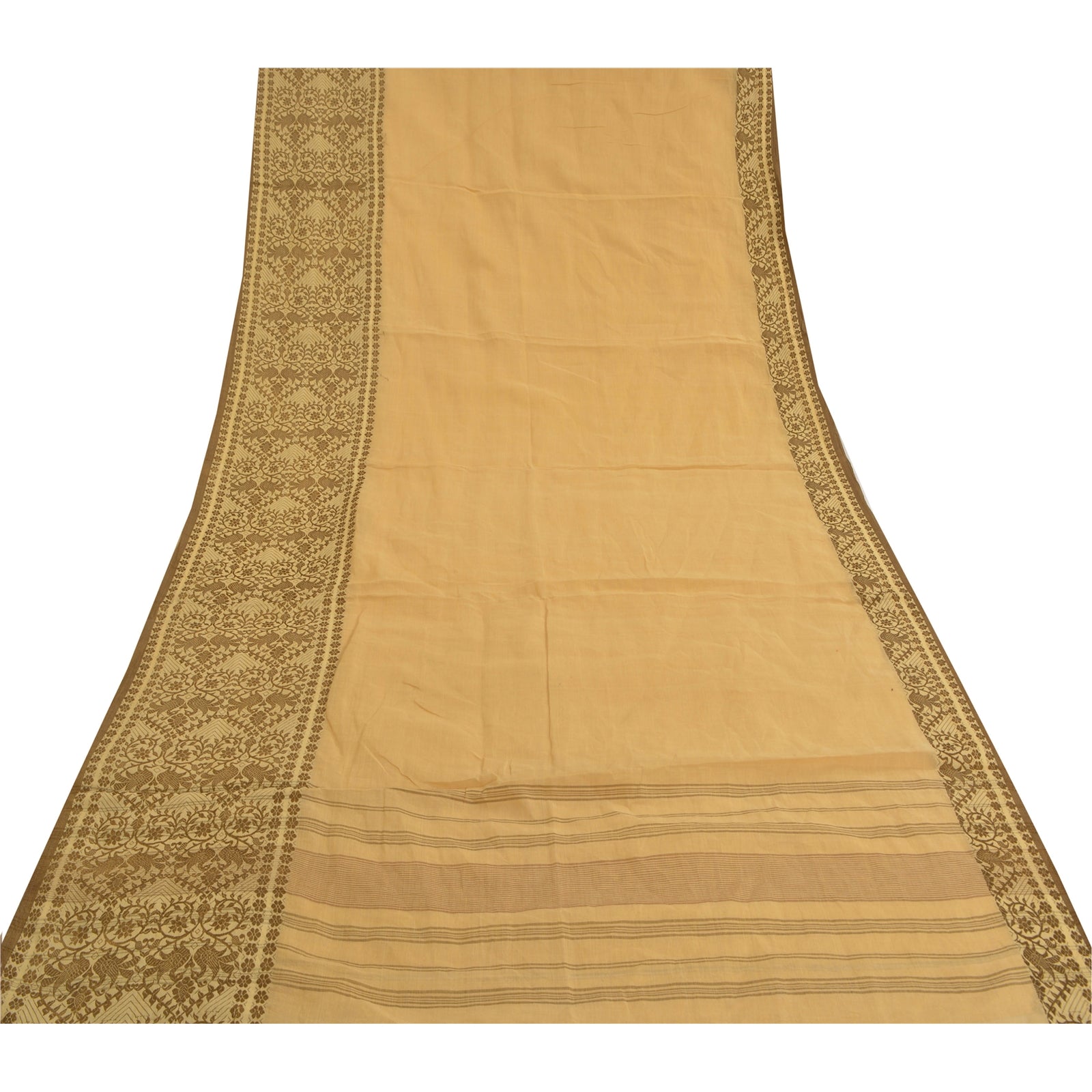 Sanskriti Vintage Fawn Sarees 100% Pure Cotton Woven Peacock Premium Sari Sustainable Fabric