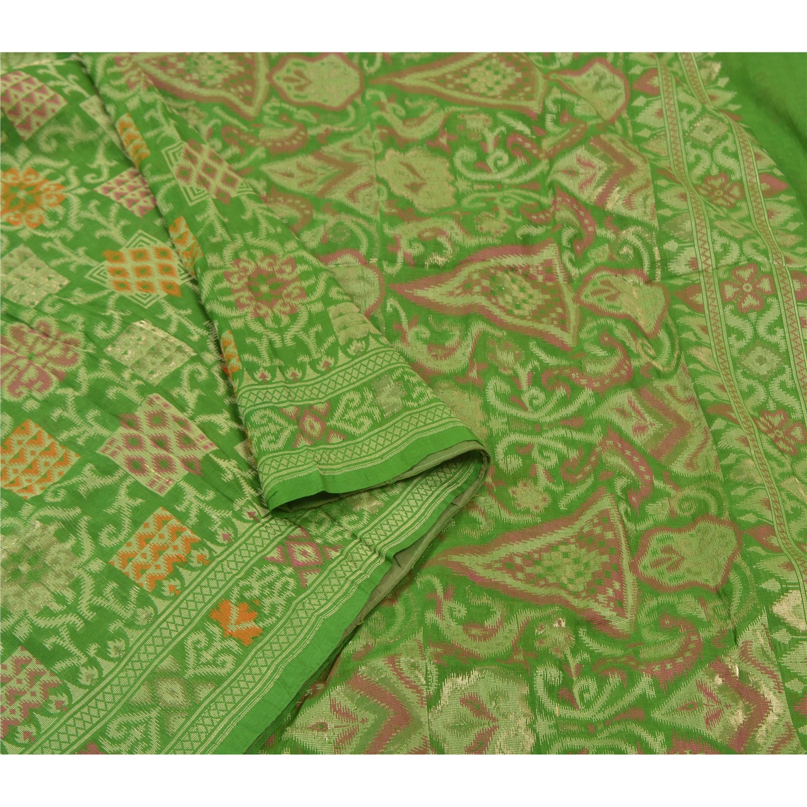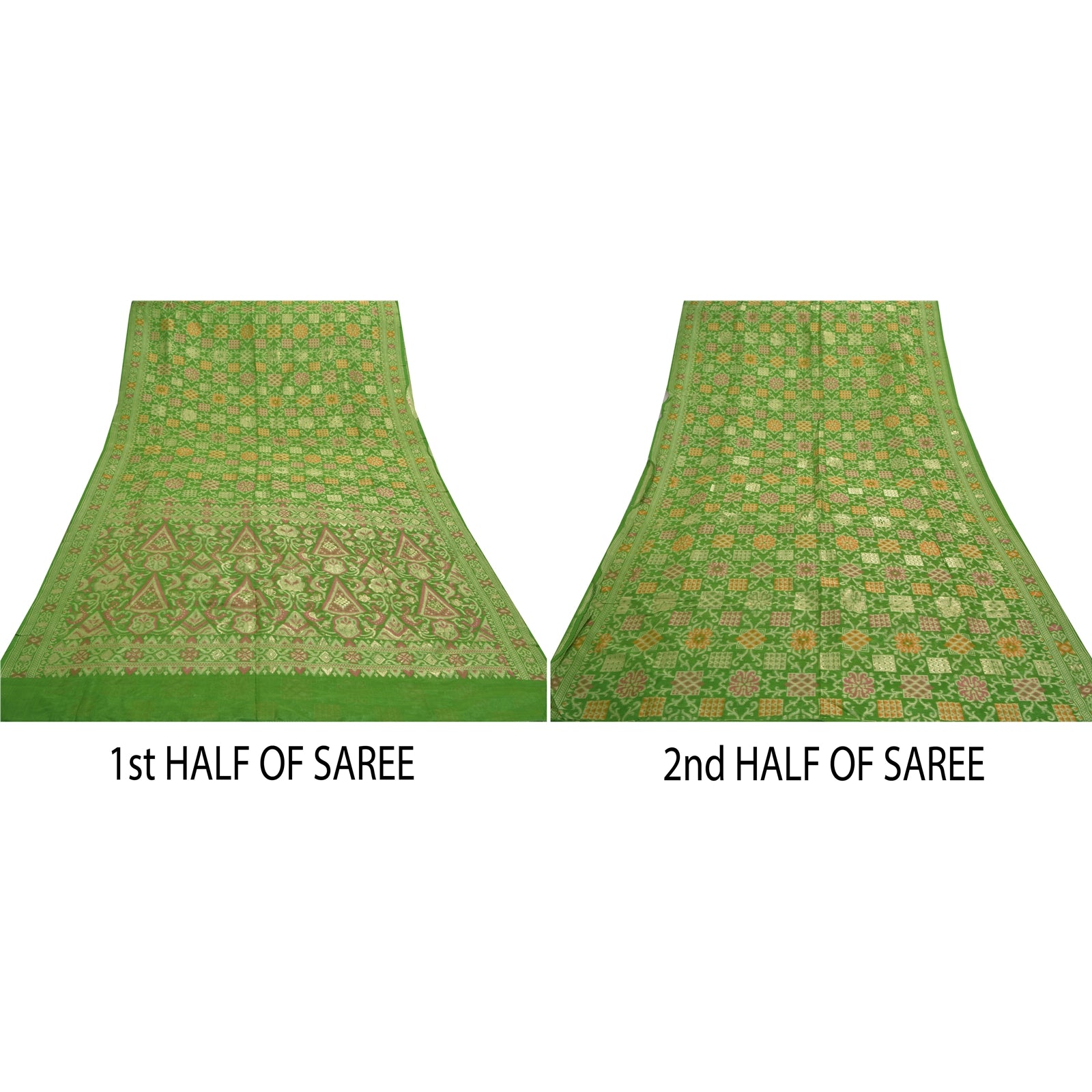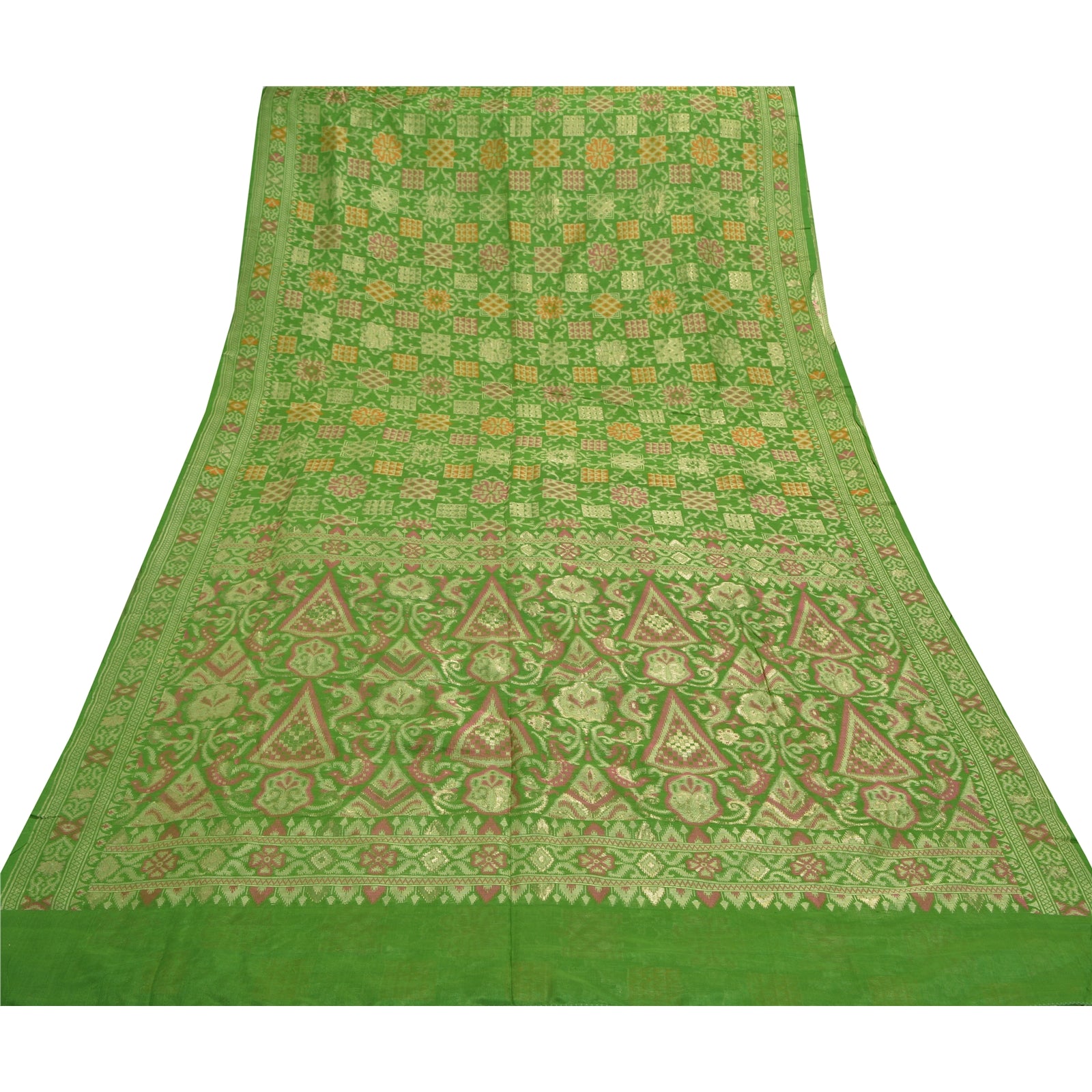 Sanskriti Vintage Green Heavy Sarees Pure Silk Woven Jamawar Tanchoi Sari Sustainable Fabric