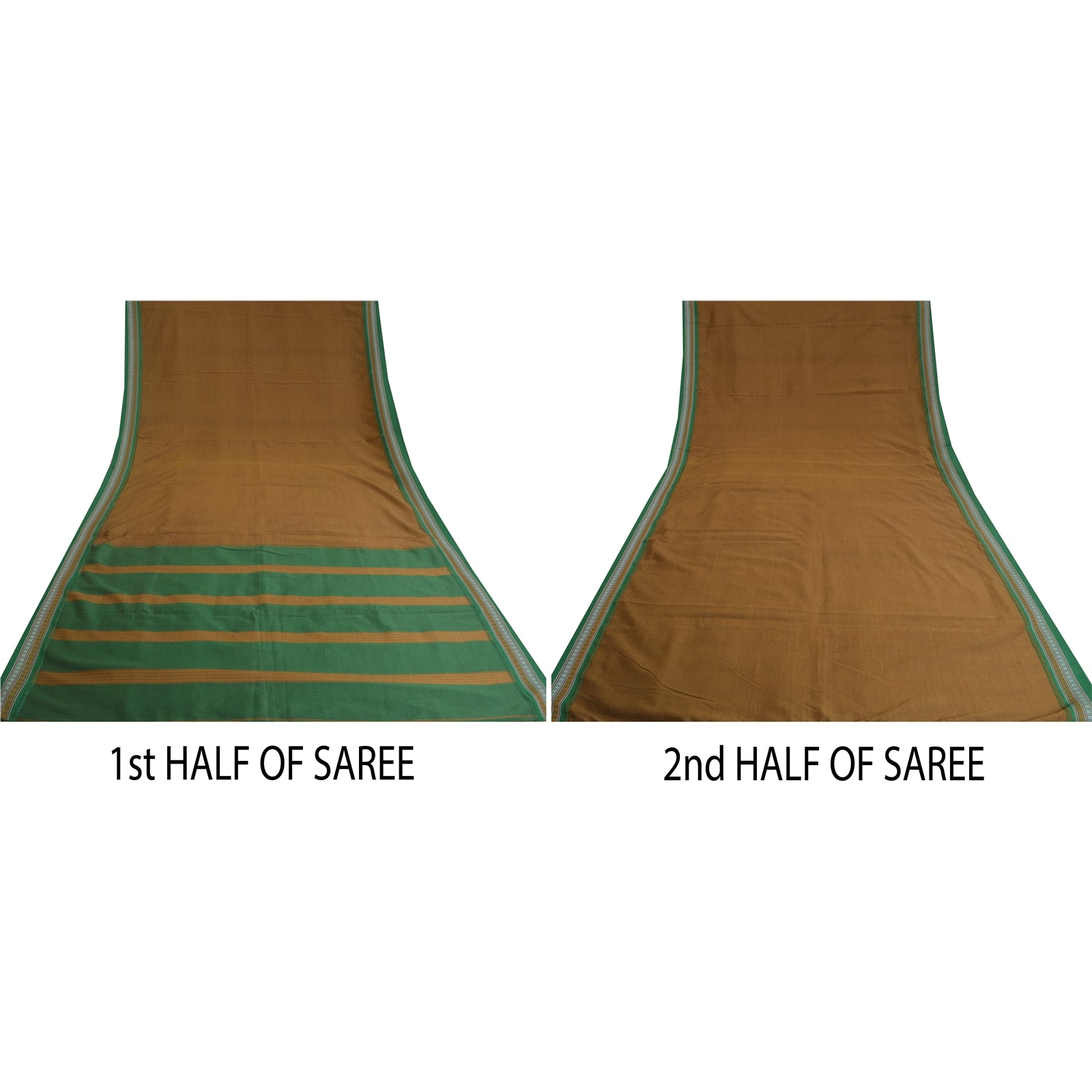 'THE ITEM COLOR OR SHADE MAY BE DARKER OR LIGHTER THAN THE PICTURE.' Beautiful Green Colored Cotton Traditional Hand Woven Ilkal (Ilkal is famous for hand-loomed sarees, popularly known as Ilkal sarees. Ilkal sarees have a distinctive pattern and are usually made from cotton.) Sari. Pallu & Border features blue/pink hand-woven lines & paisley design. You can see golden zari work on borders. Similar plain solid color in center part of saree. What is special about this saree? Ilkal is famous for hand-loomed sarees, popularly known as Ilkal sarees. Ilkal sari is a traditional form of sari which is a common feminine wear in India. Ilkal sari takes its name from the town of Ilkal in the Bagalkot district of Karnataka state, India. Ilkal saris are woven using cotton warp on the body and art silk wrap for border and art silk wrap for pallu portion of the sari. 'International buyers please note: Import duties, taxes, and charges are not included in the item price or postage cost. These charges are the buyer's responsibility. Please check with your country's customs office to determine what these additional costs will be prior to bidding or buying. Buyer will pay custom duty/tax. It is calculated and charged differently by every country. As a seller I do not have any control over it. VAT or sales tax is calculated by the platform at the time of checkout. Customs charge is payable at the time of delivery.'