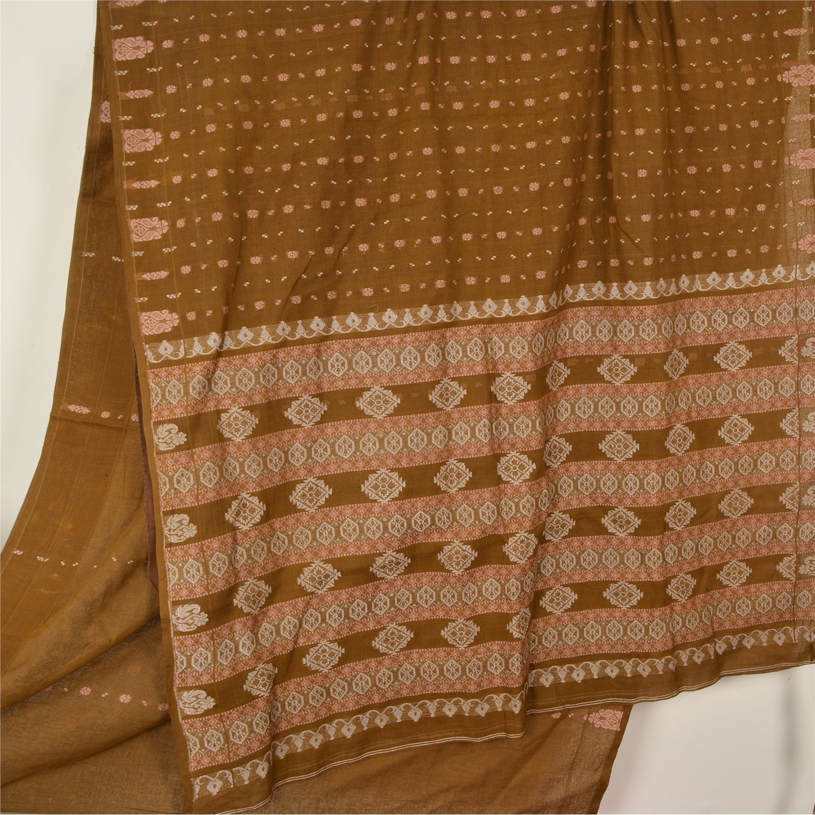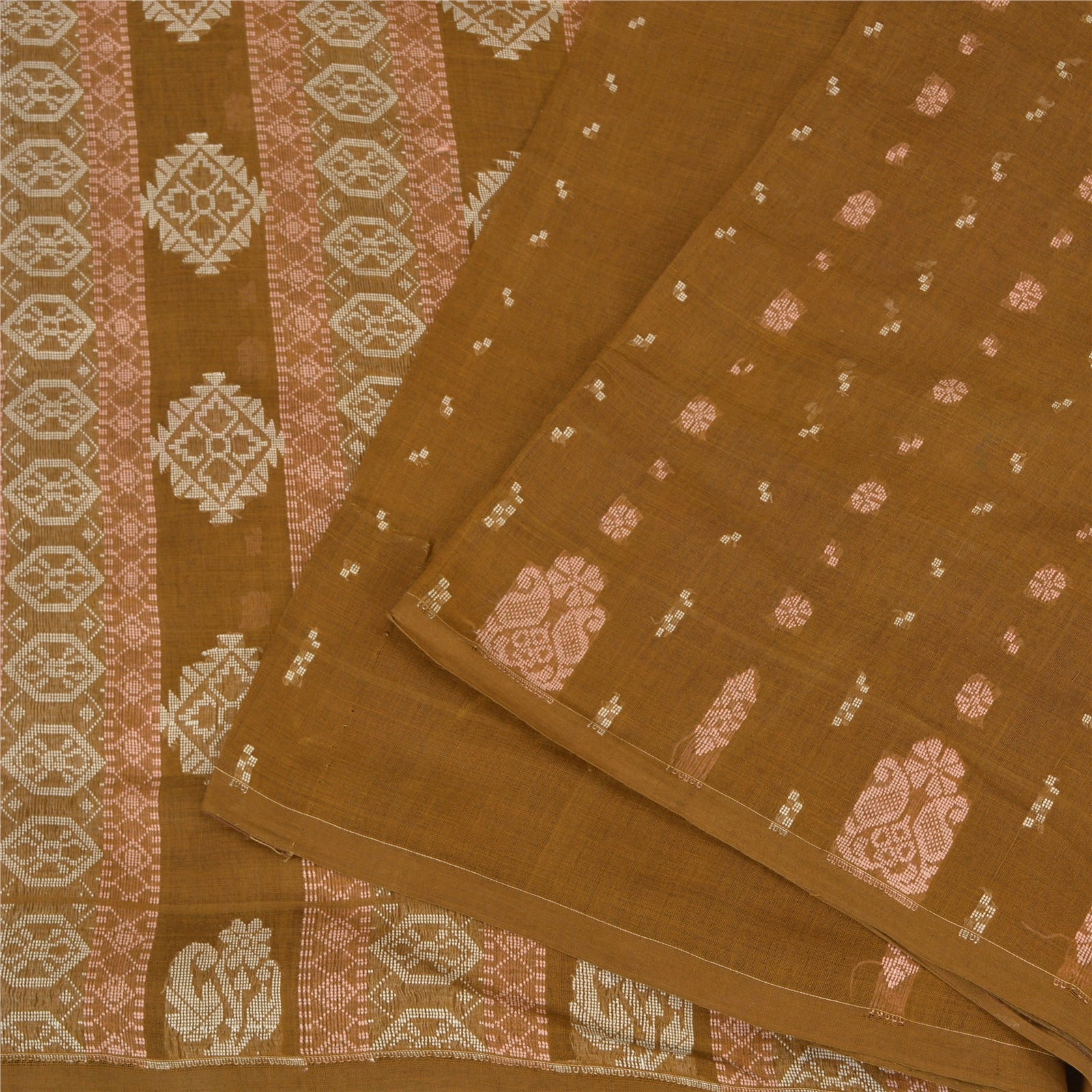 Sanskriti Vintage Green Sarees 100% Pure Cotton Hand-Woven Sari Craft Sustainable Fabric
