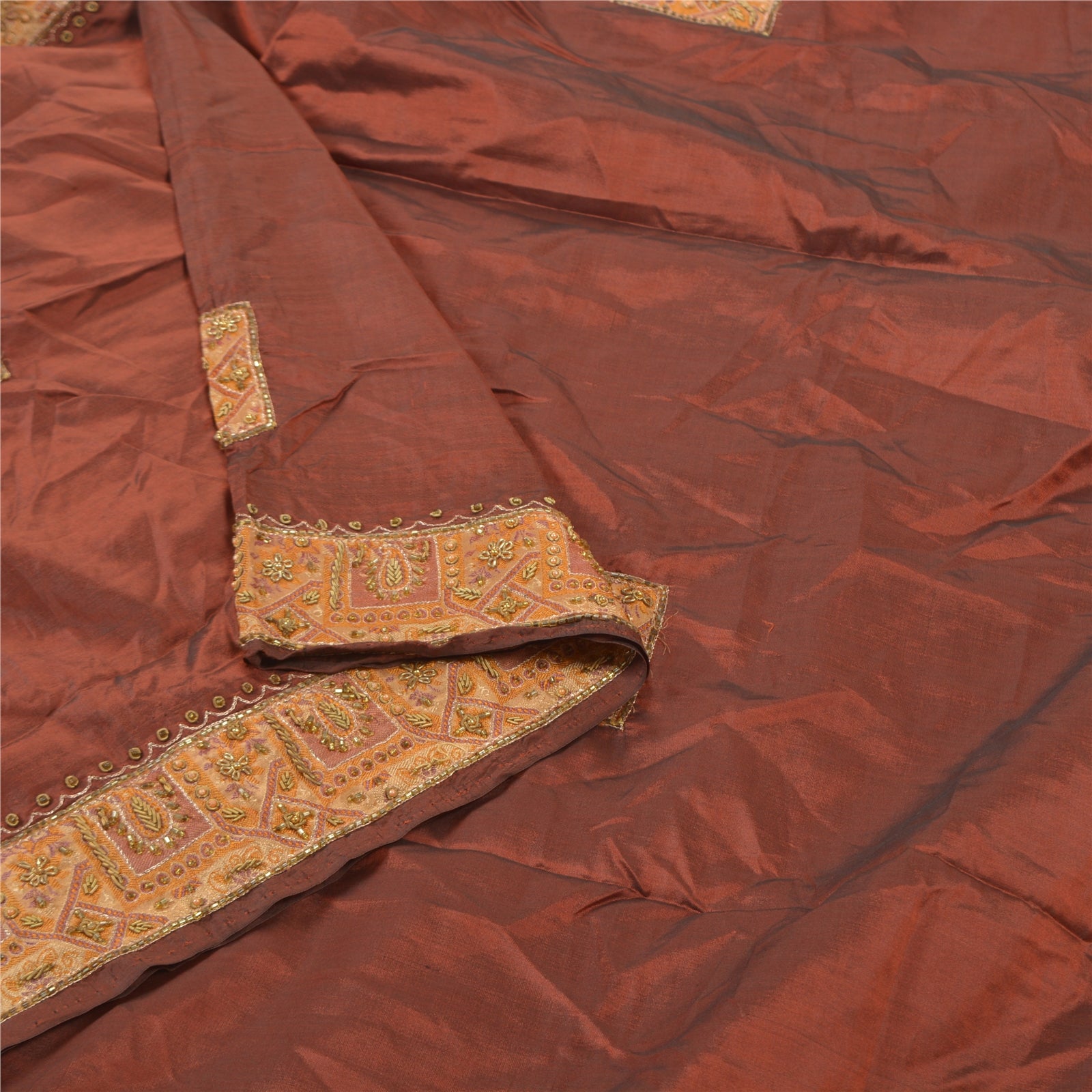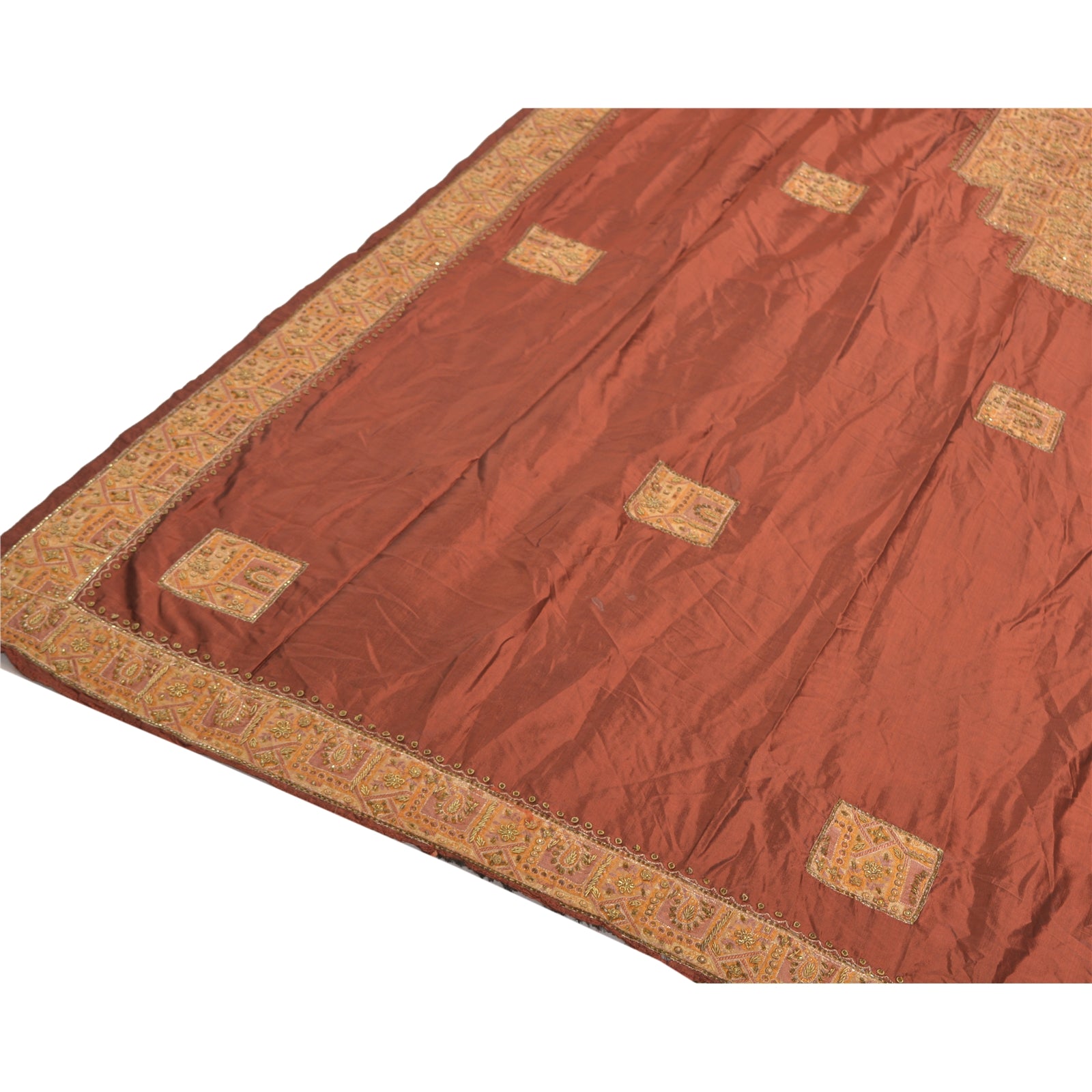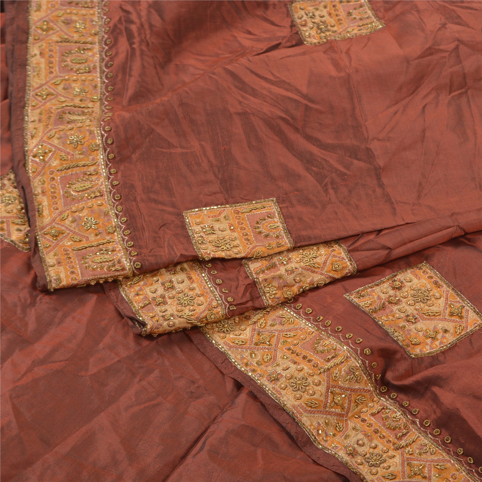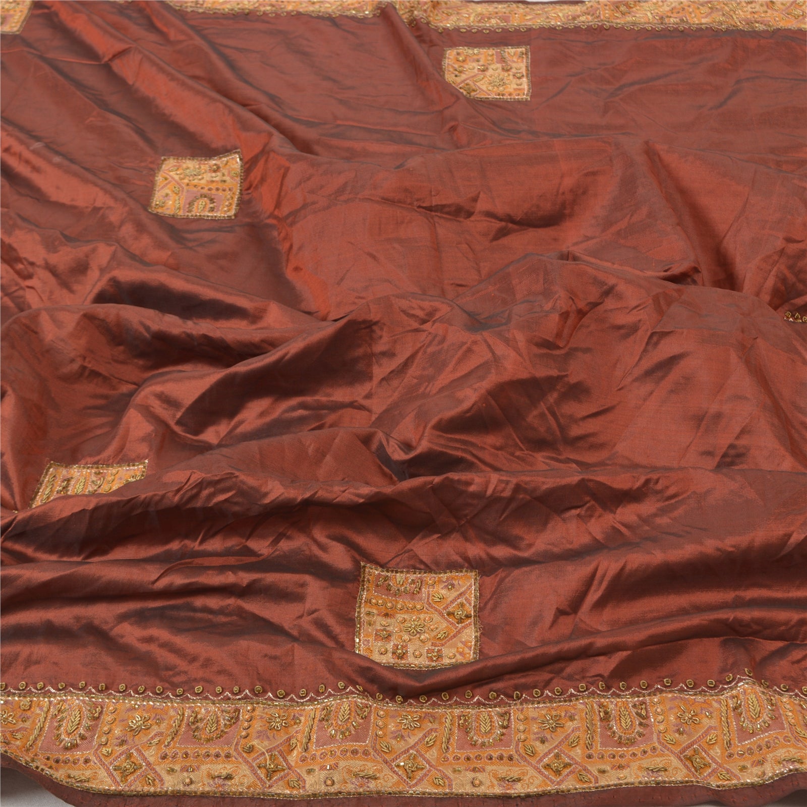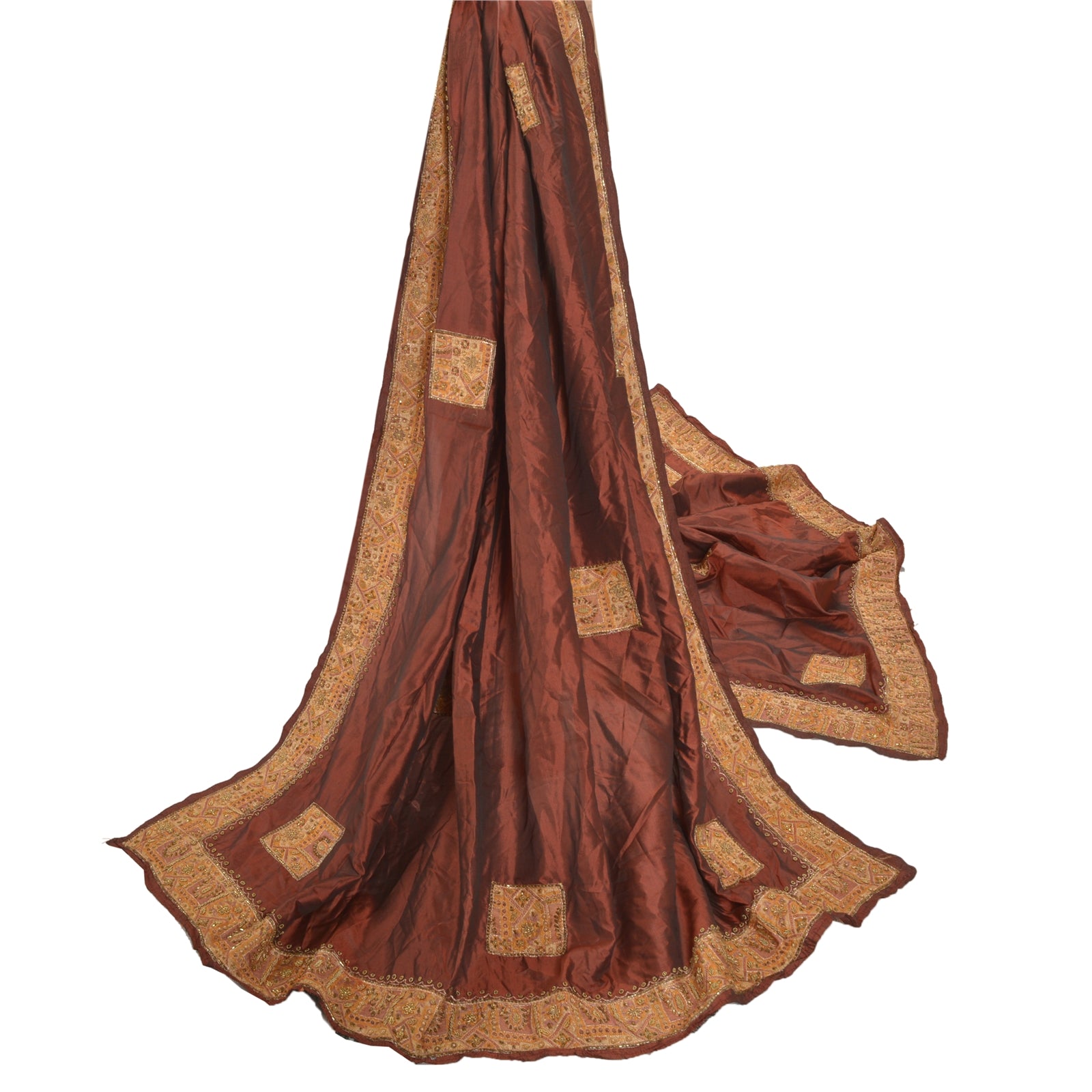 Sanskriti Vintage Heavy Dupatta 100% Pure Silk Brown Hand Beaded Zari Stole
