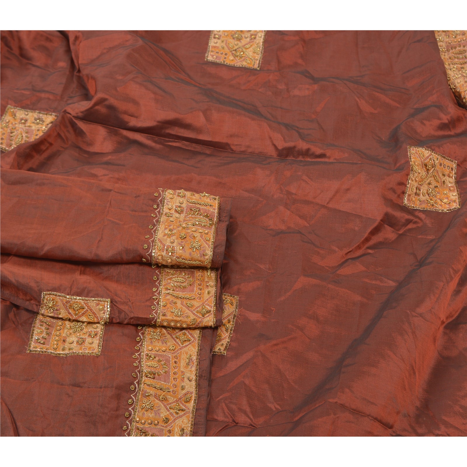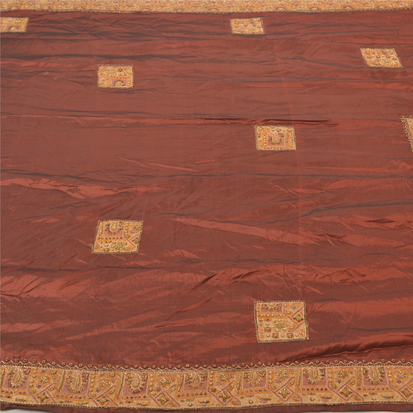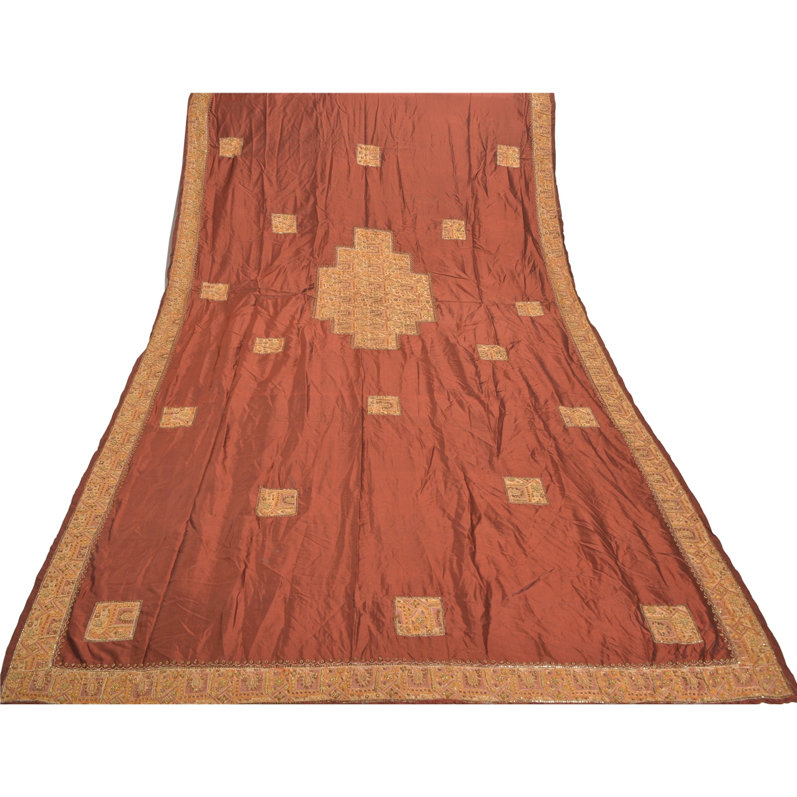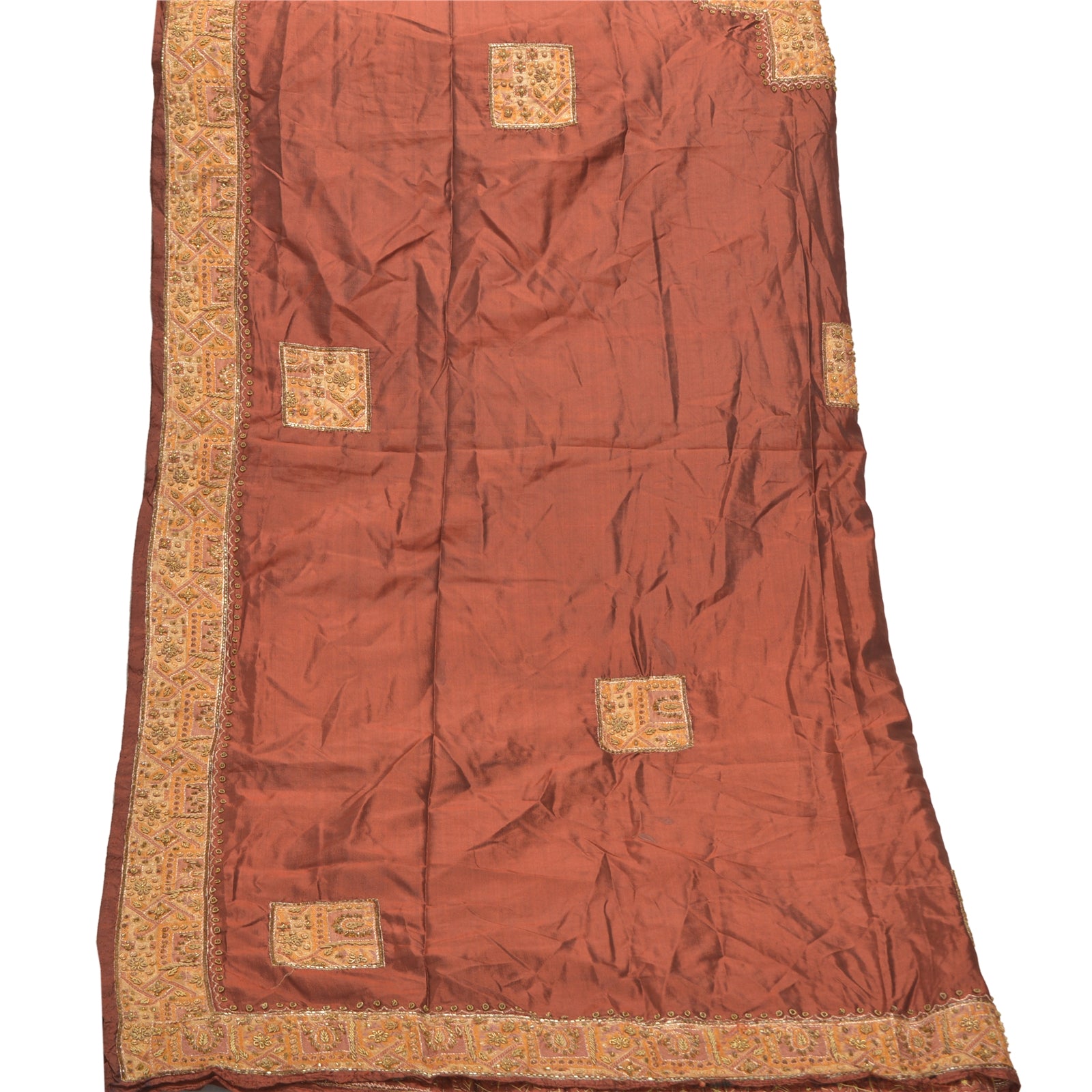 Stunning Very Heavy Dupatta Hand Embroidered 100% Pure Silk Dupatta/Stole In Brown Color Sustainable Fabric. This one of a kind item is difficult to express in words. Border feature is floral design embroidered with brown woven Sustainable Fabric patch work embellished with metallic zari/zardozi work, cream pearl like beads, yellow glass beads work is the highlight of the dupatta. Also you can see the center part of the dupatta patch work with zardozi work. Zardozi work is giving a fabulous look to the dupatta. Awesome one !!! As the item is Vintage, some minor stains and defects are expected.