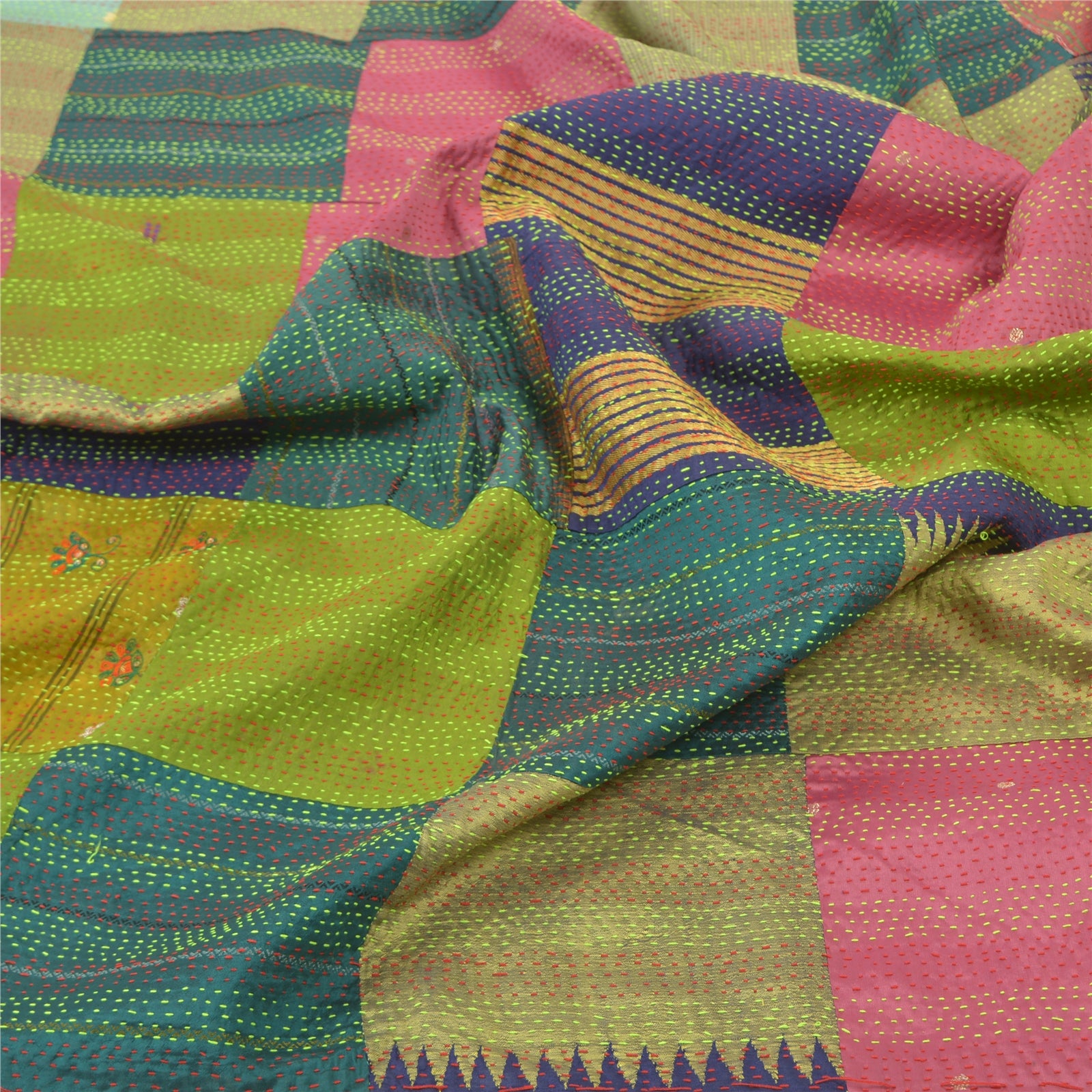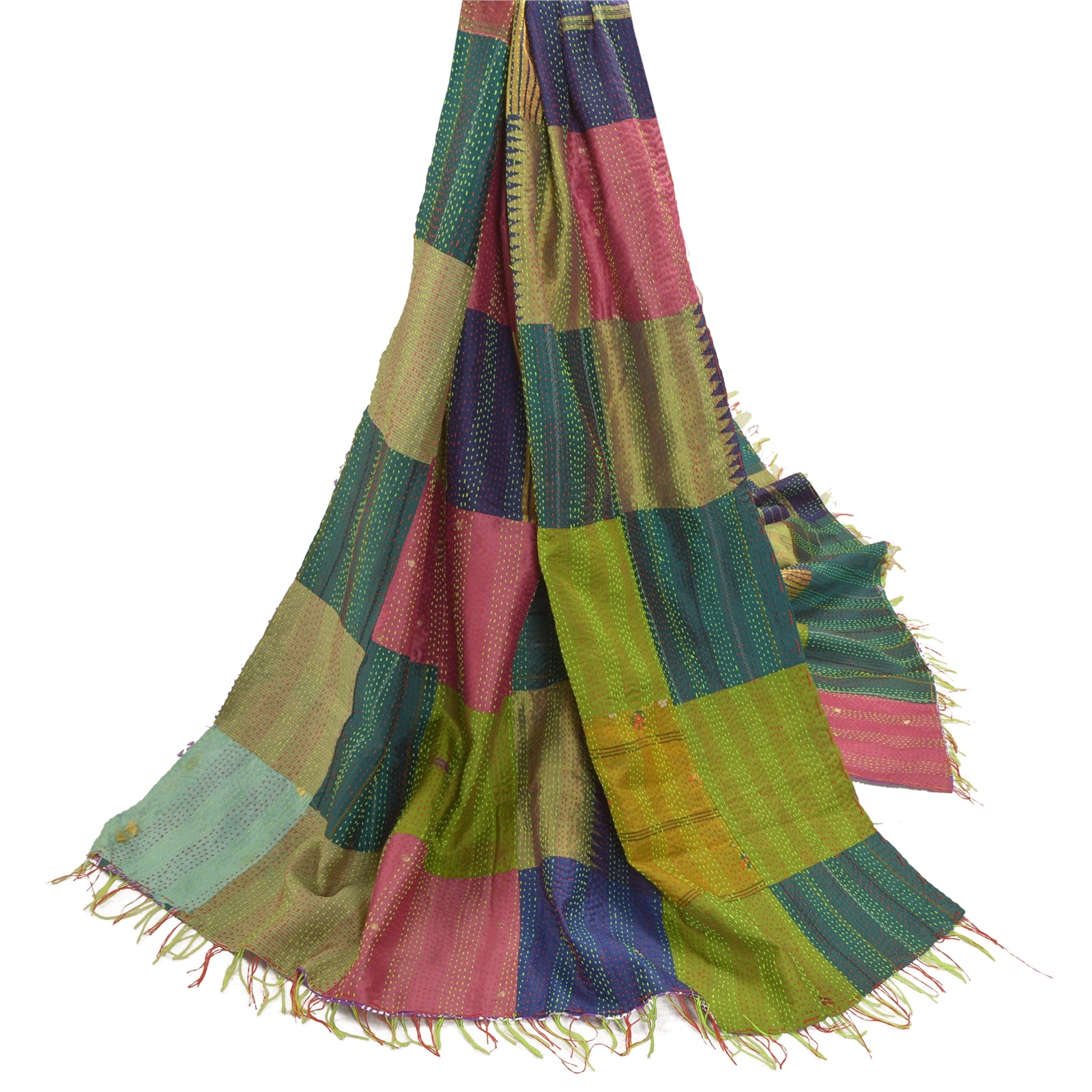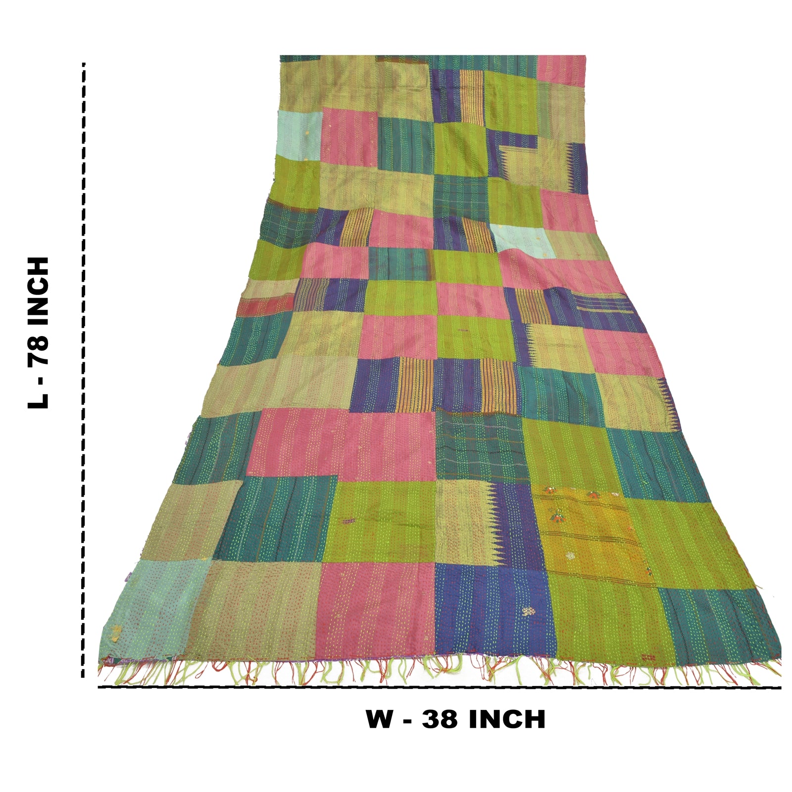 Sanskriti Vintage Heavy Dupatta Long Stole Pure Silk Hand Embroidered Kantha