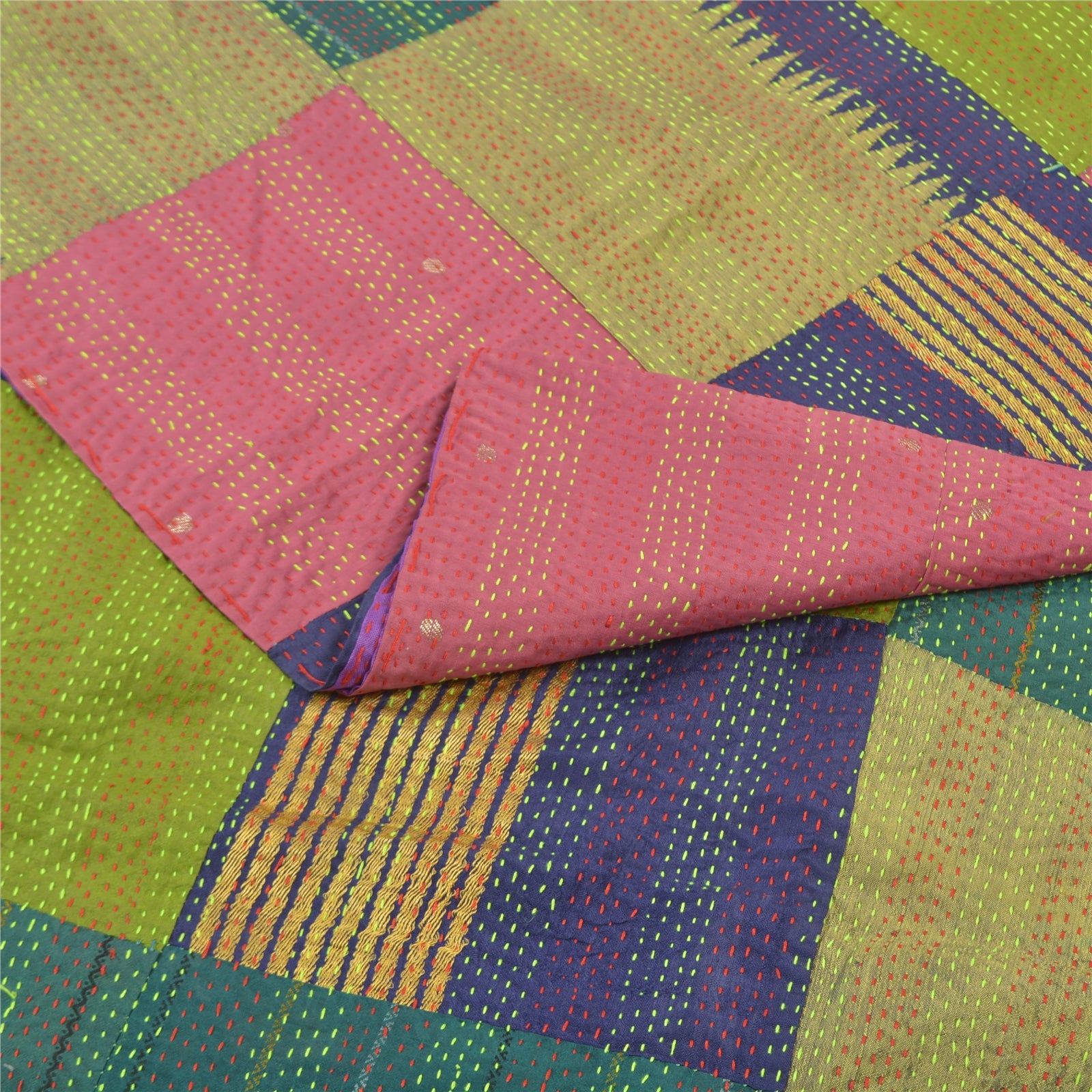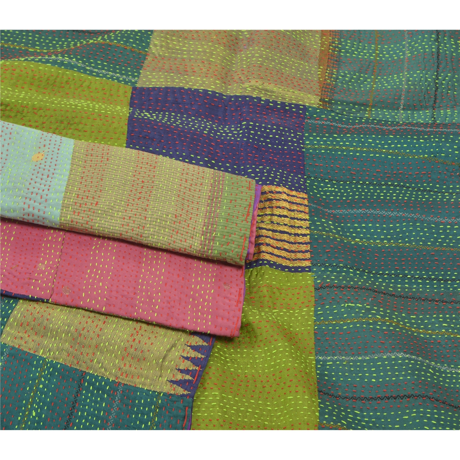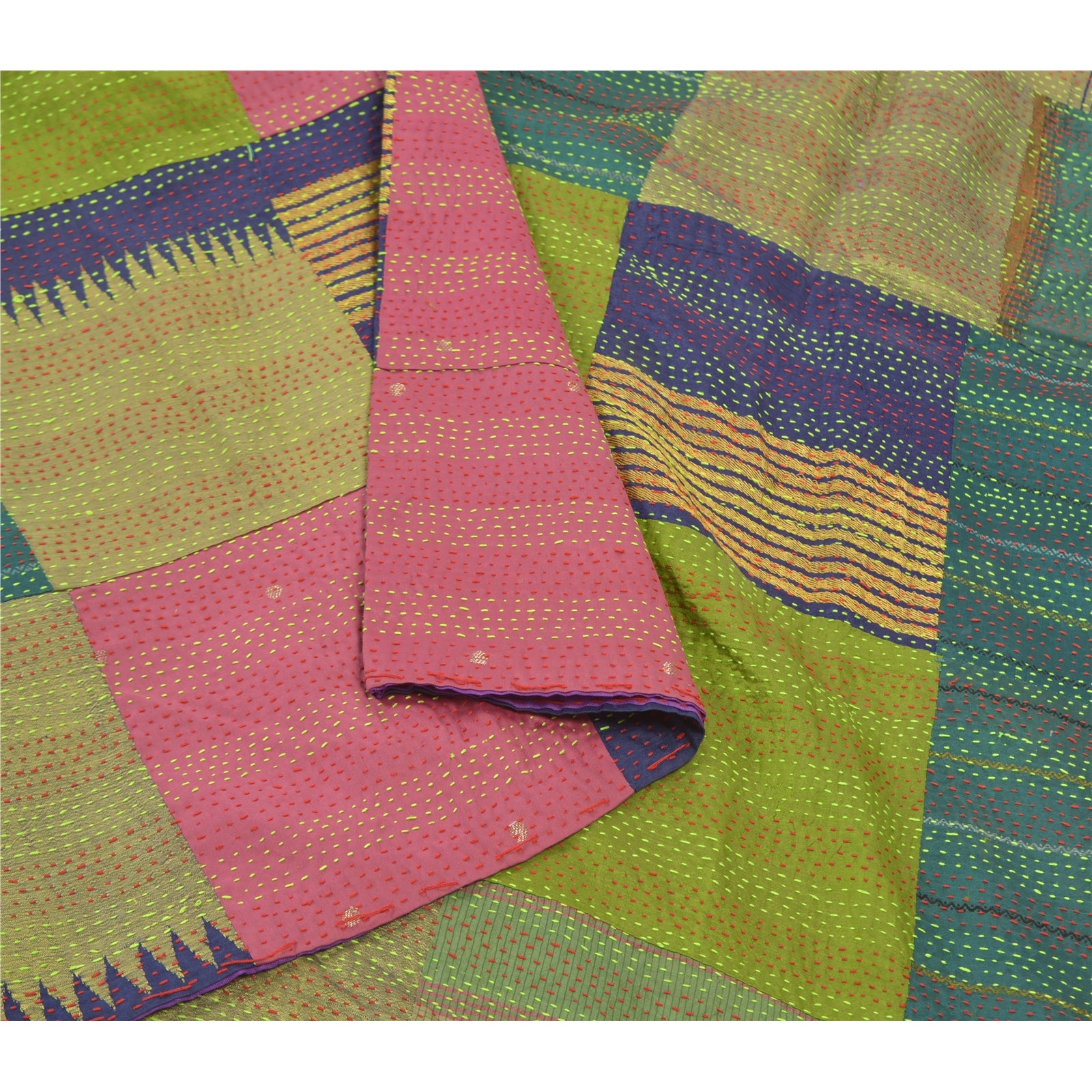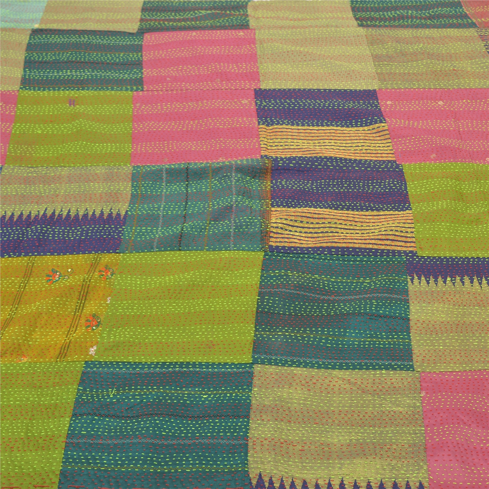 Sanskriti Vintage Heavy Dupatta Long Stole Pure Silk Hand Embroidered Kantha